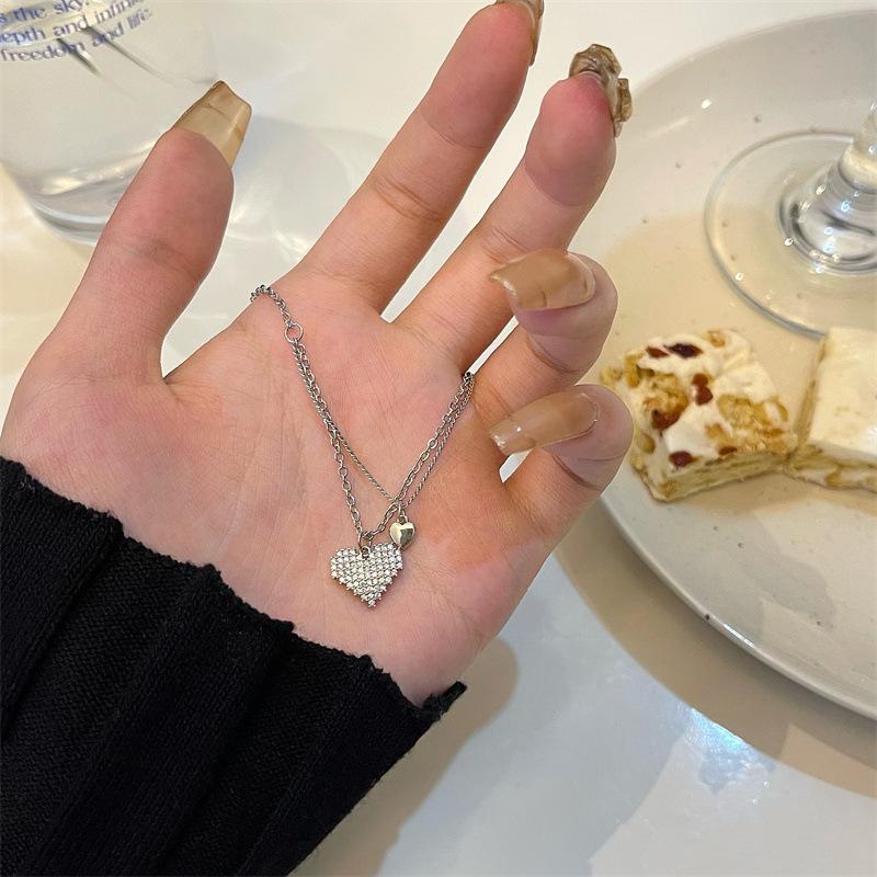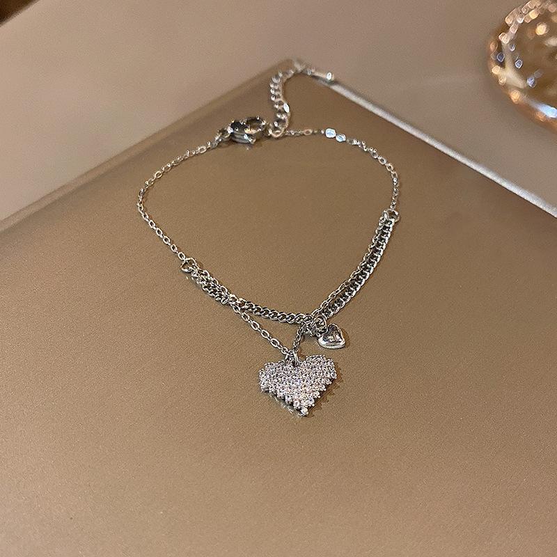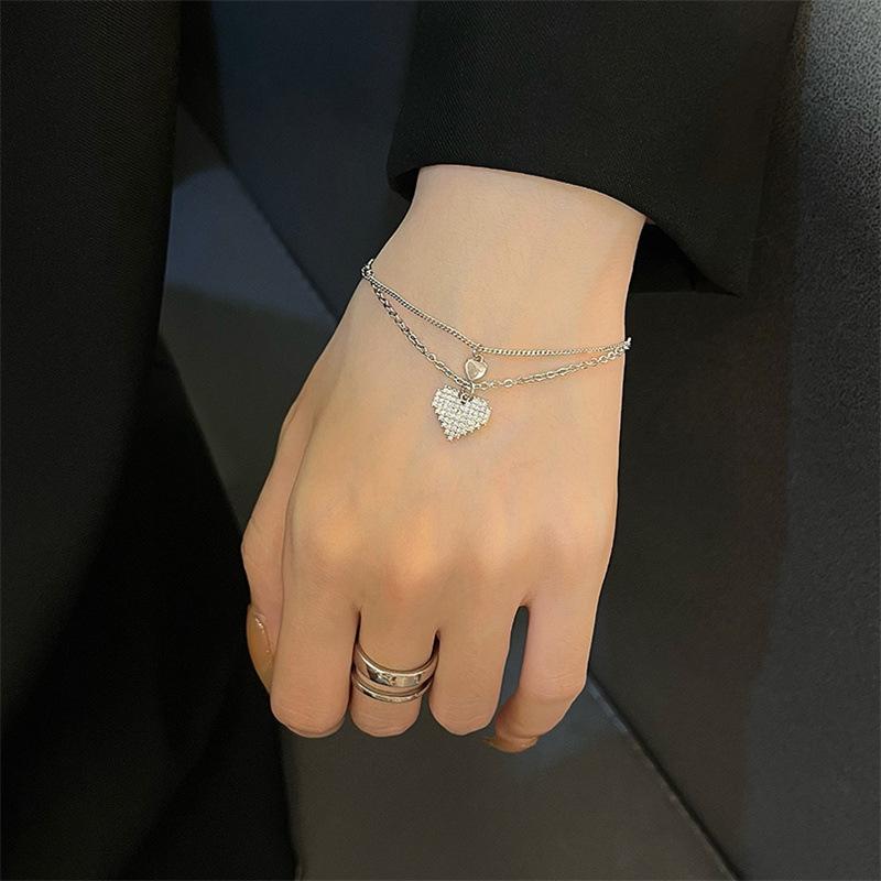 Pulsera de Amor de Doble Capa de Plata S925 de Lujo Ligero, Pulsera Nicho de Alta Gama para Combinar con Todo, Elegante Pulsera en Forma de Corazón con Micro Incrustaciones de Diamantes