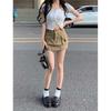 Falda de Trabajo Caqui Línea A para Chica Caliente Falda Falda de Mezclilla de Verano para Mujer Falda Sexy de Cadera Falda con Bolsillos