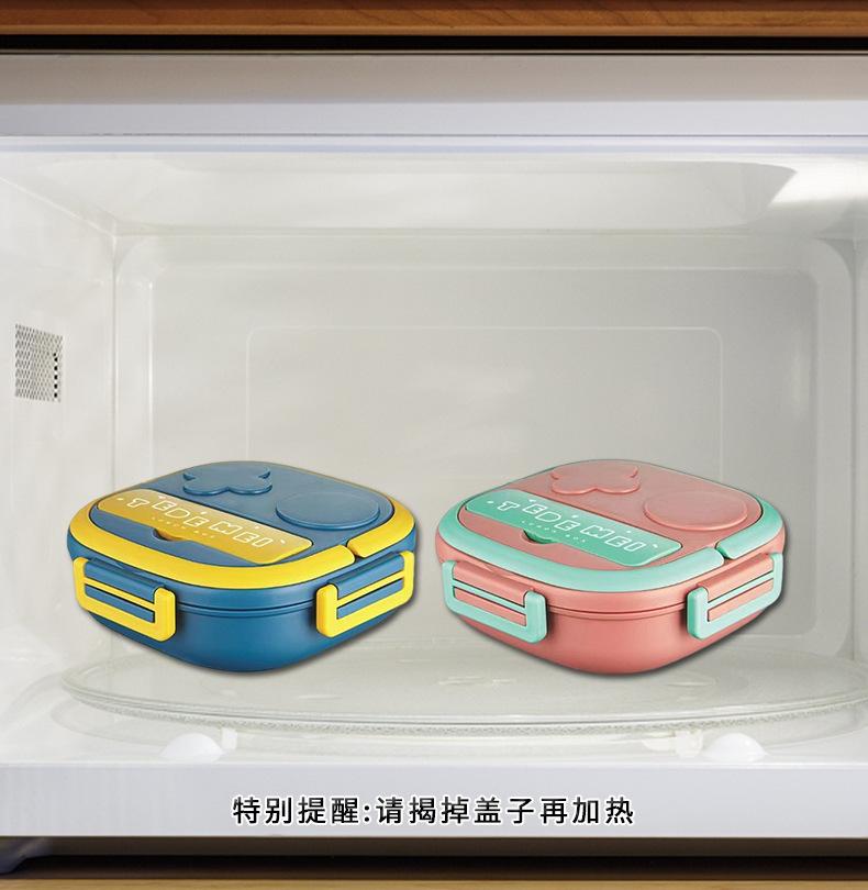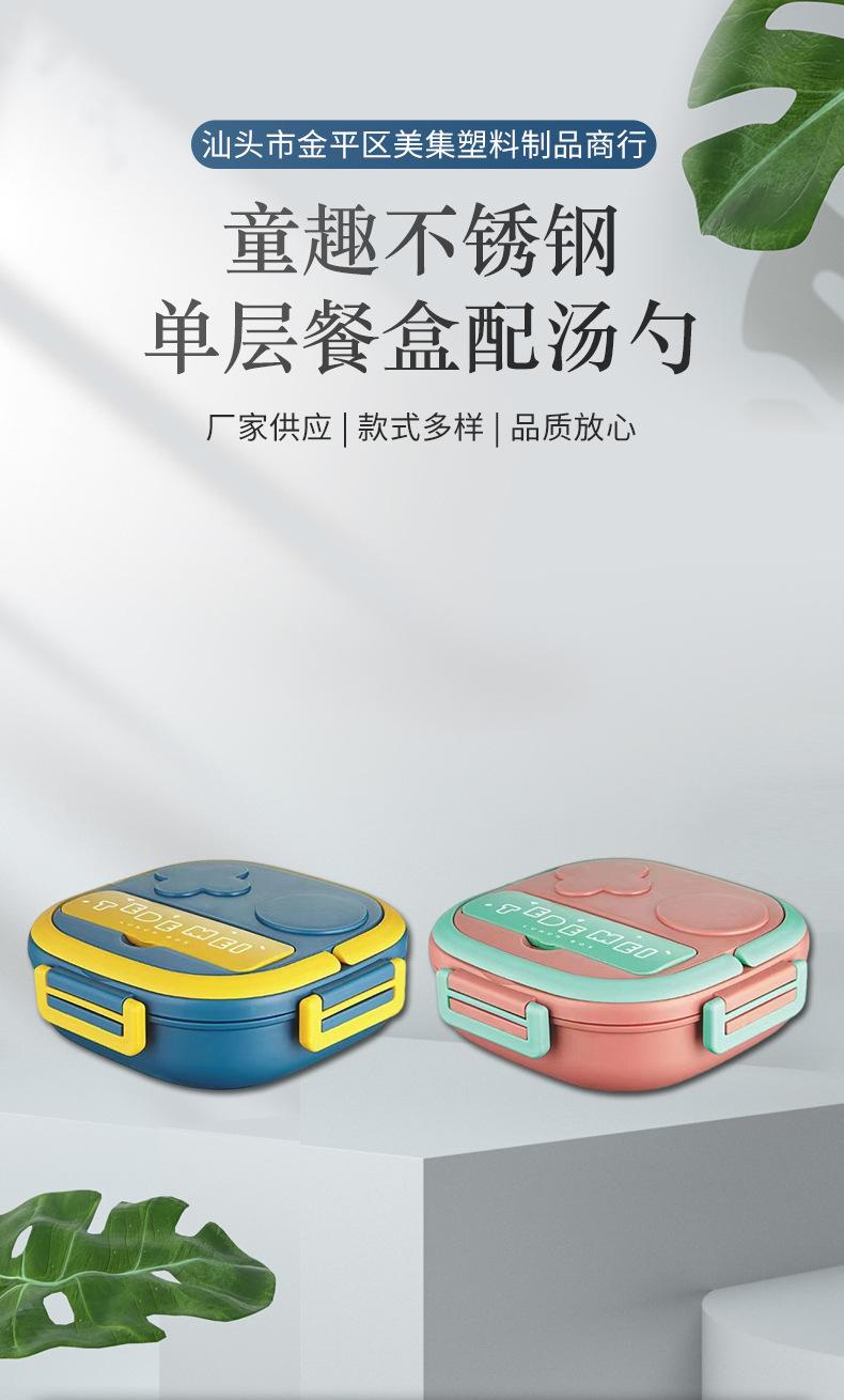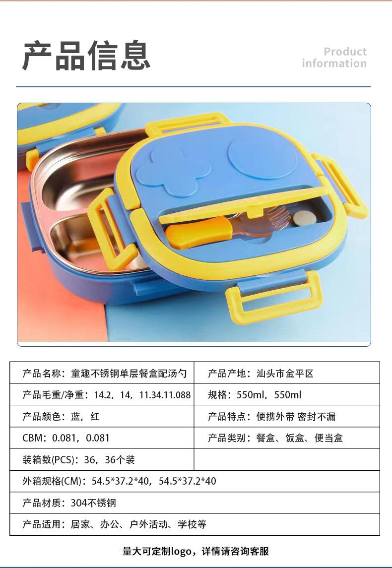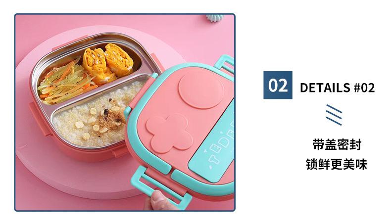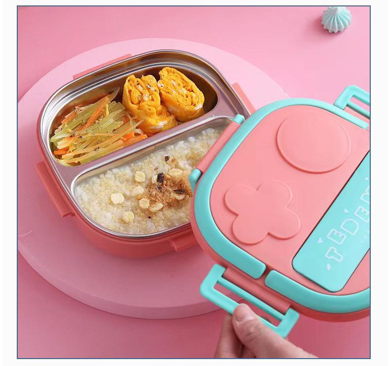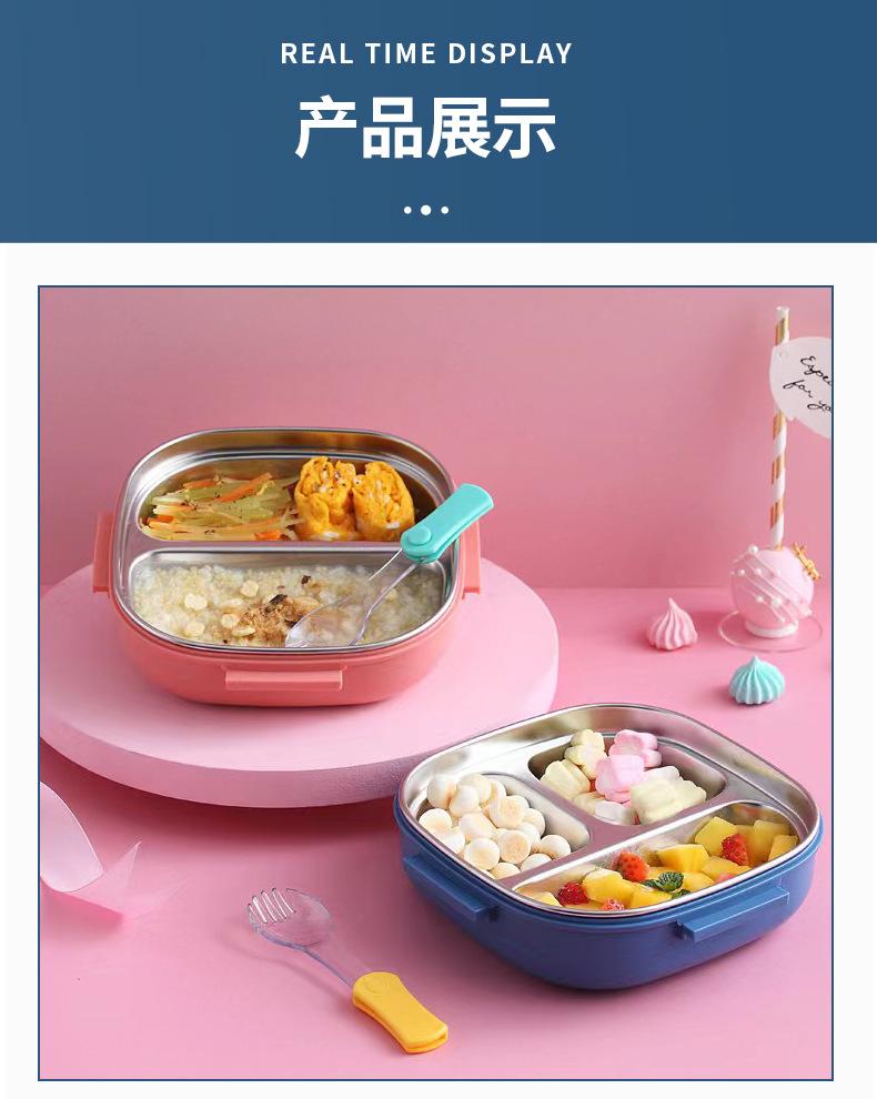 Children's stainless steel single-layer lunch box (two grids)-36 blue and pink mixed colors