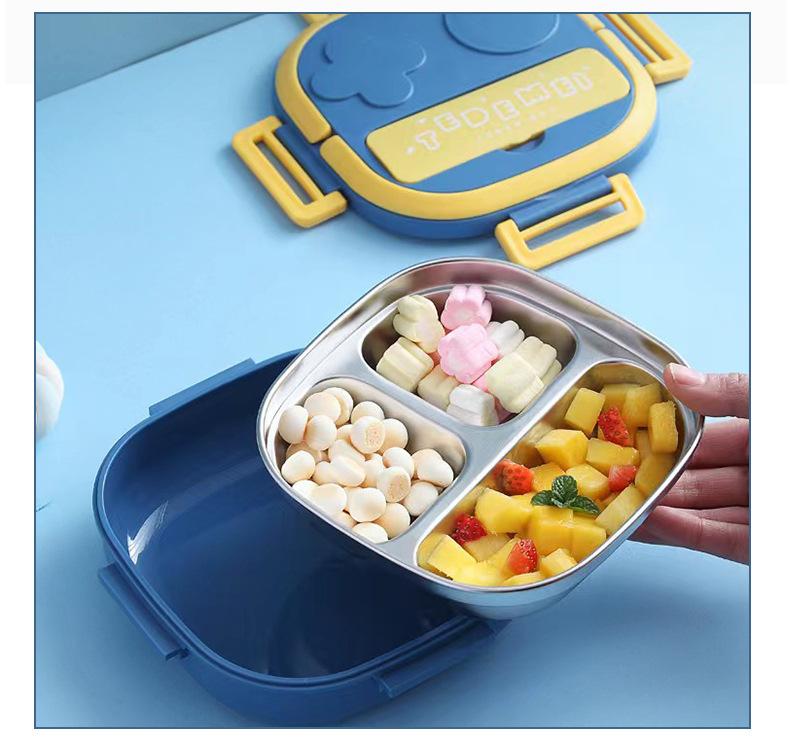 Lonchera de acero inoxidable sellada con cuatro botones al por mayor de fábrica, lonchera creativa para estudiantes, lonchera de regalo diario de empresa
