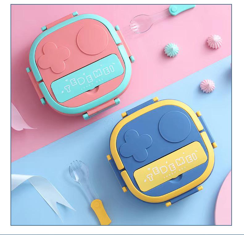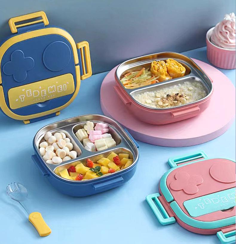 Children's stainless steel single-layer lunch box (three grids)-Blue Pink mixed color pack 36 mixed color pack