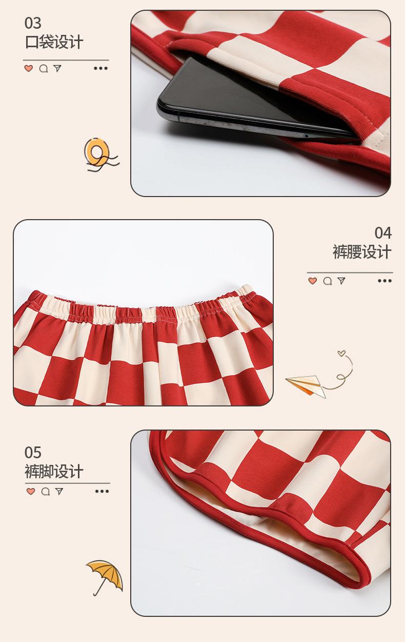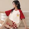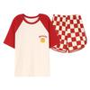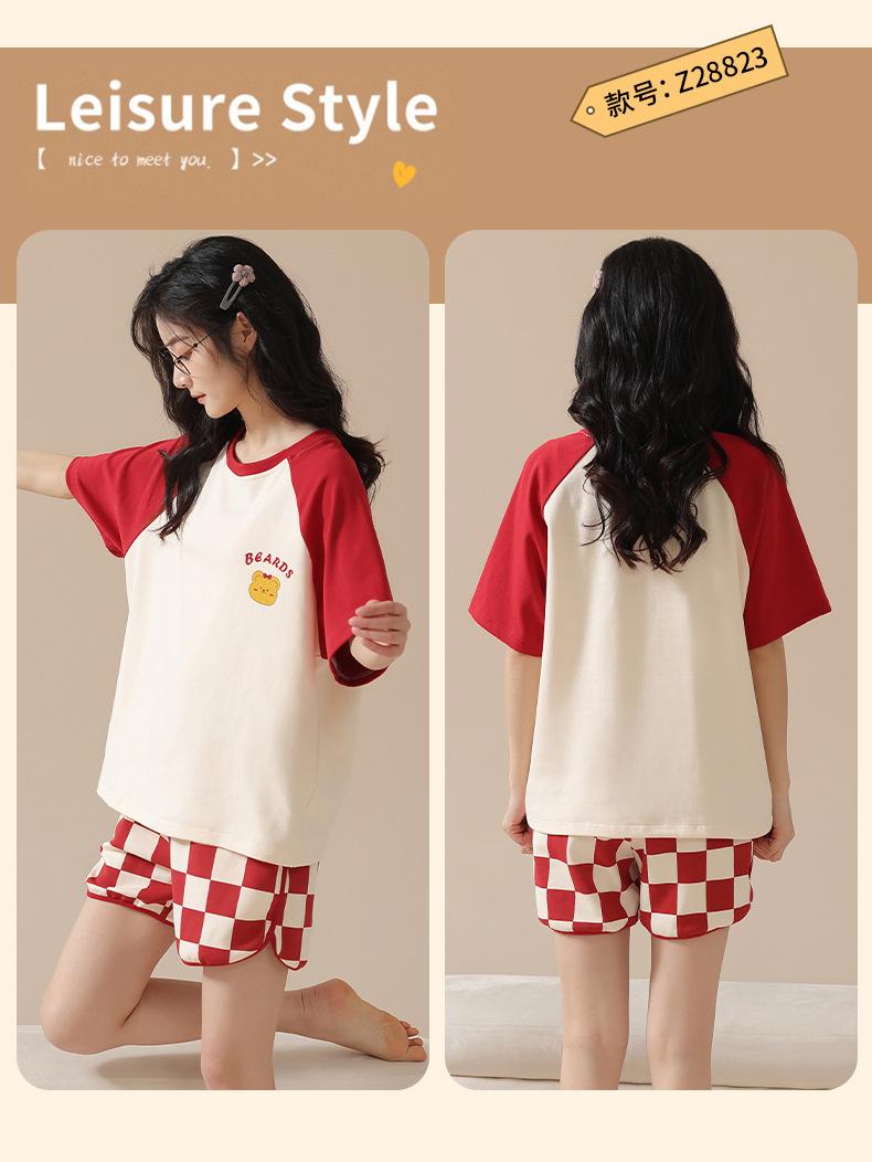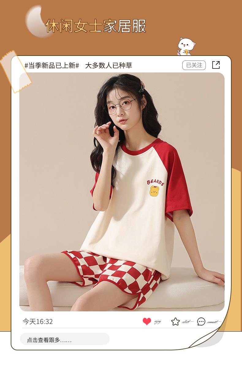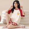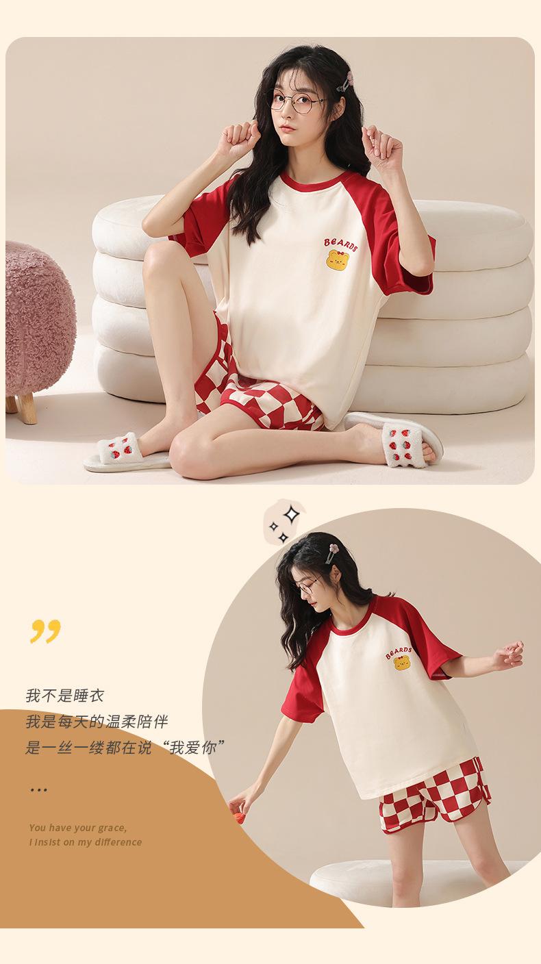 [Algodón Puro] Pijama de Verano para Mujer Estilo Rojo de Internet Casual Manga Corta Shorts Traje Ropa de Casa Delgada para Niña Se Puede Usar