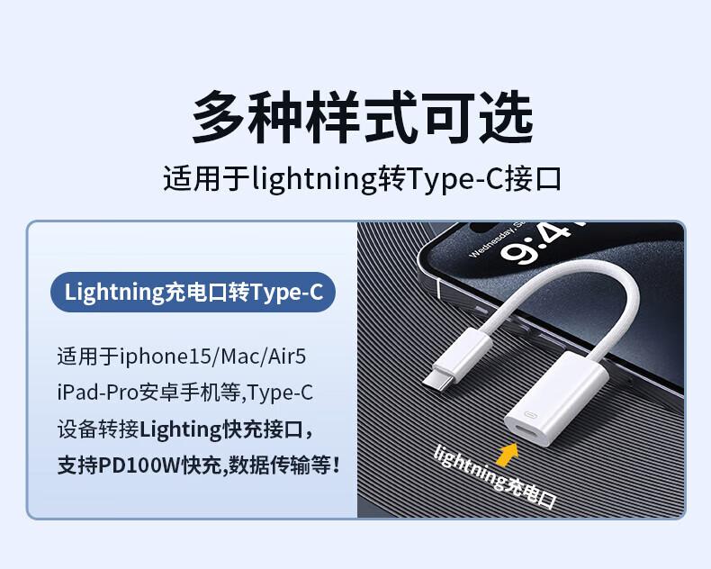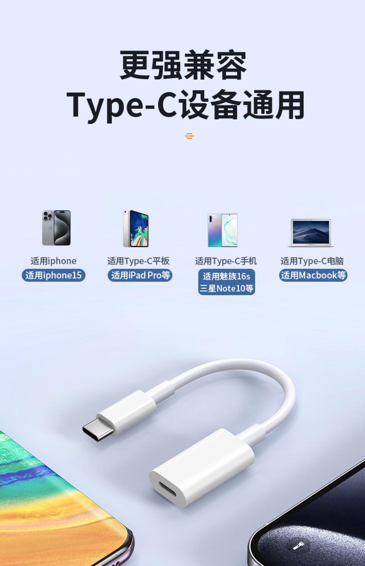 Adaptador convertidor Biaz Lightning a cable de datos de carga tipo C para 15 teléfonos móviles Huawei