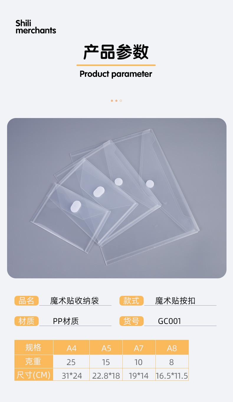 Bolsa de Archivo Transparente A4 Bolsa para Recibos A5 Bolsa para Tarjetas con Velcro A6A7 Bolsa de Almacenamiento Libro de Tarjetas Botón de Torre de Nylon Bolsa de Archivo Logo