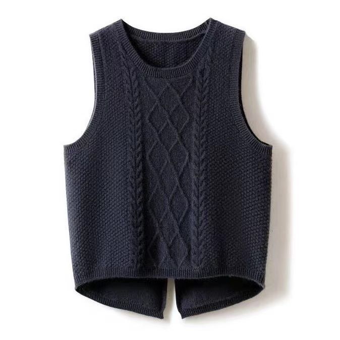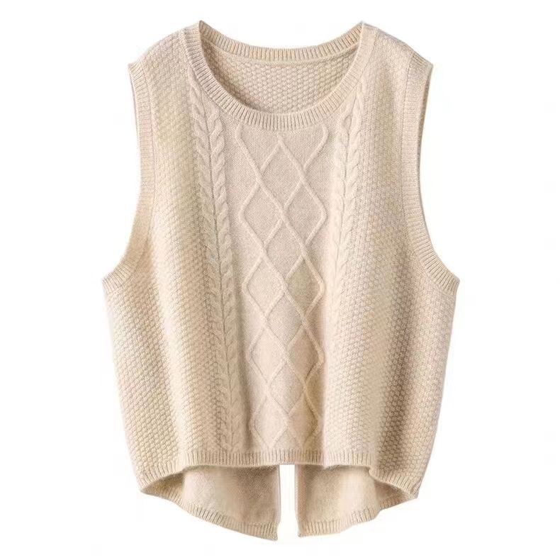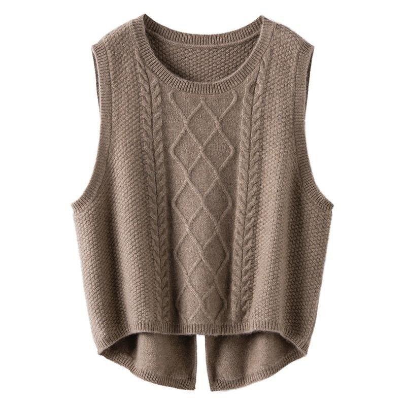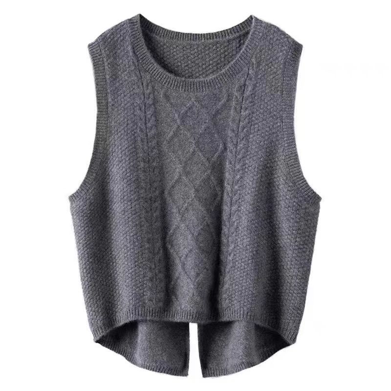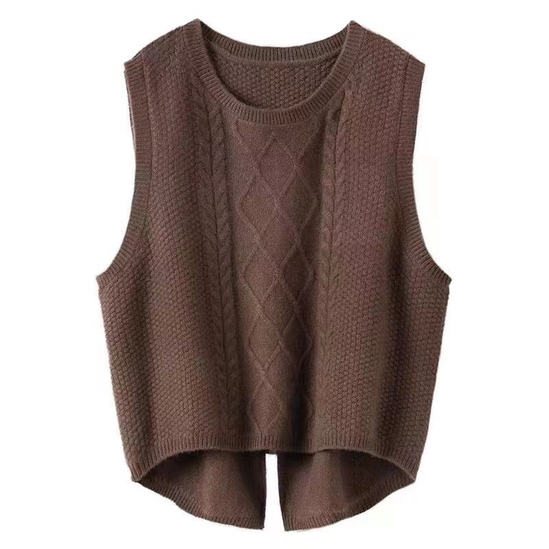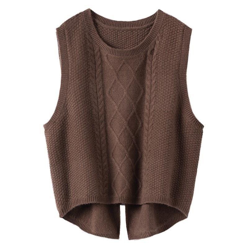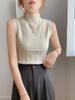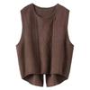Suéter sin mangas, moda primavera 2024, color liso, cuello redondo, corto, diseño retro artístico, top de punto