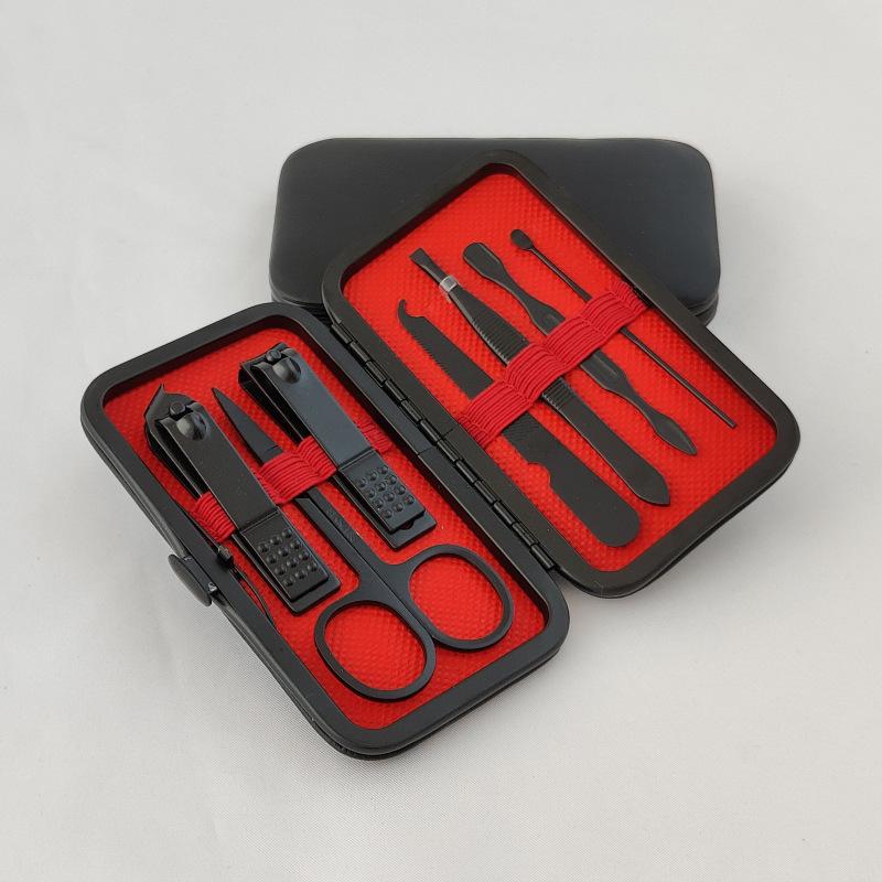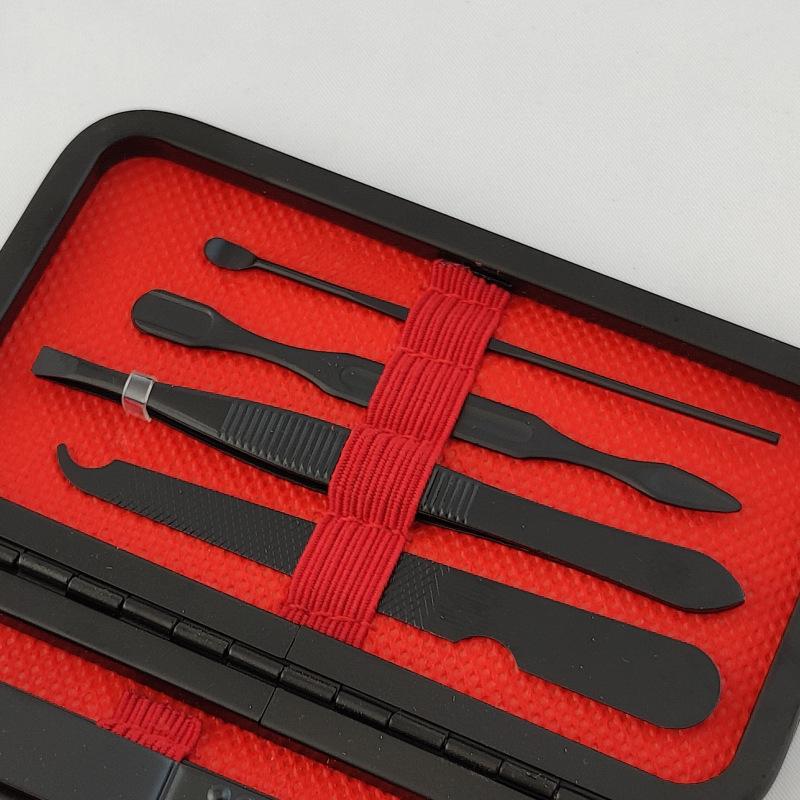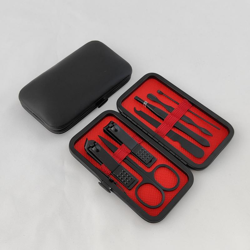Suministro directo de juego de 26 piezas de acero inoxidable negro con tijeras para piel muerta, cortaúñas, juego de manicura, lima de uñas y juego completo de herramientas con agujas para el acné. |