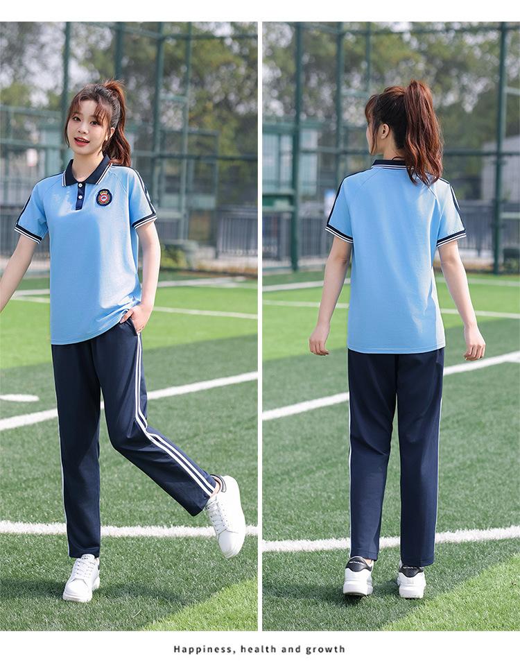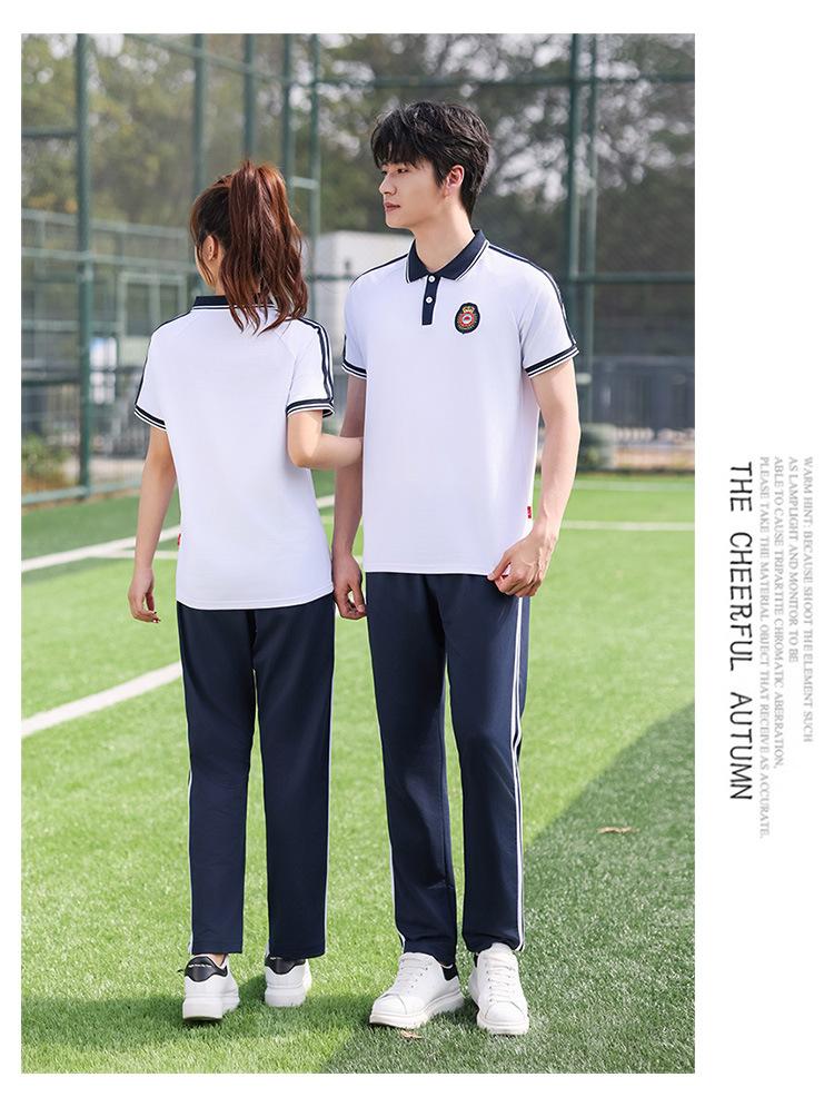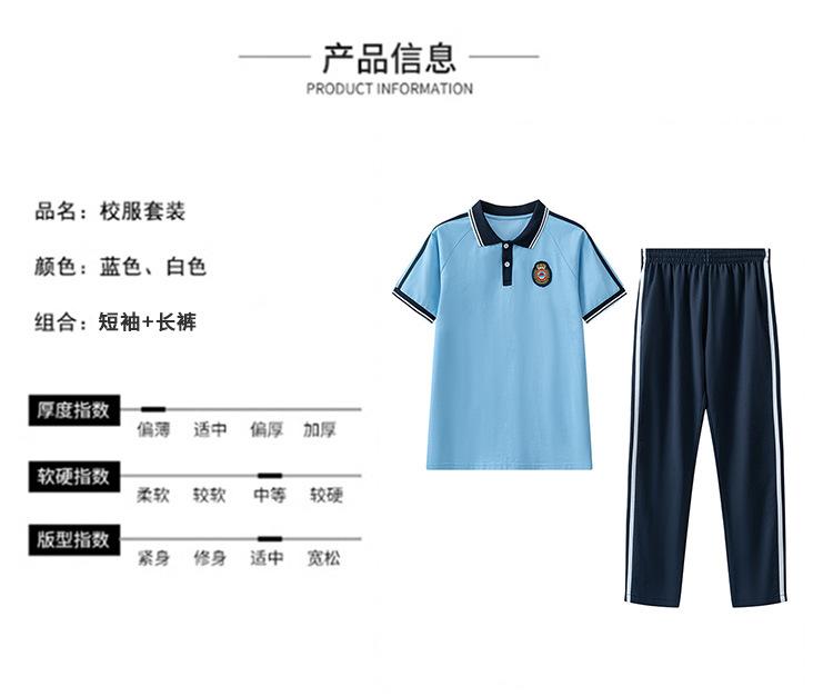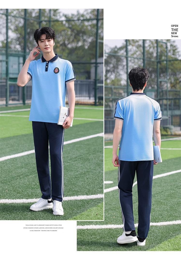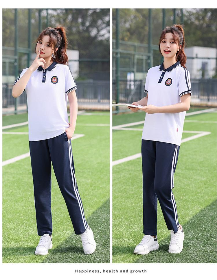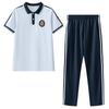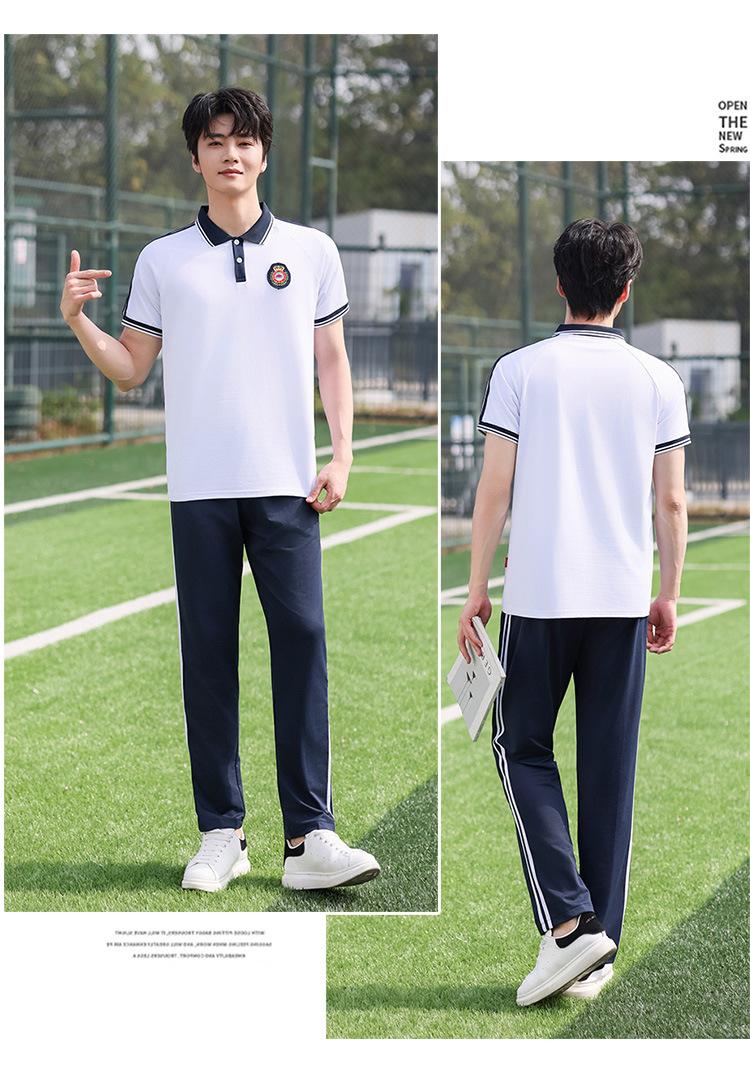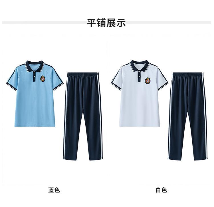 White short-sleeved top, Blue Short Sleeve Top, Dark Blue Long Pants, White Short Sleeve Suit, Blue Short Sleeve Suit