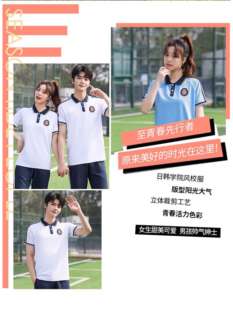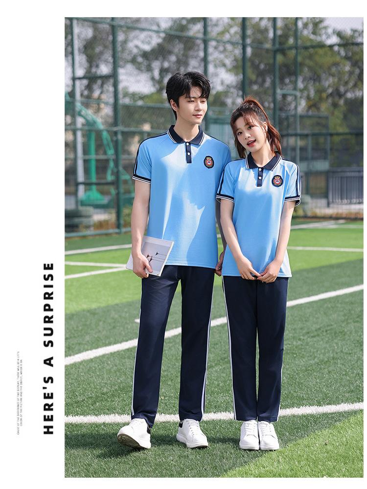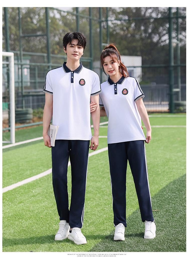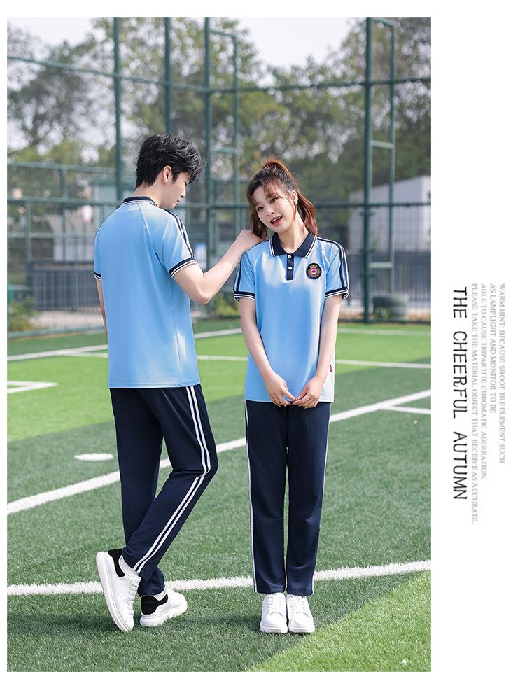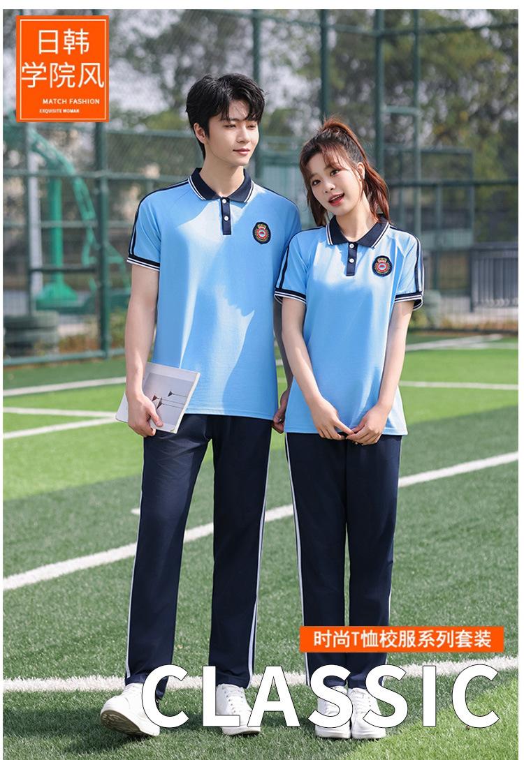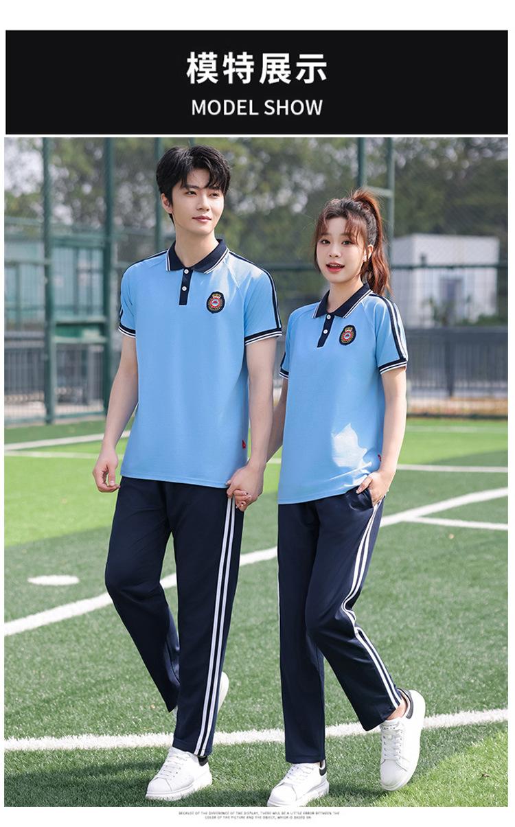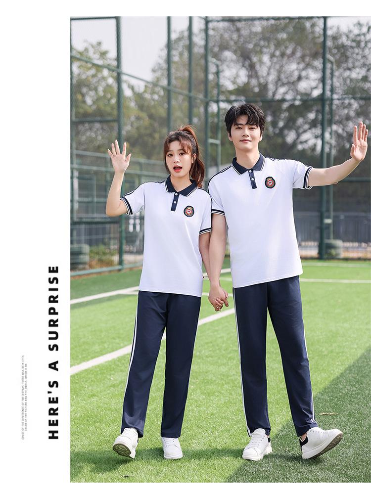 White short-sleeved top, Blue Short Sleeve Top, Dark Blue Long Pants, White Short Sleeve Suit, Blue Short Sleeve Suit