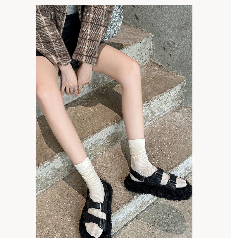 Calcetines para mujer calcetines de media caña otoño e invierno simples que combinan con todo color sólido calcetines de felpa estilo preppy coreano rayas verticales calcetines de moda para mujer