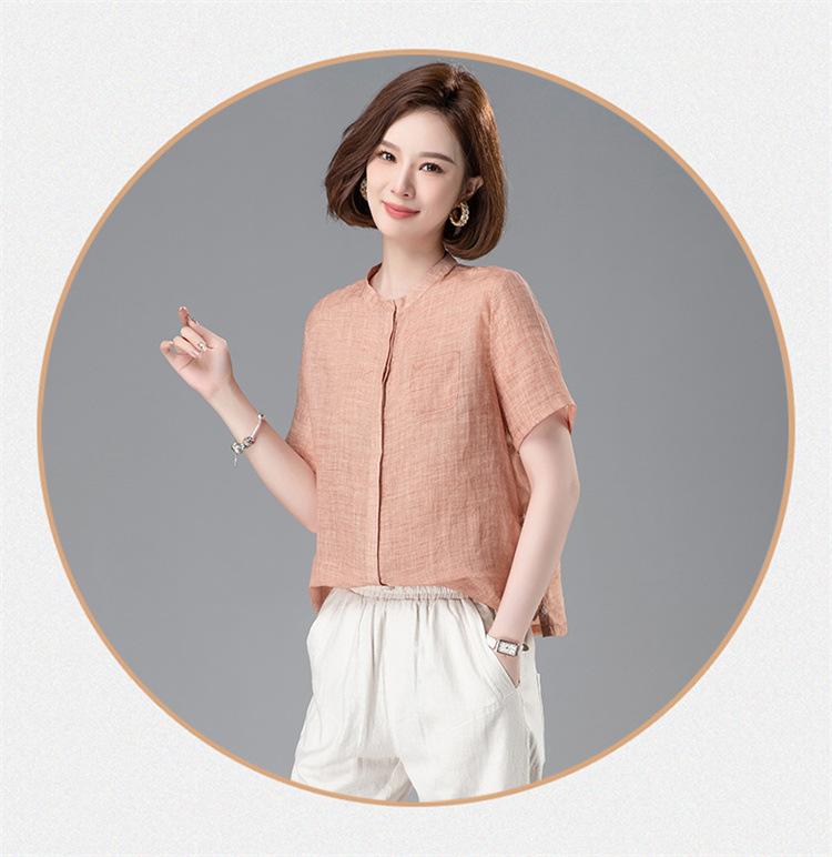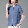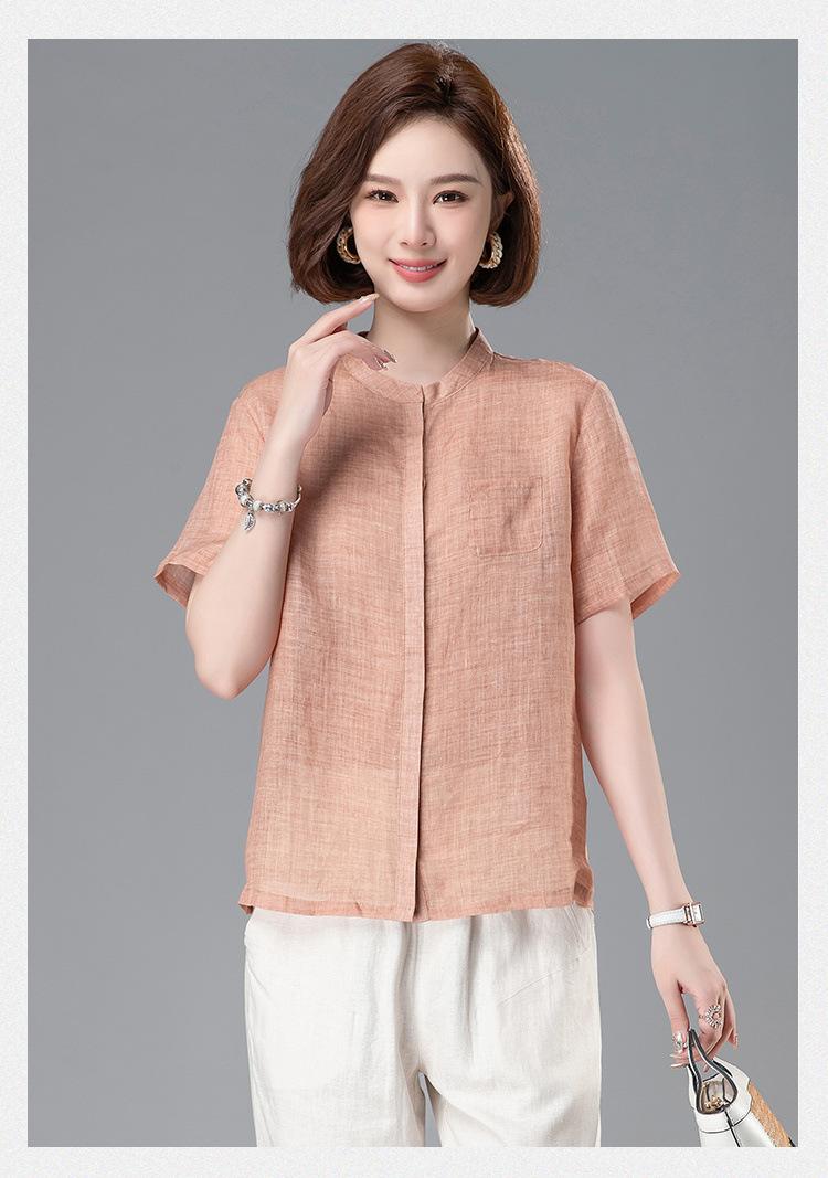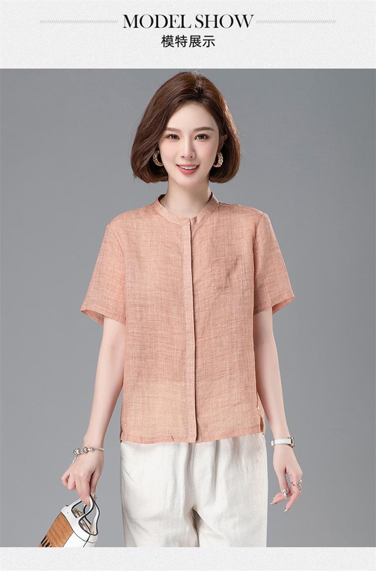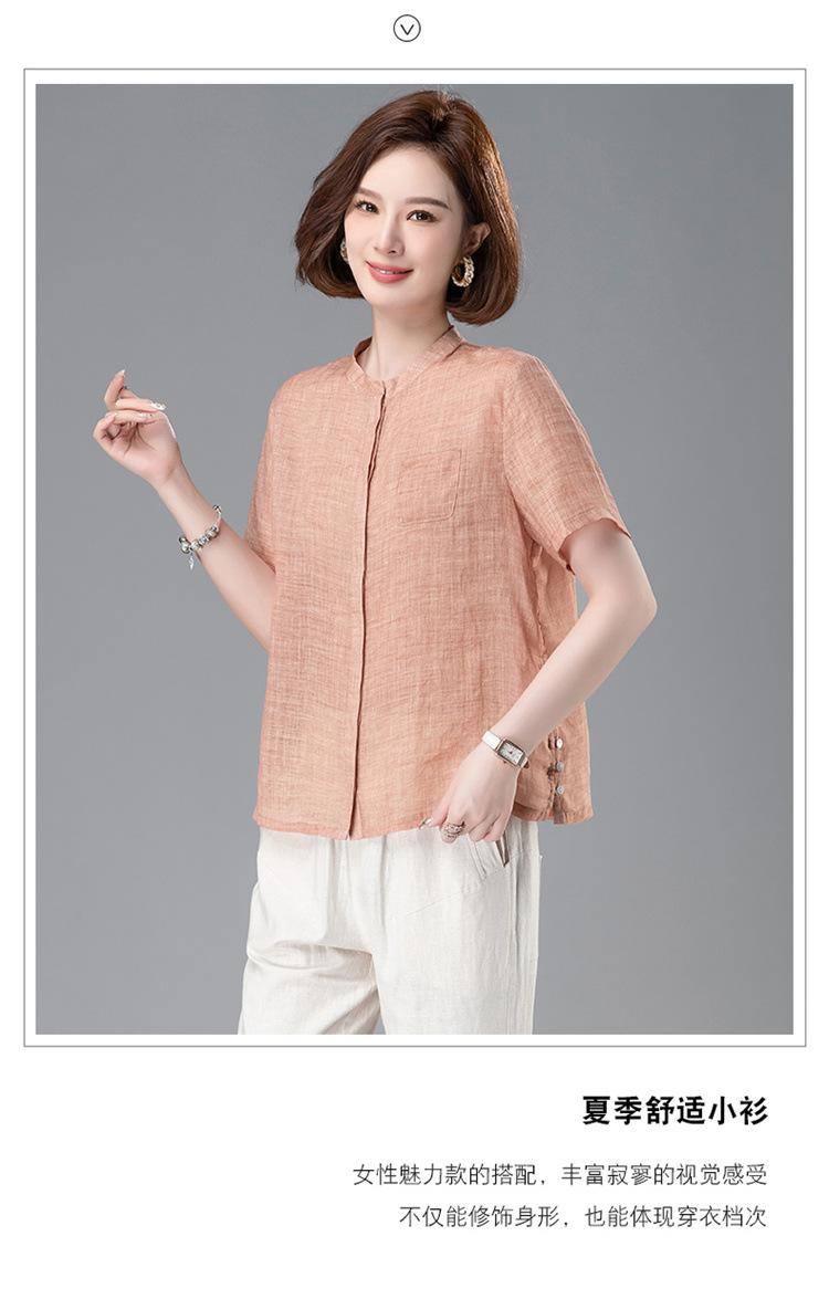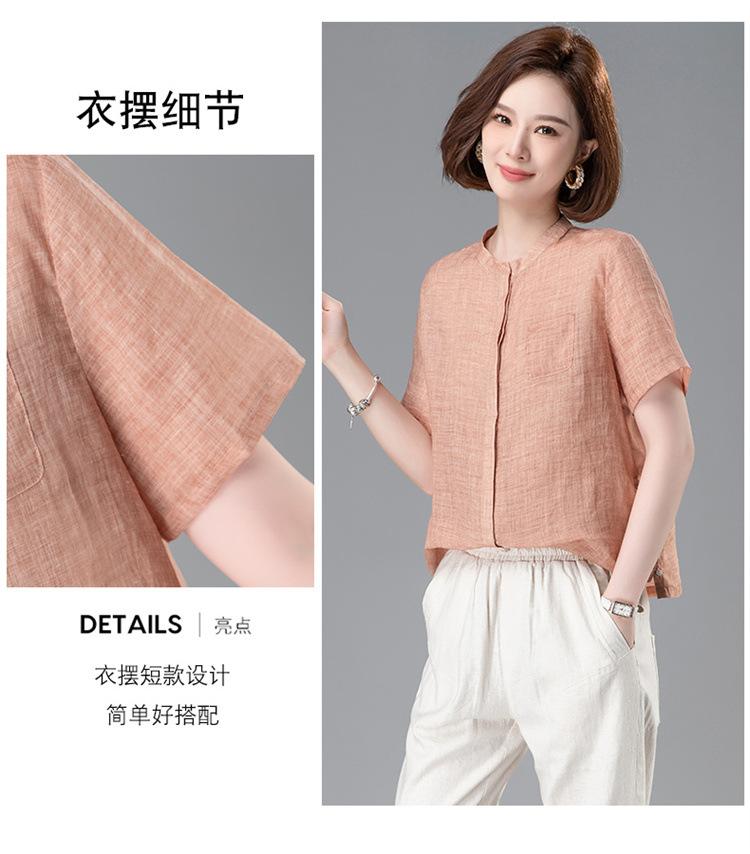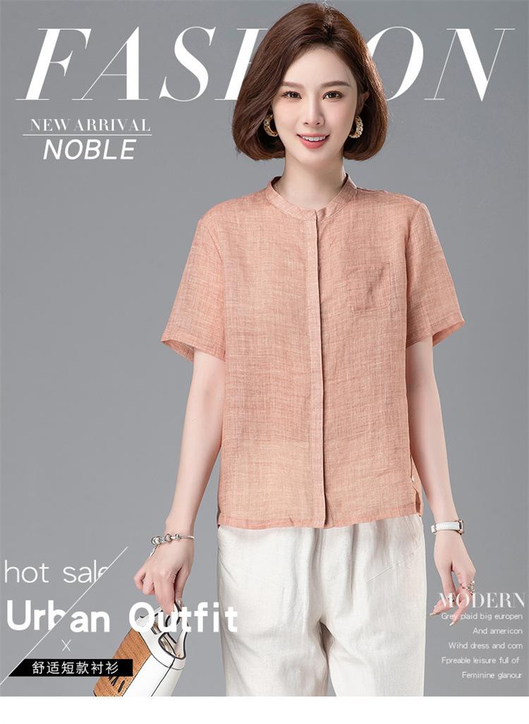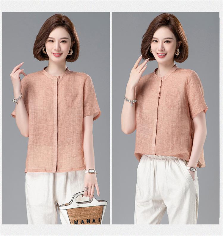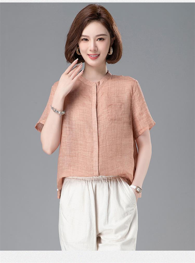 Camisa Tencel Ramio Mujer 2024 Verano Nueva Moda Camisa de Manga Corta Madre Pequeña Casual Top Delgado
