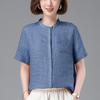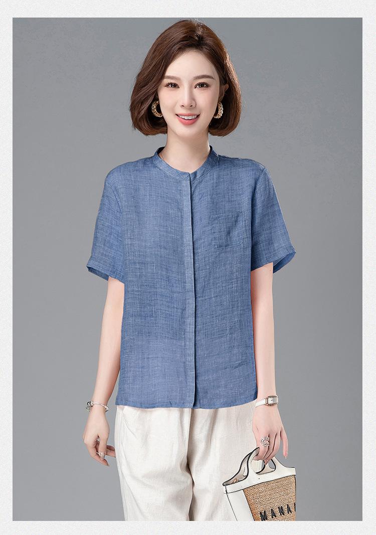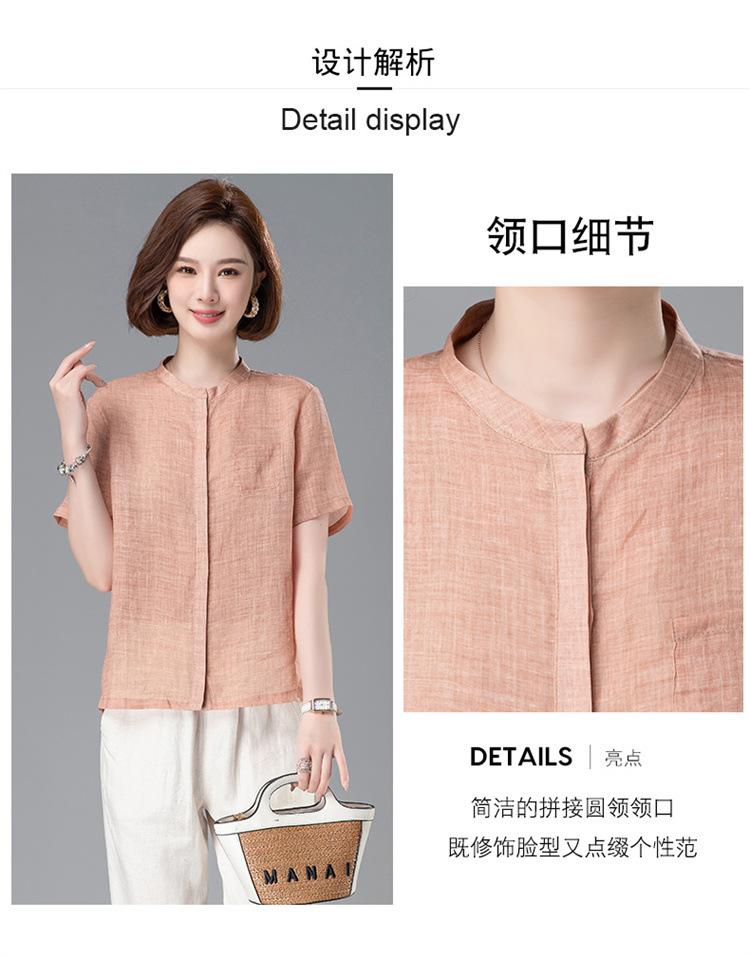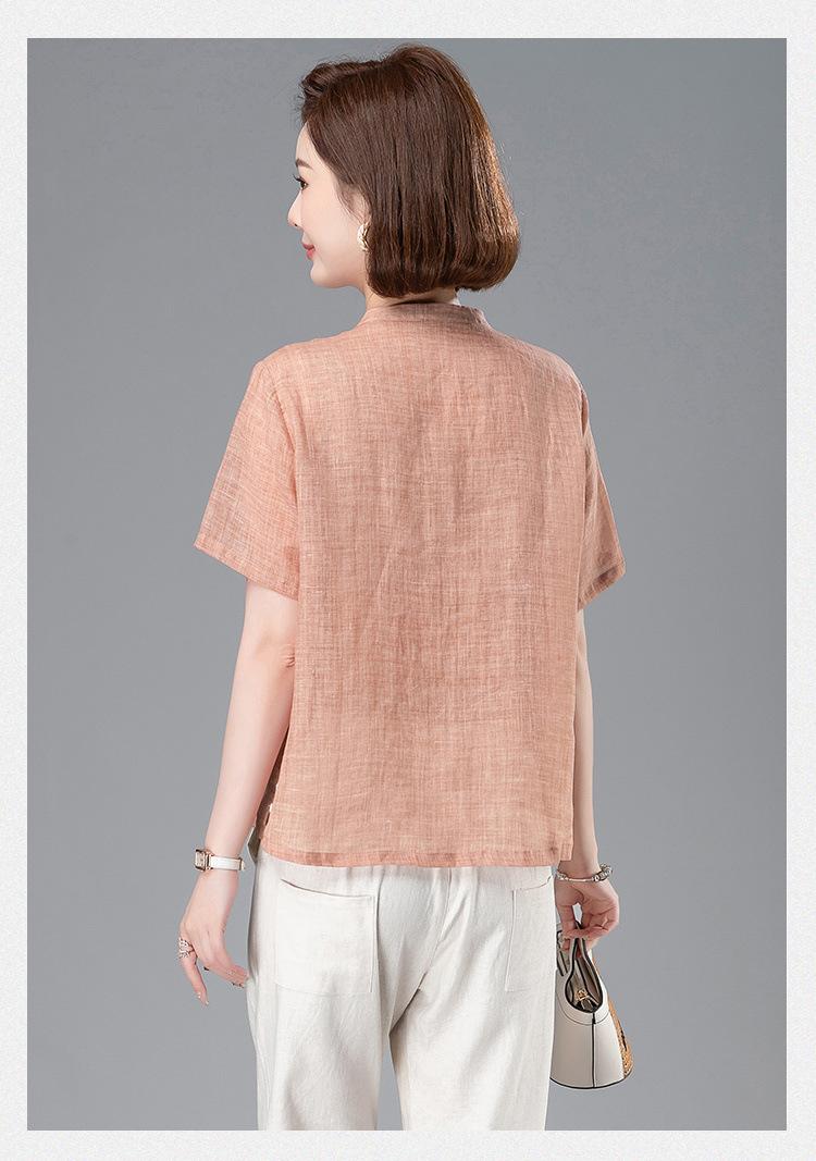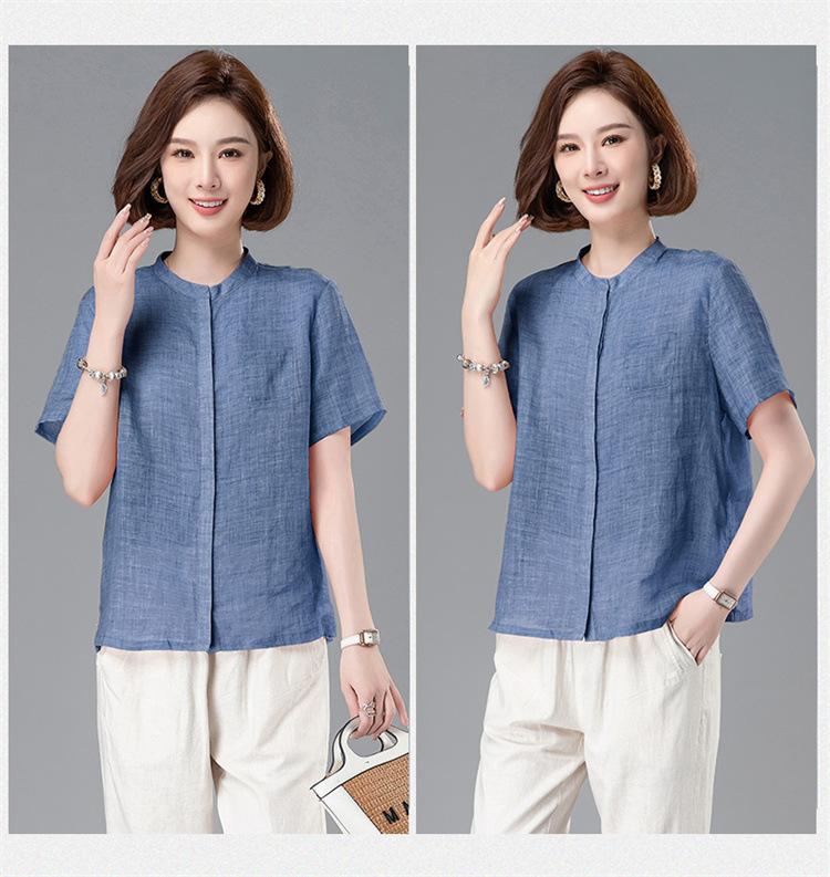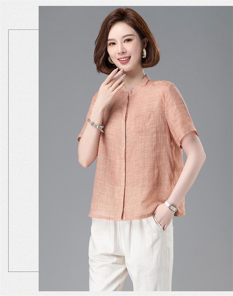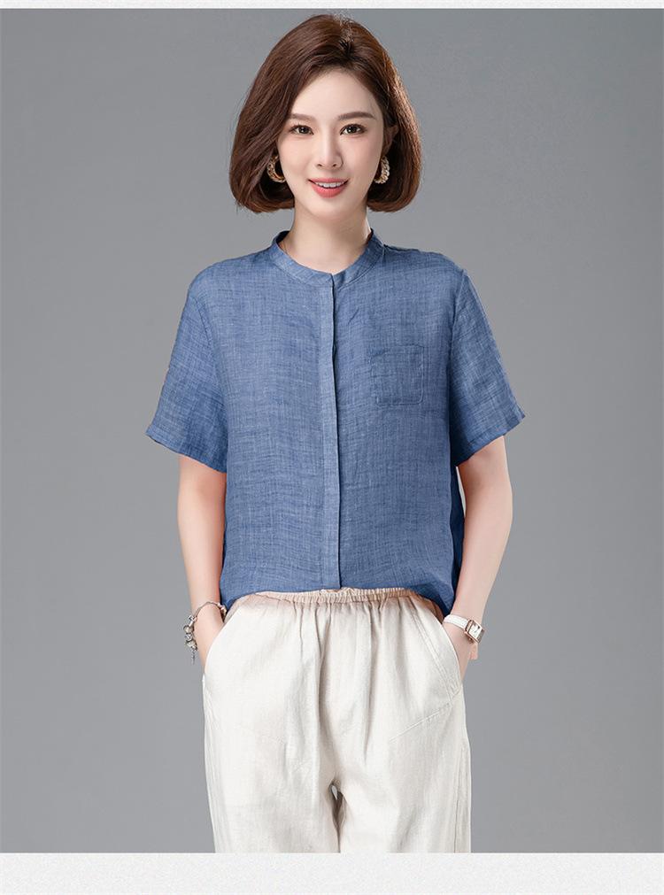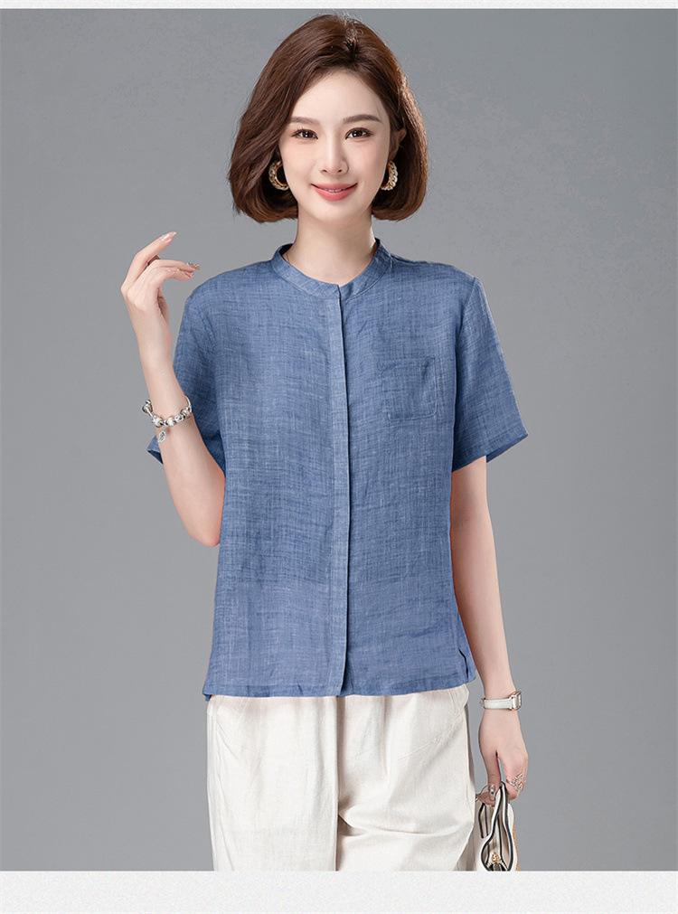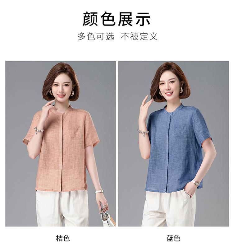Camisa Tencel Ramio Mujer 2024 Verano Nueva Moda Camisa de Manga Corta Madre Pequeña Casual Top Delgado