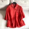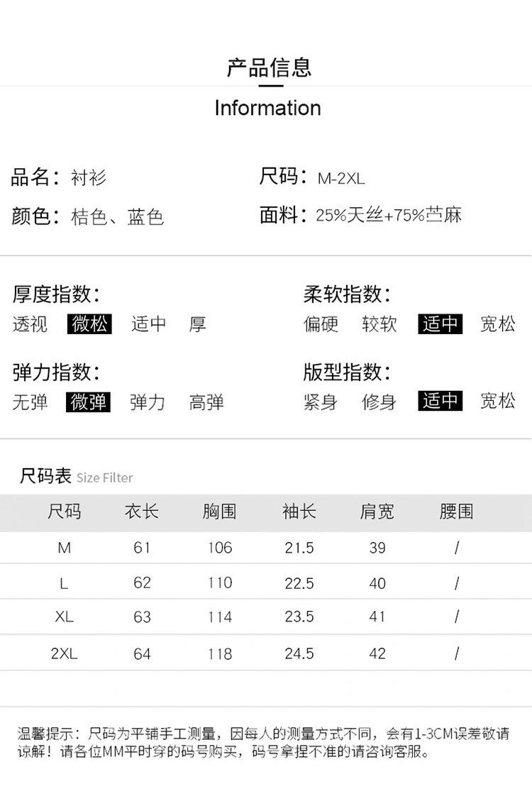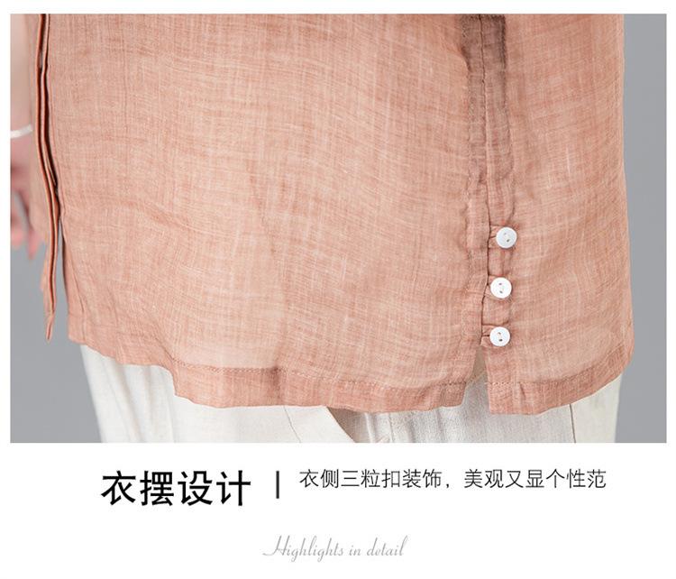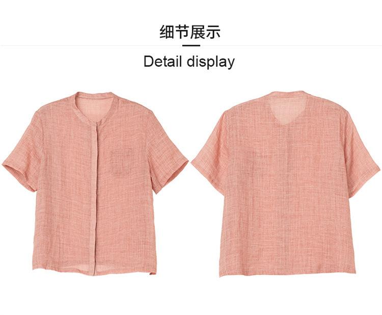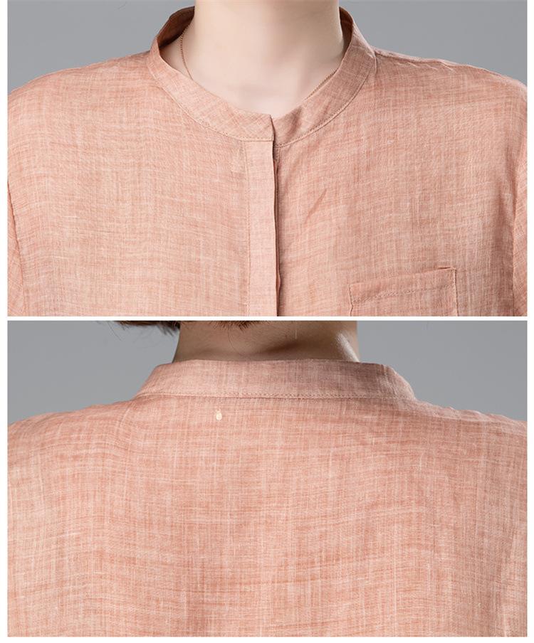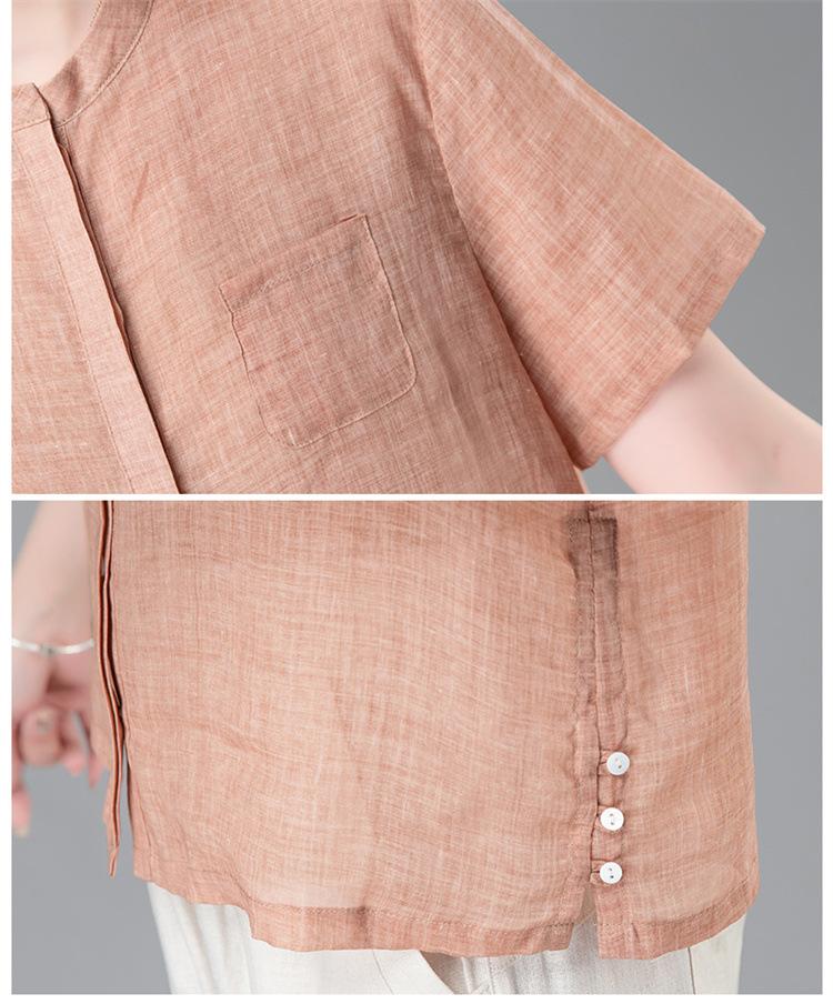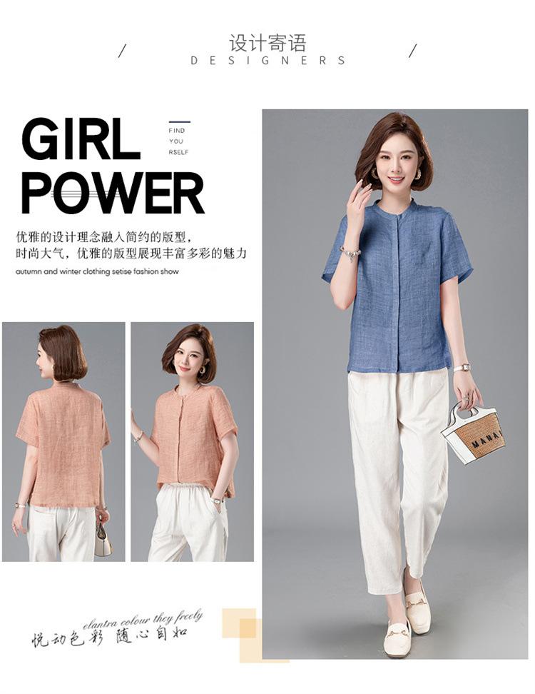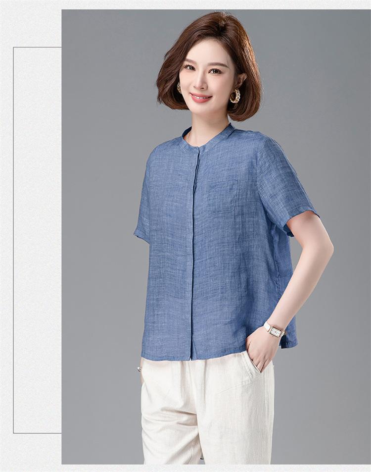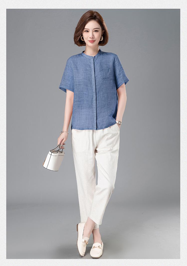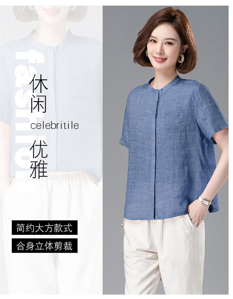 Camisa Tencel Ramio Mujer 2024 Verano Nueva Moda Camisa de Manga Corta Madre Pequeña Casual Top Delgado