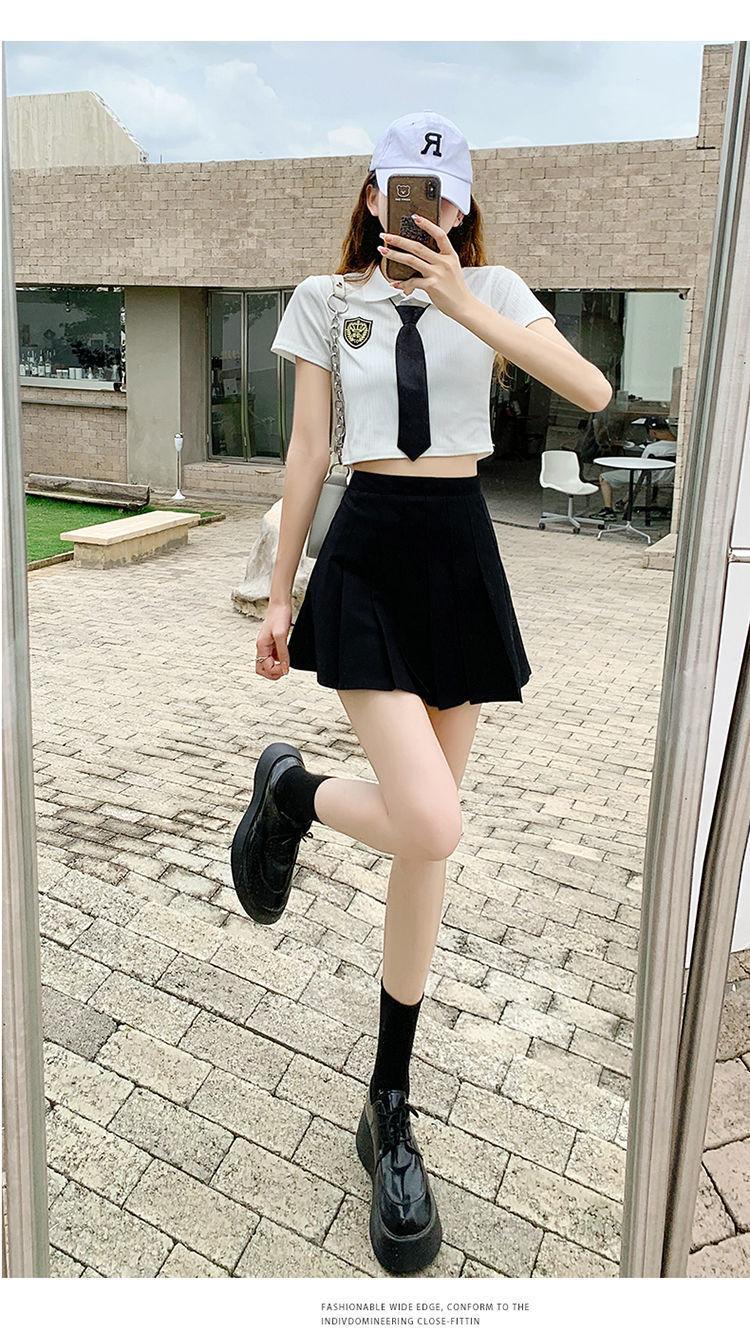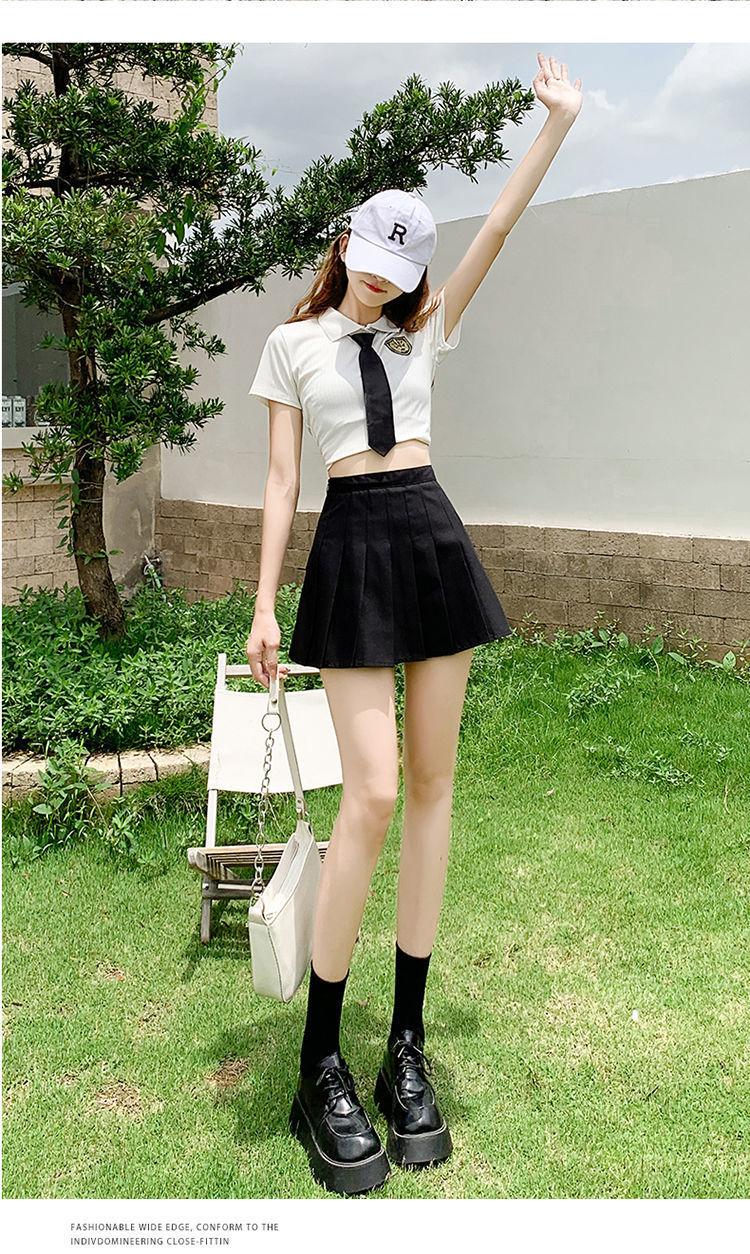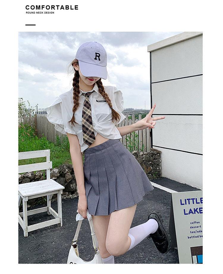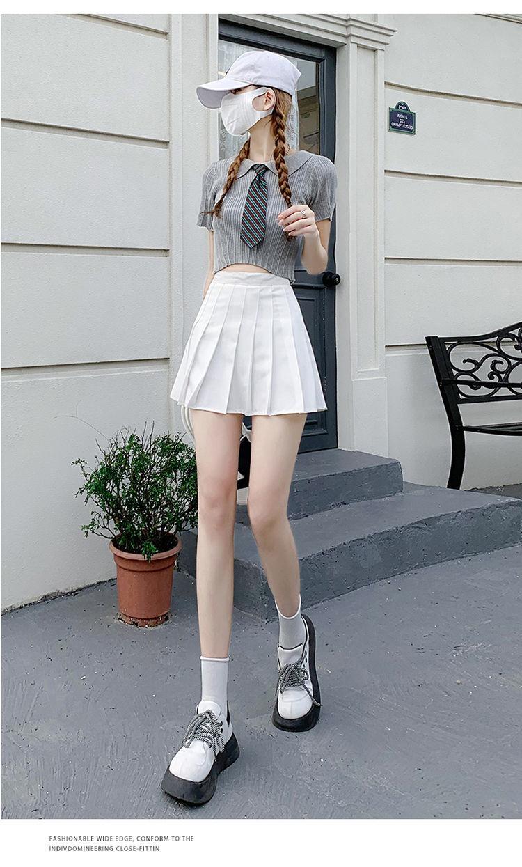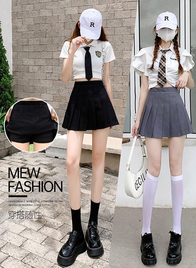 Falda plisada falda verano versátil cintura alta adelgazante falda línea A estudiante tela con pantalones cortos de seguridad 2022 pequeña