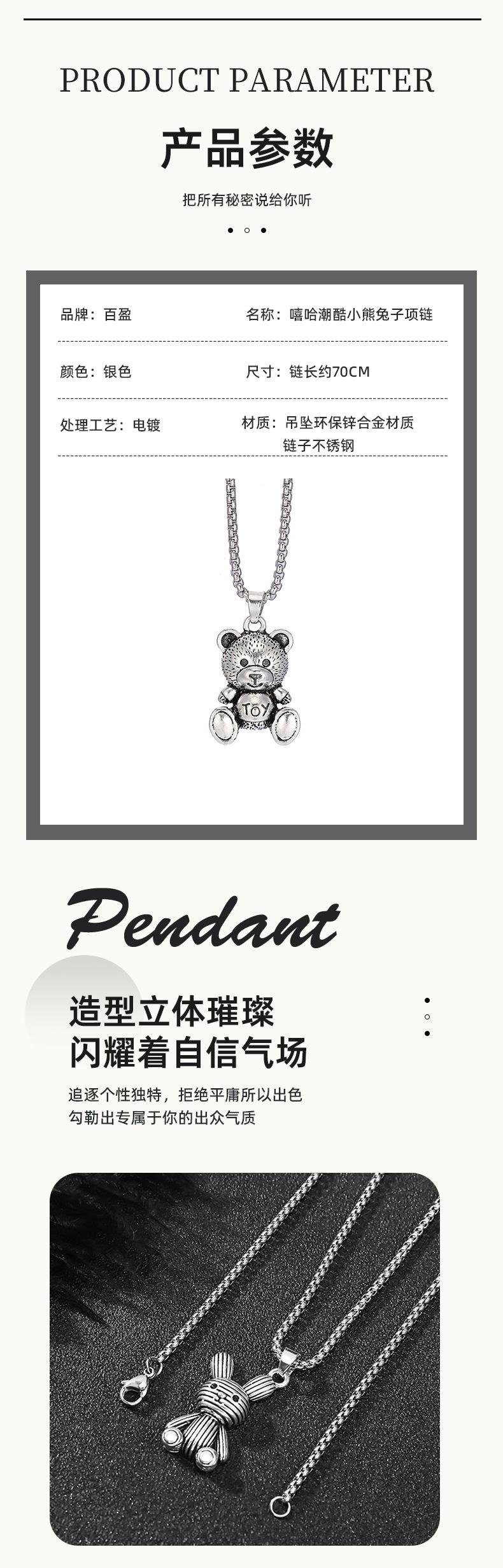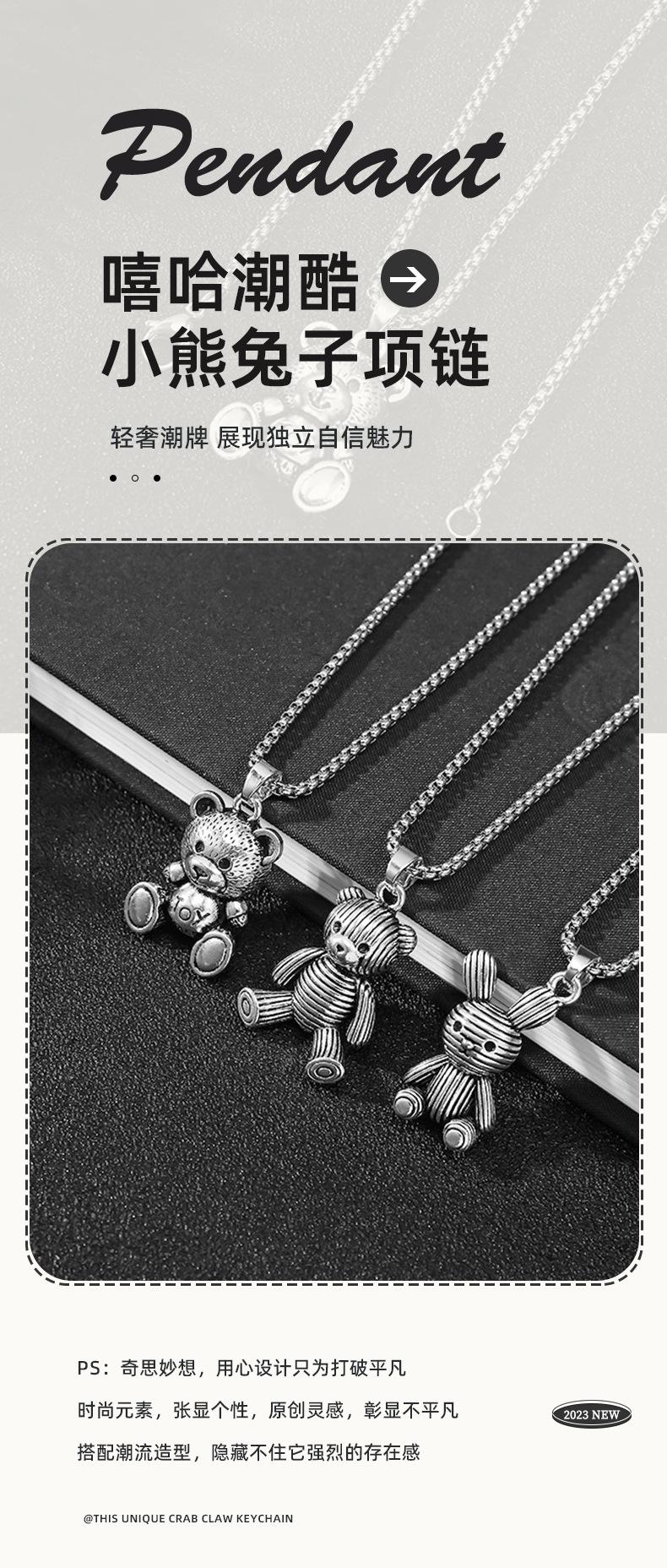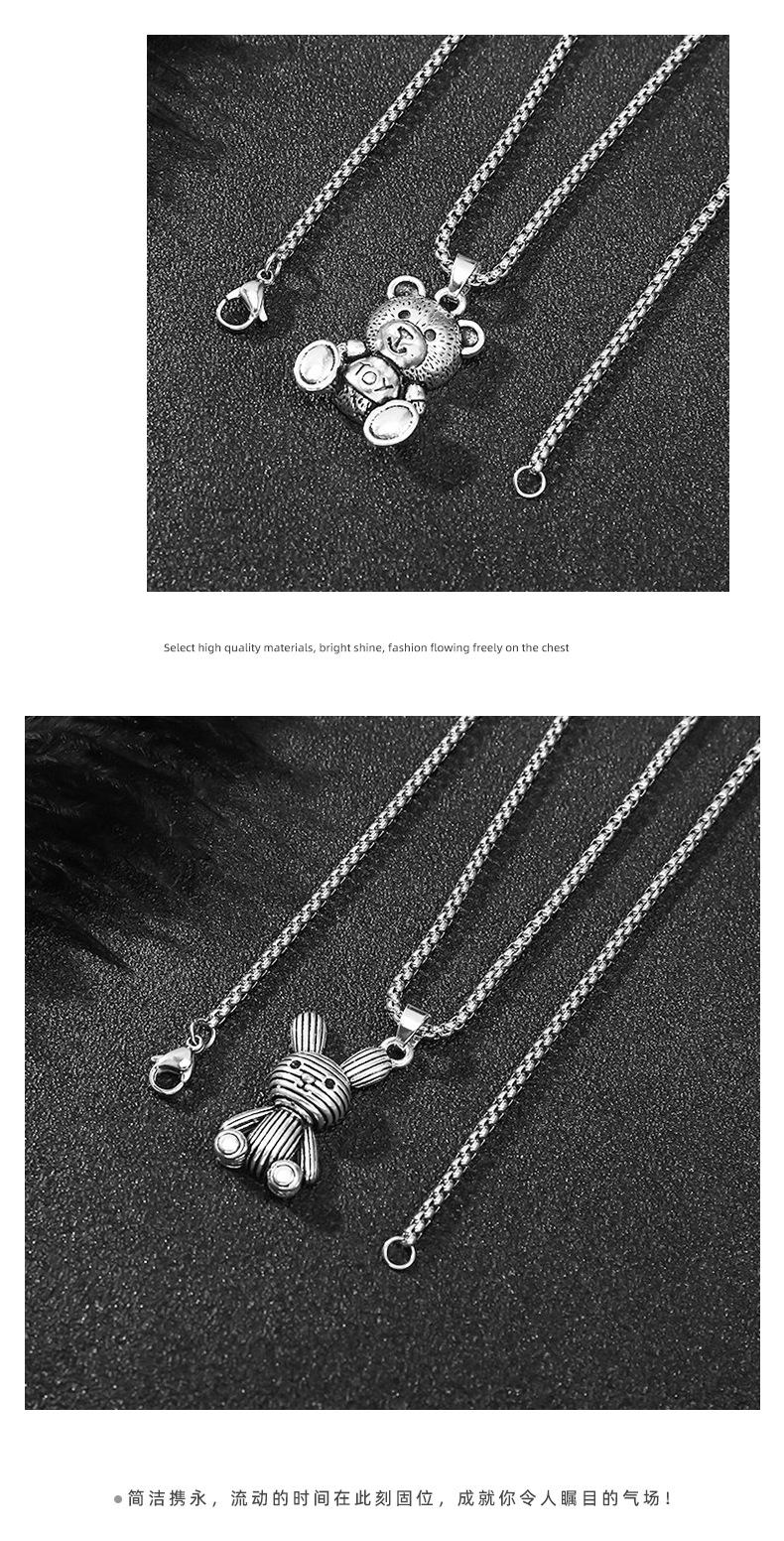 Nuevo collar de acero de titanio con colgante de conejo estilo hip hop, sencillo y combinable, cadena larga distintiva para mujer
