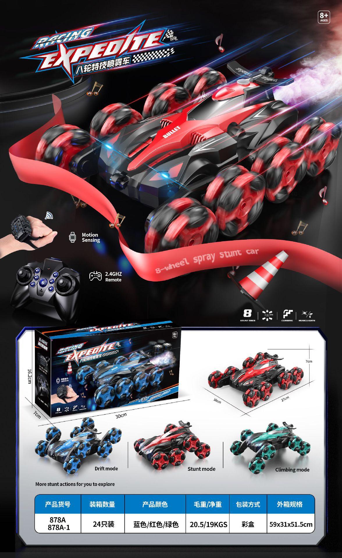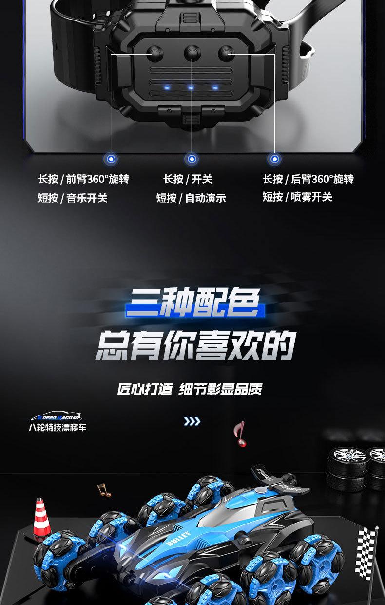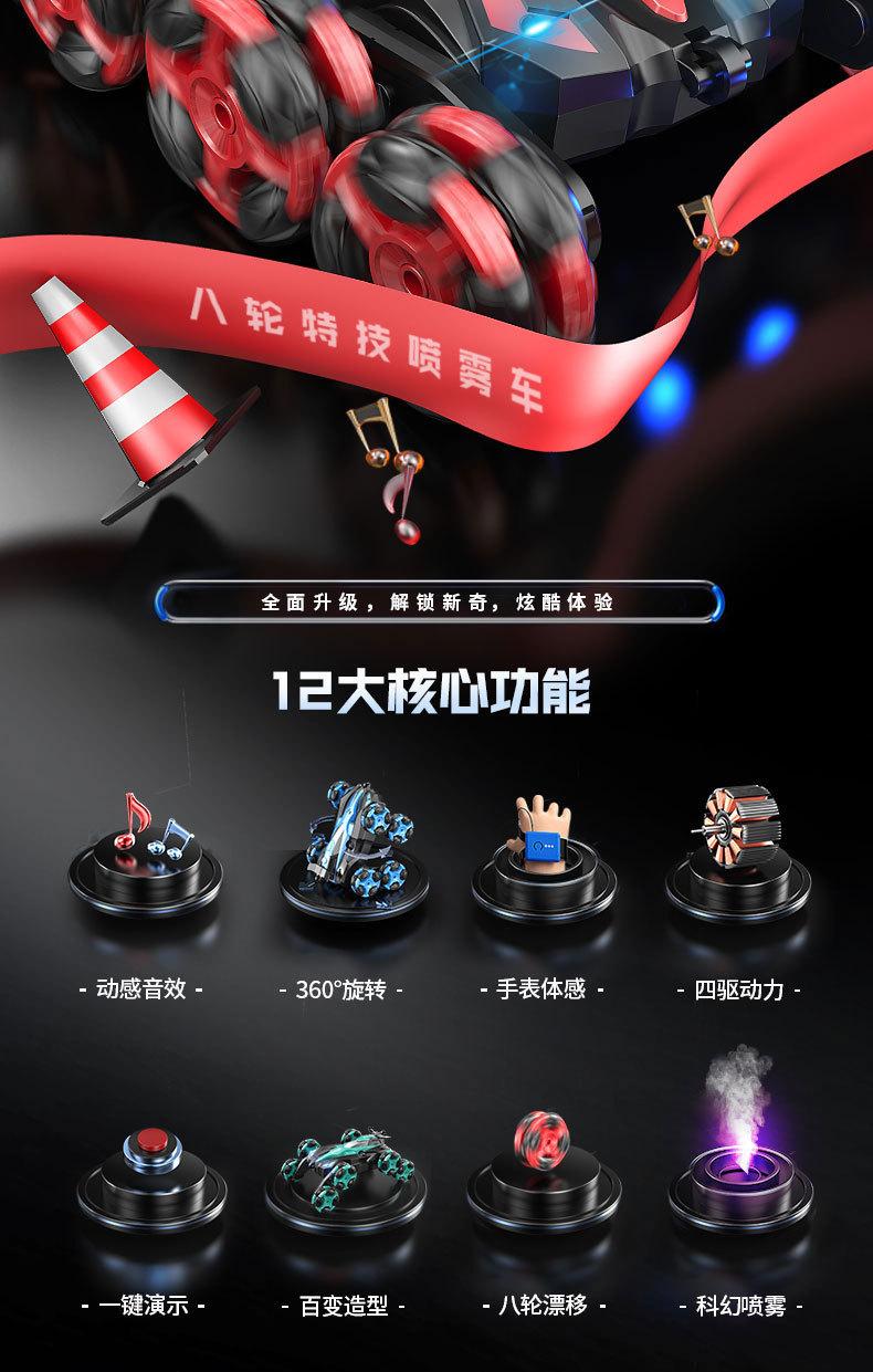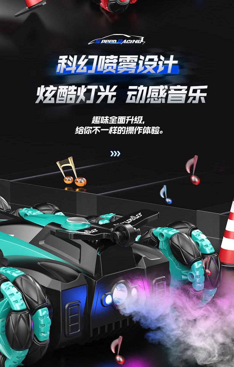 Nombre del producto: Coche de acrobacias a la deriva con spray de 8 ruedas 2.4G (con luz, música y spray)