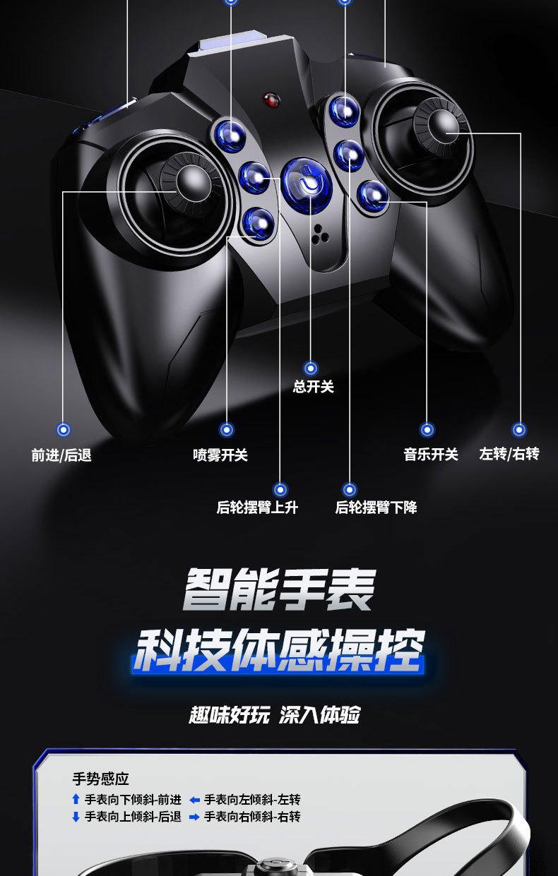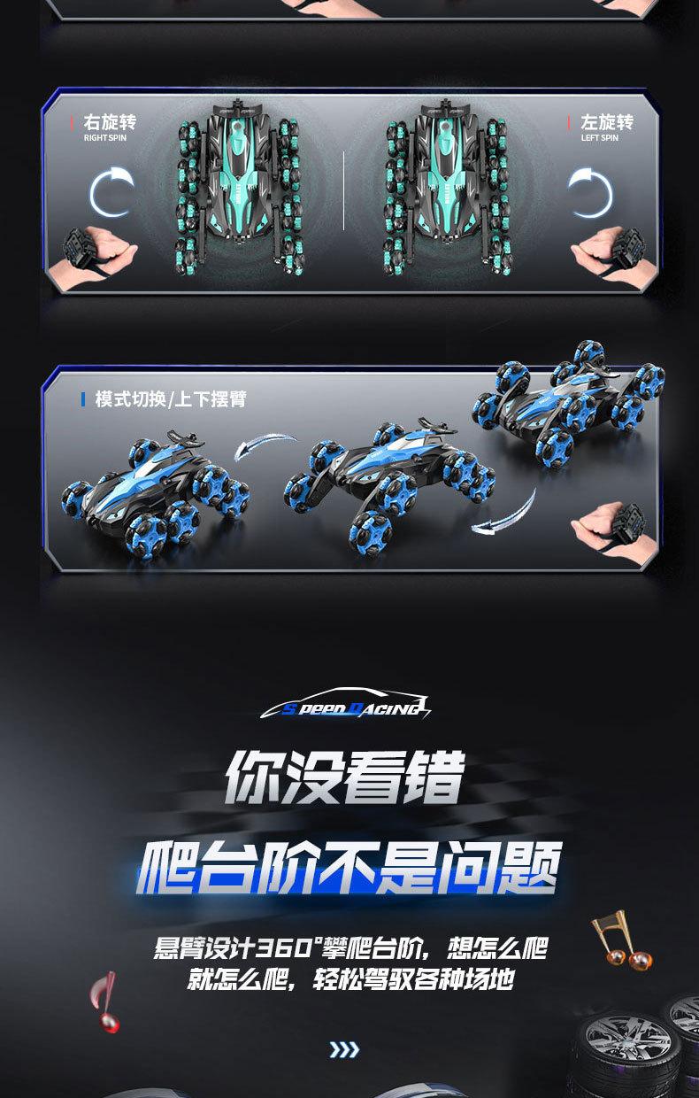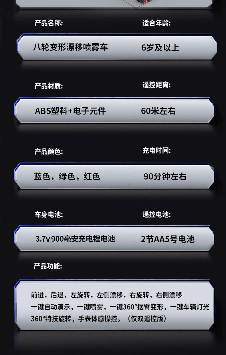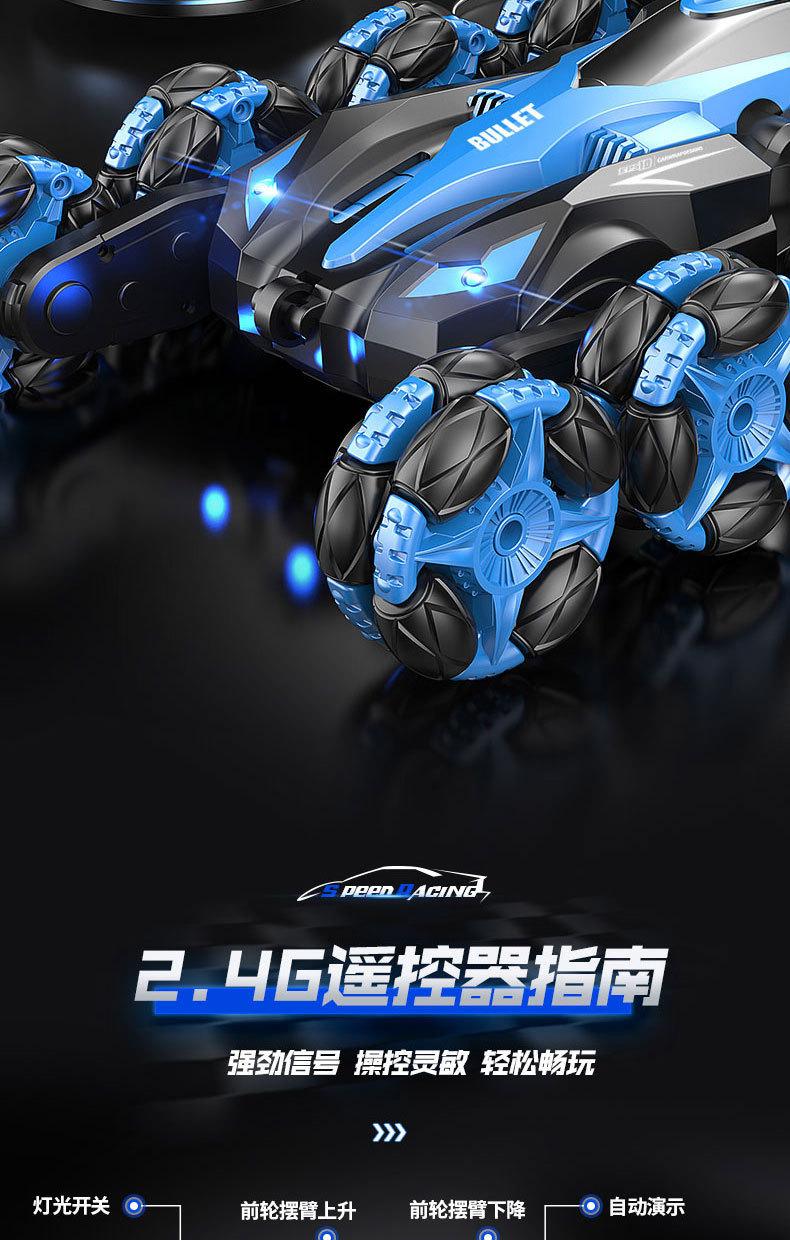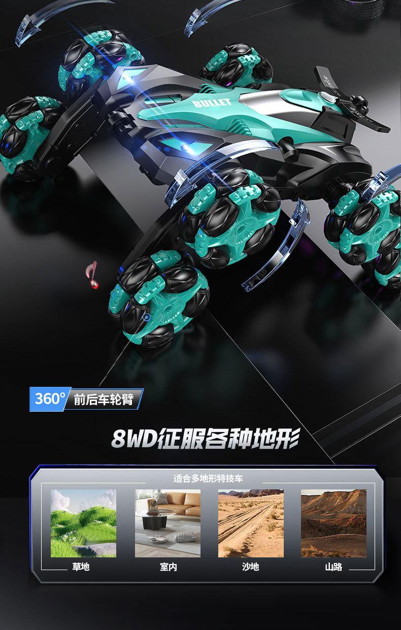 Nombre del producto: Coche de acrobacias a la deriva con spray de 8 ruedas 2.4G (con luz, música y spray)