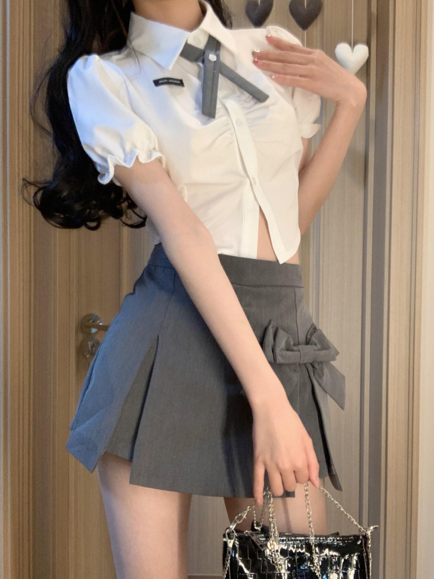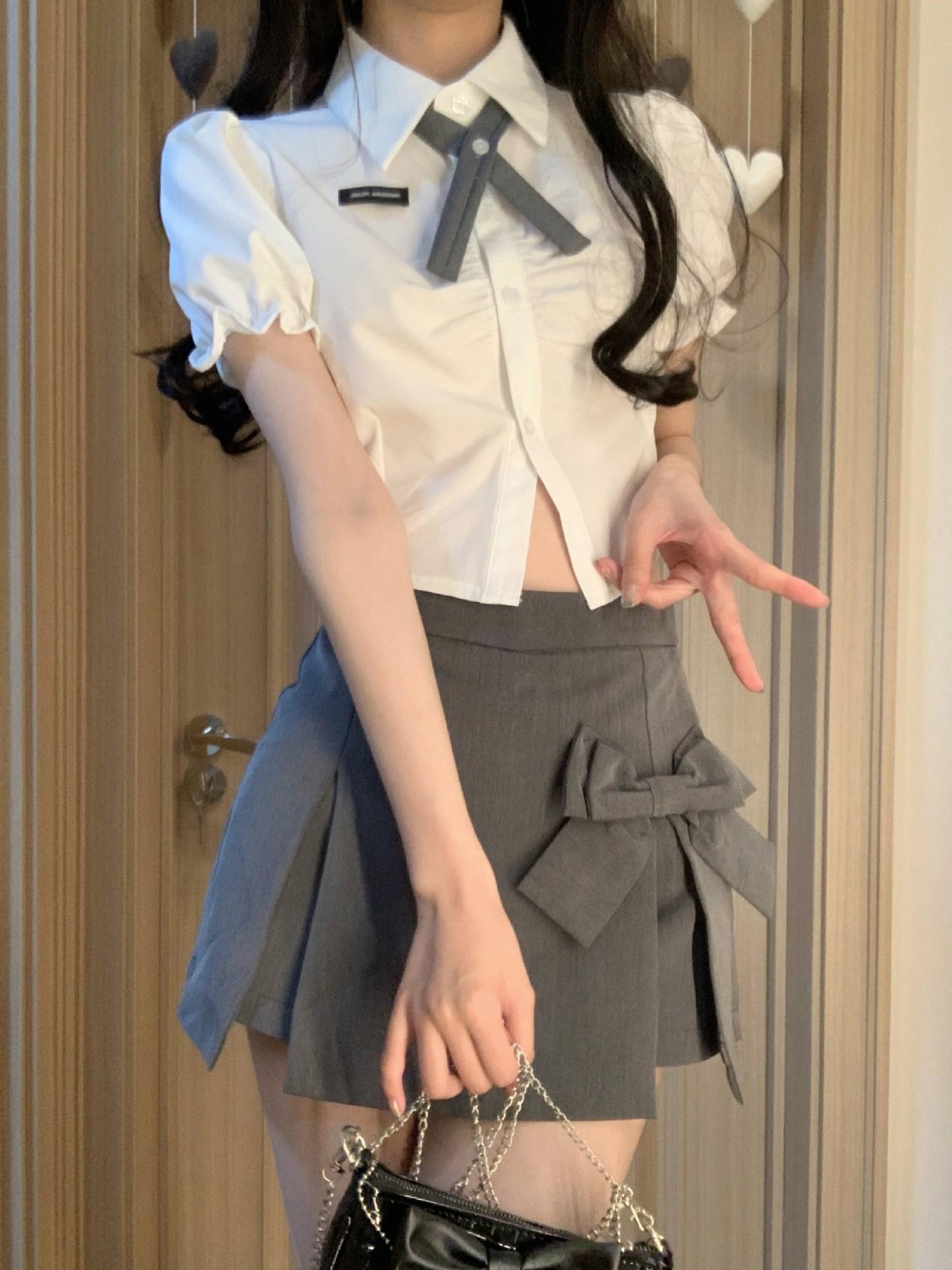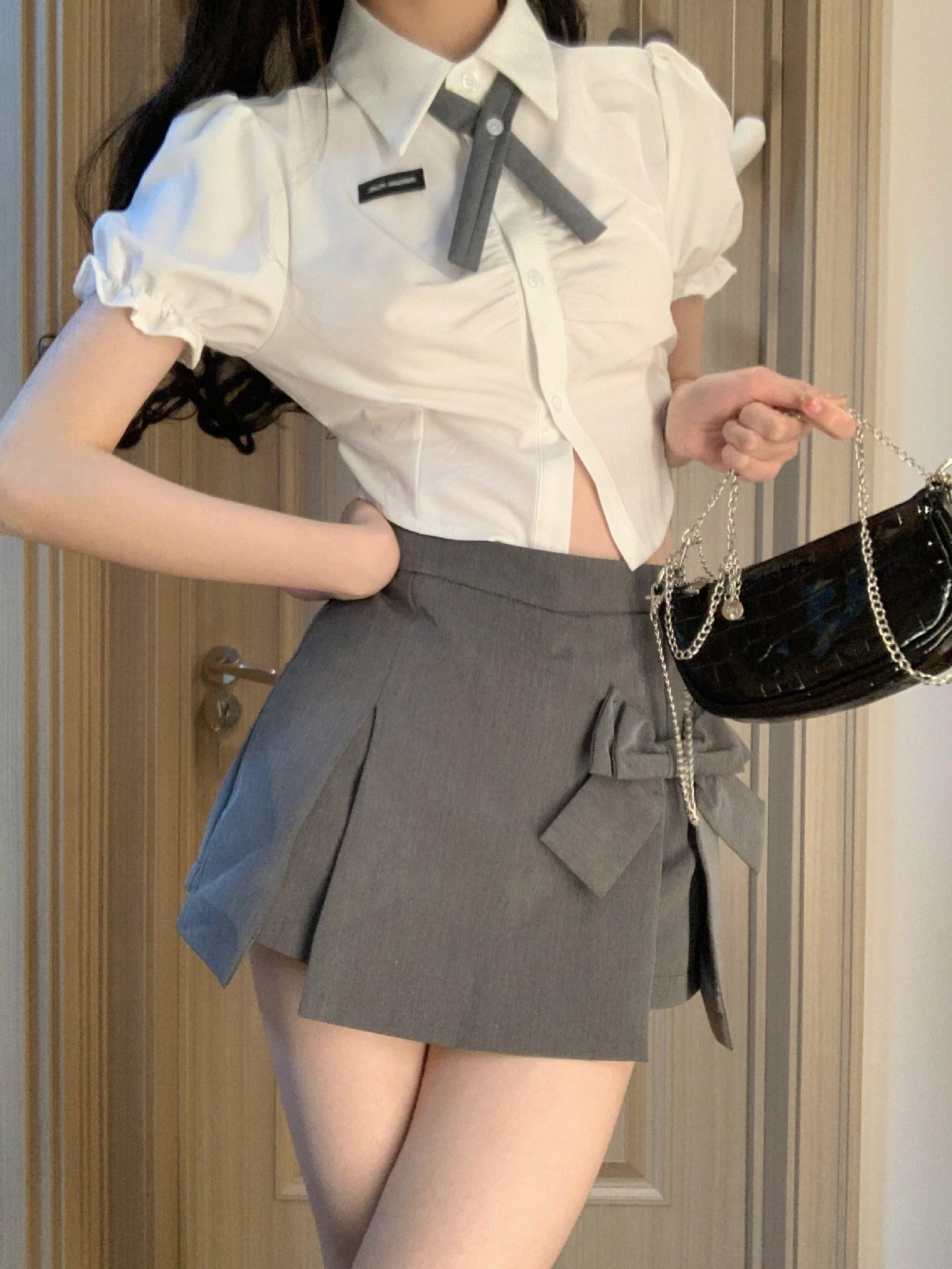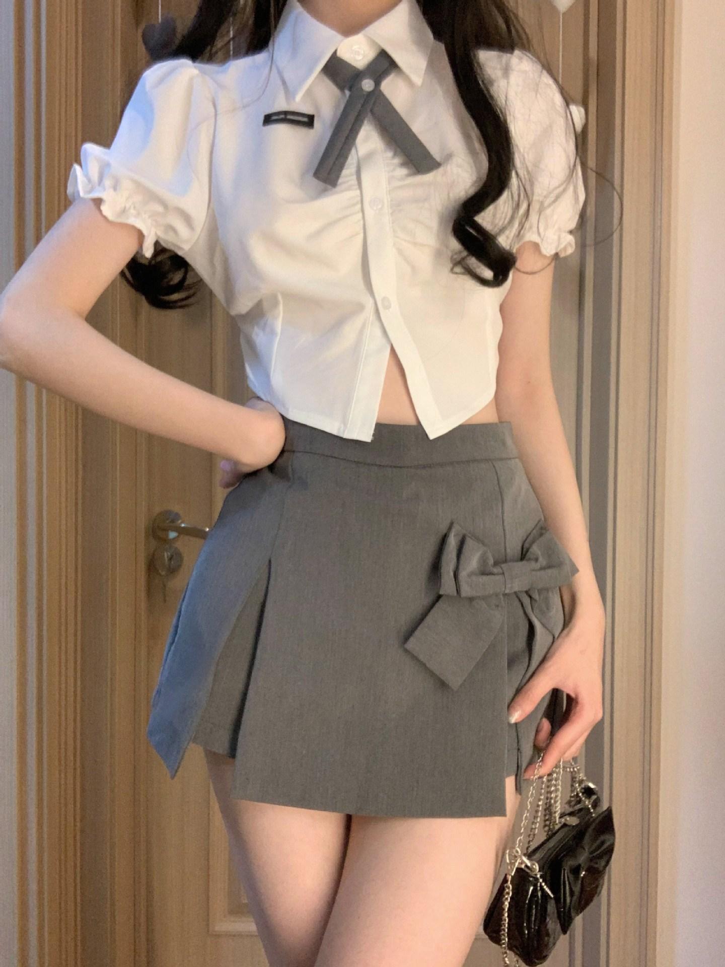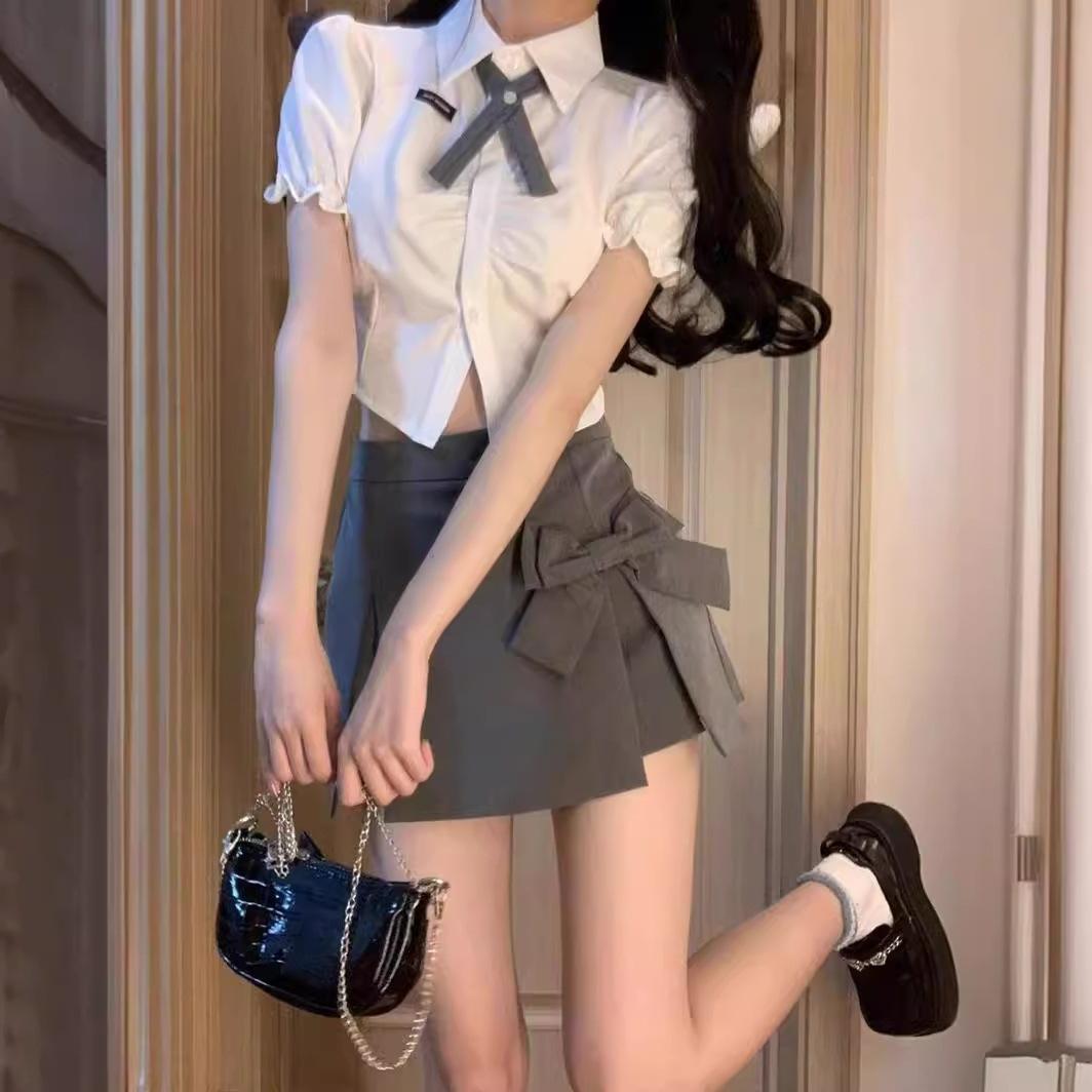 Falda de traje gris para mujer, verano 2024, nueva falda de mariposa para chica sexy, falda de cadera, cintura alta pequeña, falda de línea A