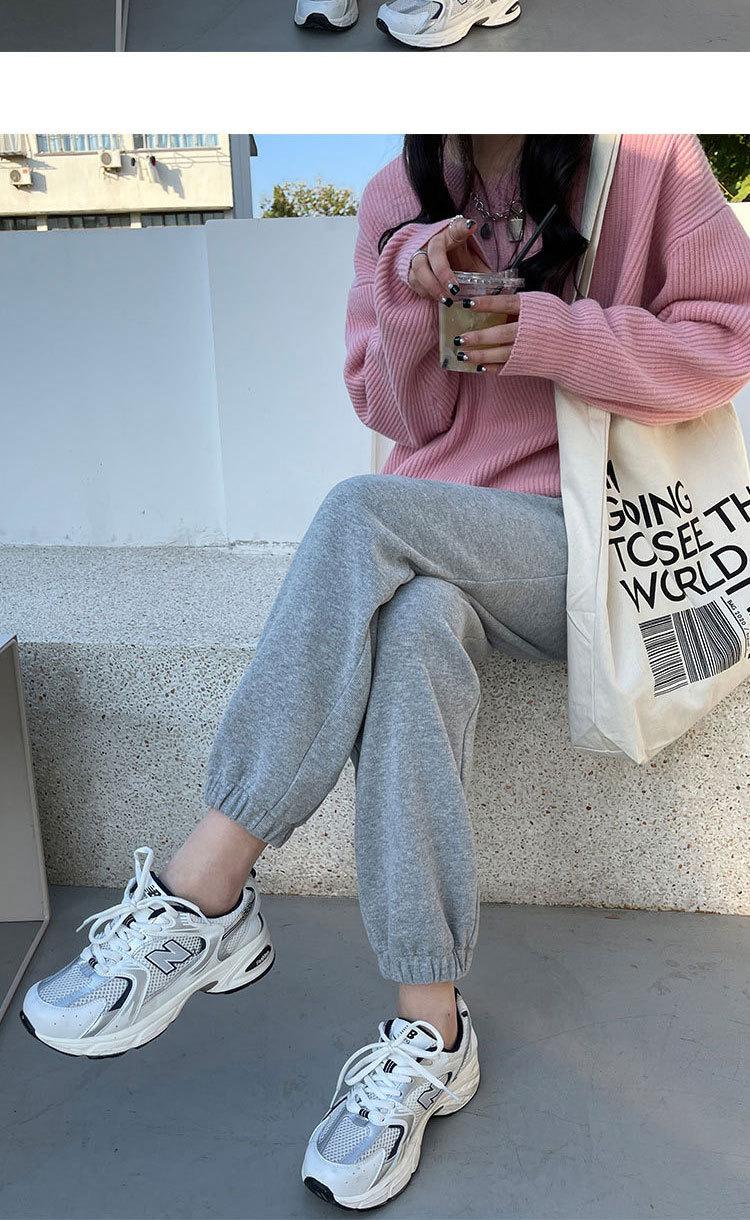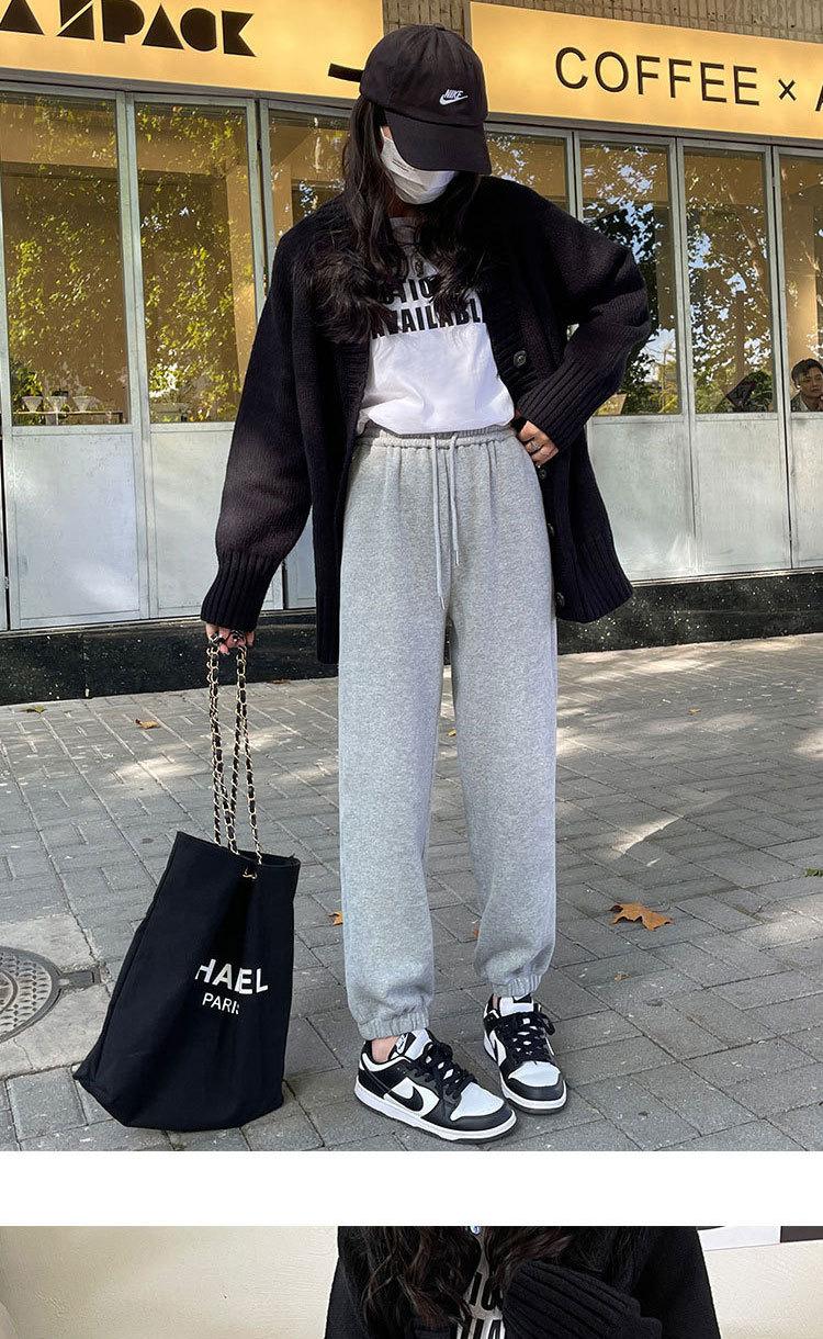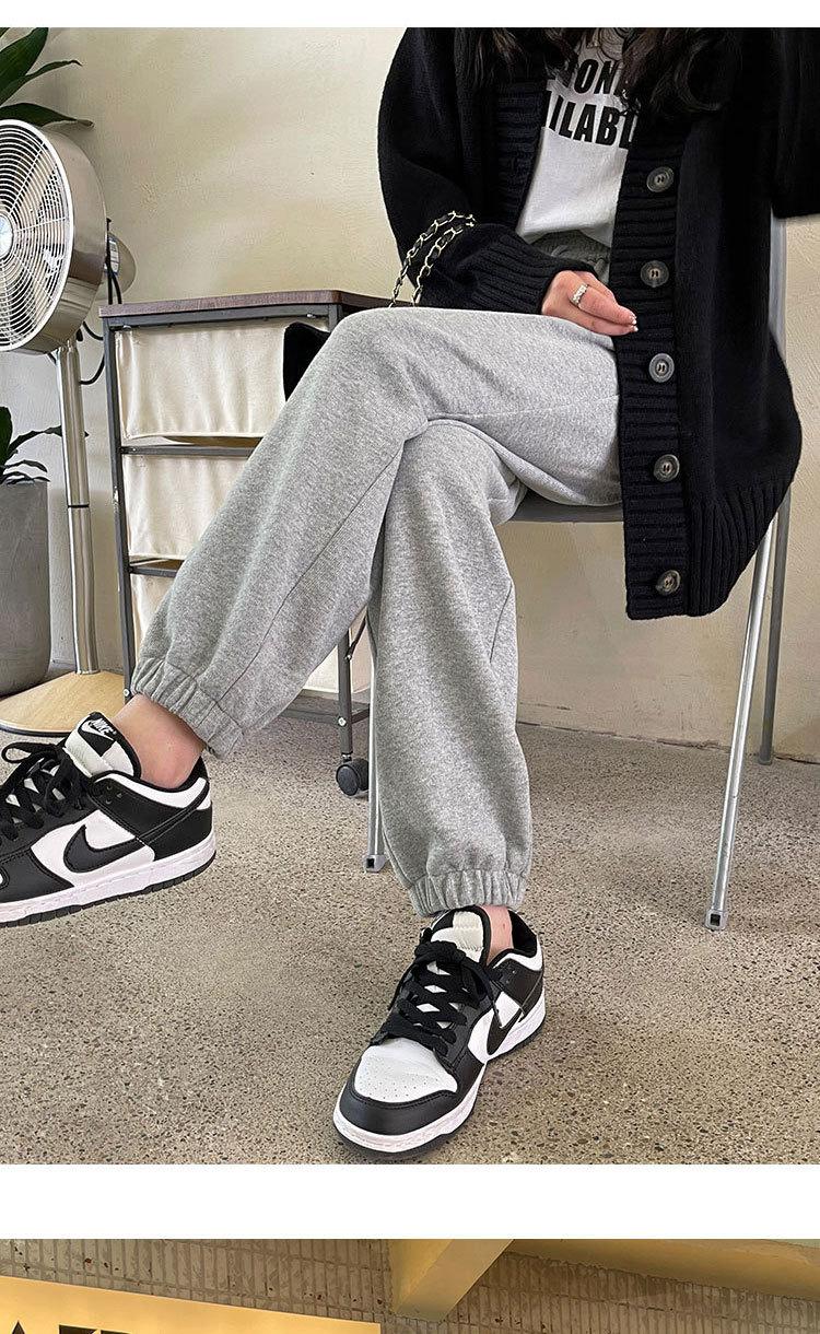 Pantalones deportivos grises con tobillo atado para mujer 2023 nuevos pantalones de sudor de primavera y otoño de cintura alta holgados casuales rectos harem que combinan con todo moda