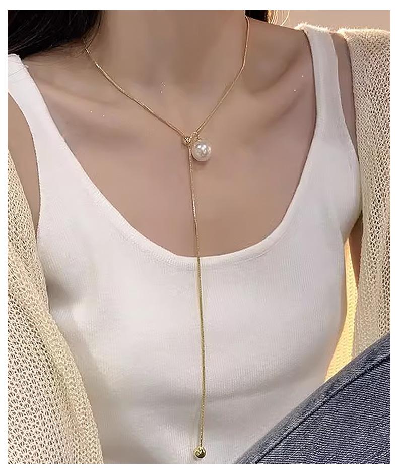 Collar de Perlas Ajustable para Mujer Nicho de Lujo Ligero 2025 Nuevo Collar de Estilo Caliente Cadena Larga para Suéter de Clavícula Accesorios Otoño