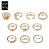 Combinación de Anillos Transfronterizos Europeos y Americanos 10 Piezas Luna Estrellas Hojas Corazón Diamante de Imitación Juego de Anillos para Nudillos al Por Mayor