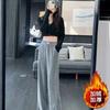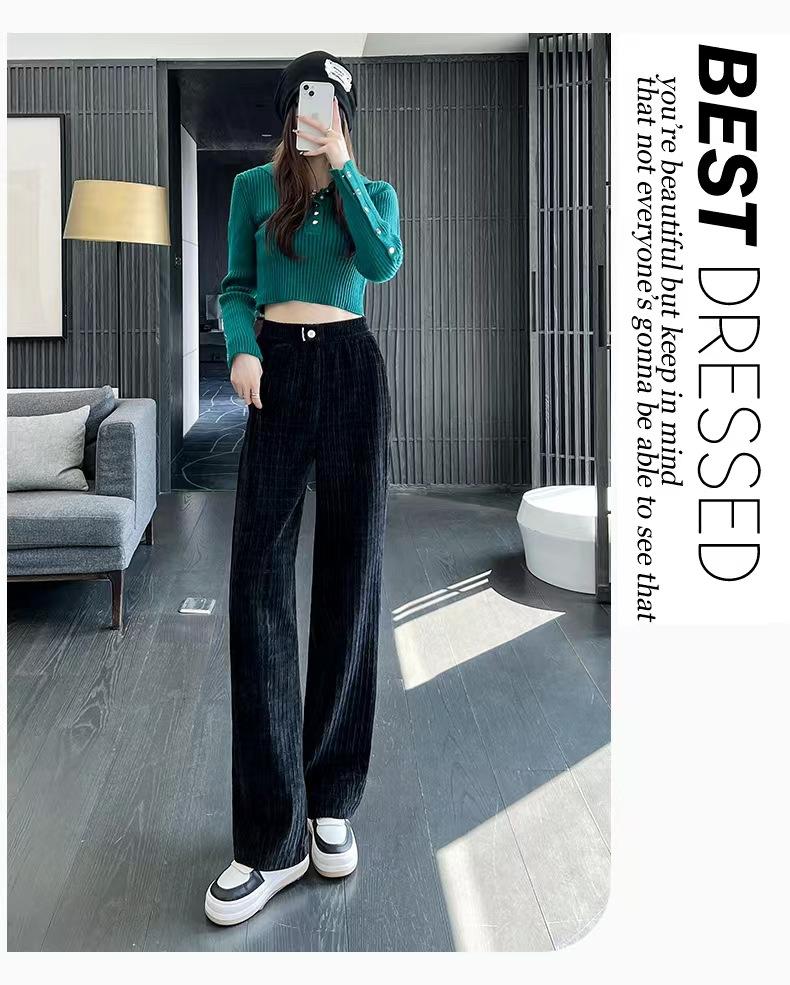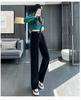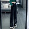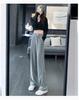 Pantalones negros de pierna ancha para mujer, de primavera y verano, de cintura alta, informales, rectos, para tallas pequeñas y pequeñas, holgados y ajustados.