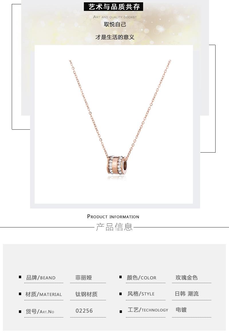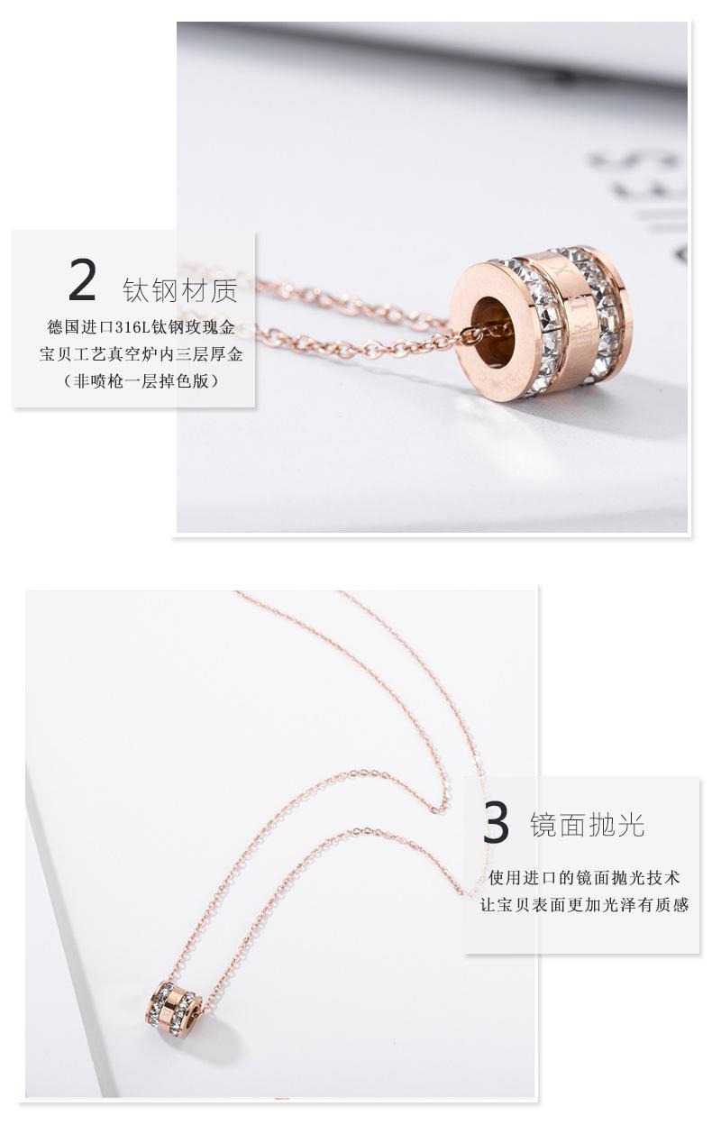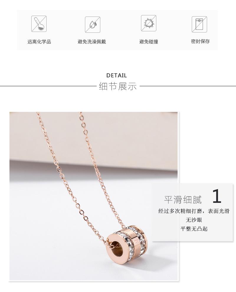 Collar de acero de titanio estilo coreano para mujer, cadena elegante de clavícula con circonitas en ambos lados y números romanos en el medio, en oro rosa.