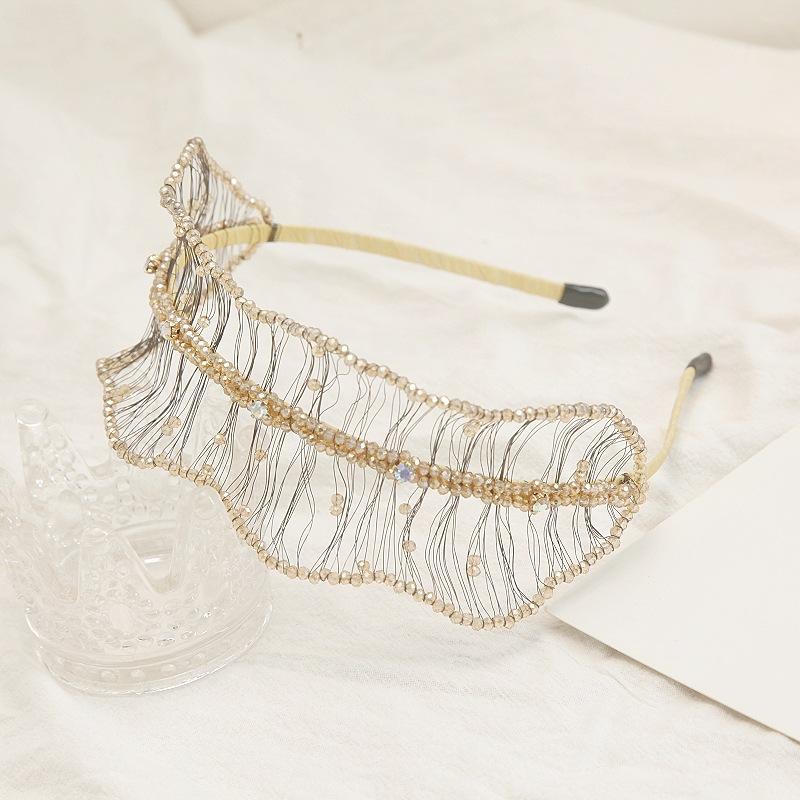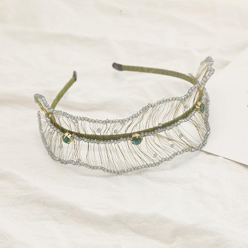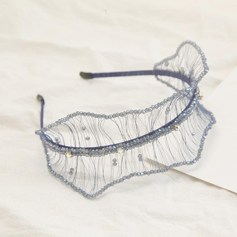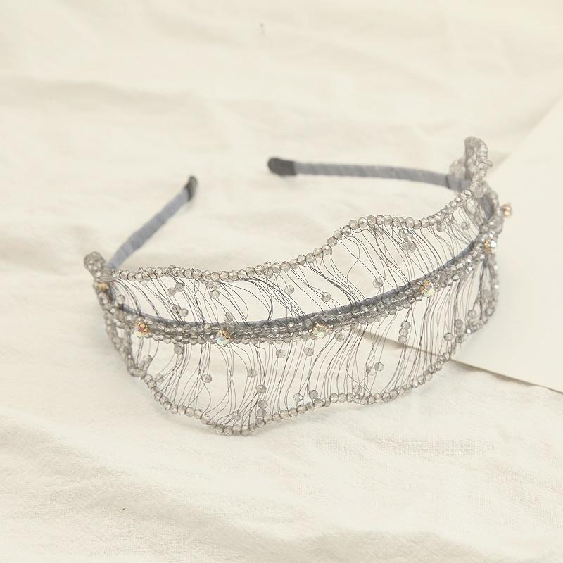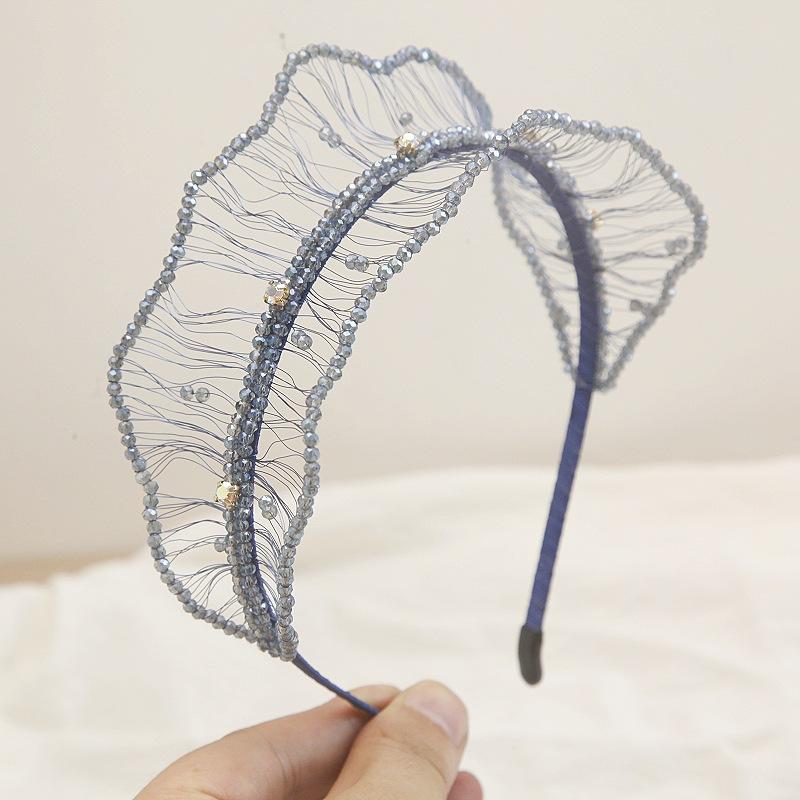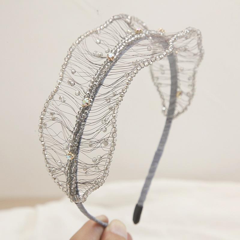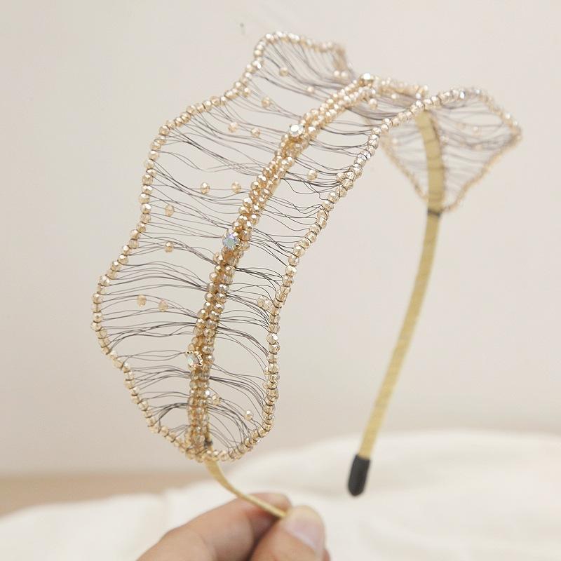 Diadema ligera de lujo con cuentas de cristal hechas a mano para uso industrial pesado, estilo coreano, elegante diseño de nicho, malla tejida con diamantes de imitación, accesorios para el cabello de celebridades de Internet