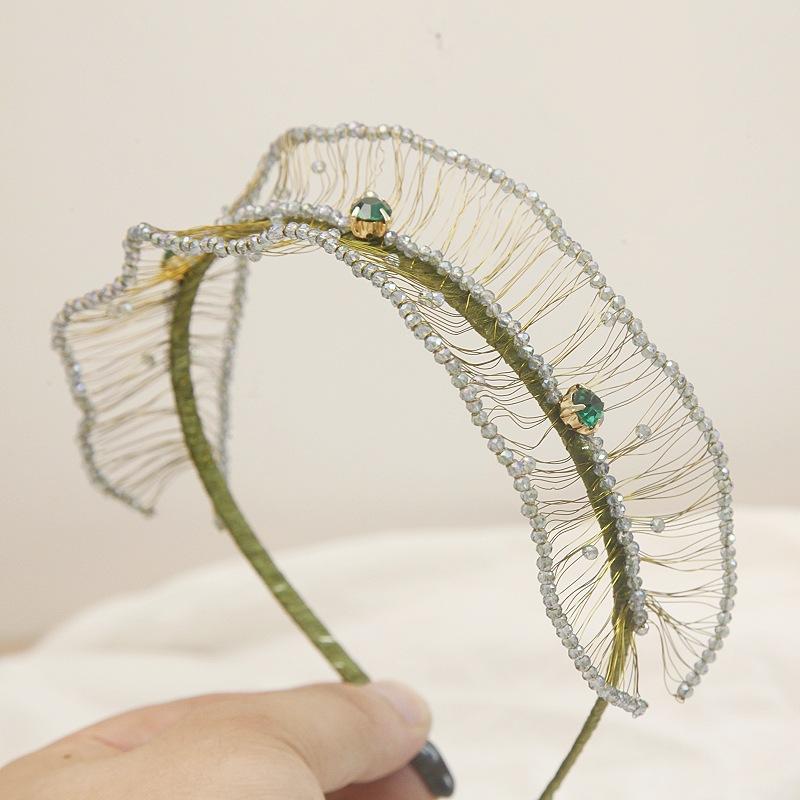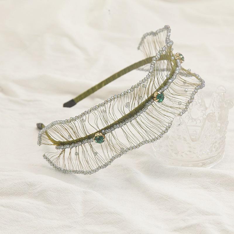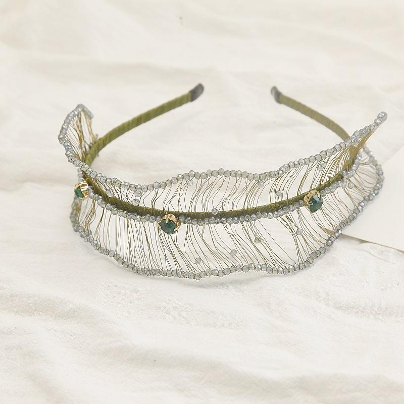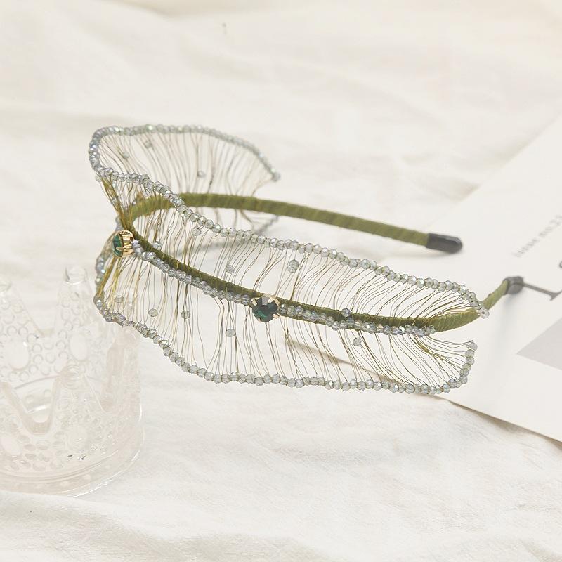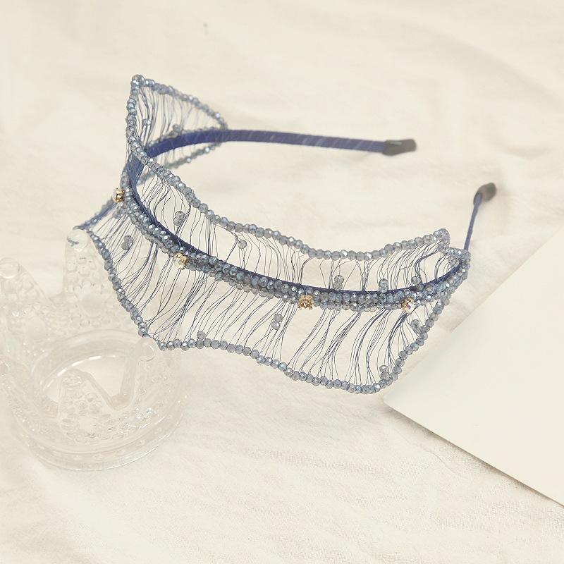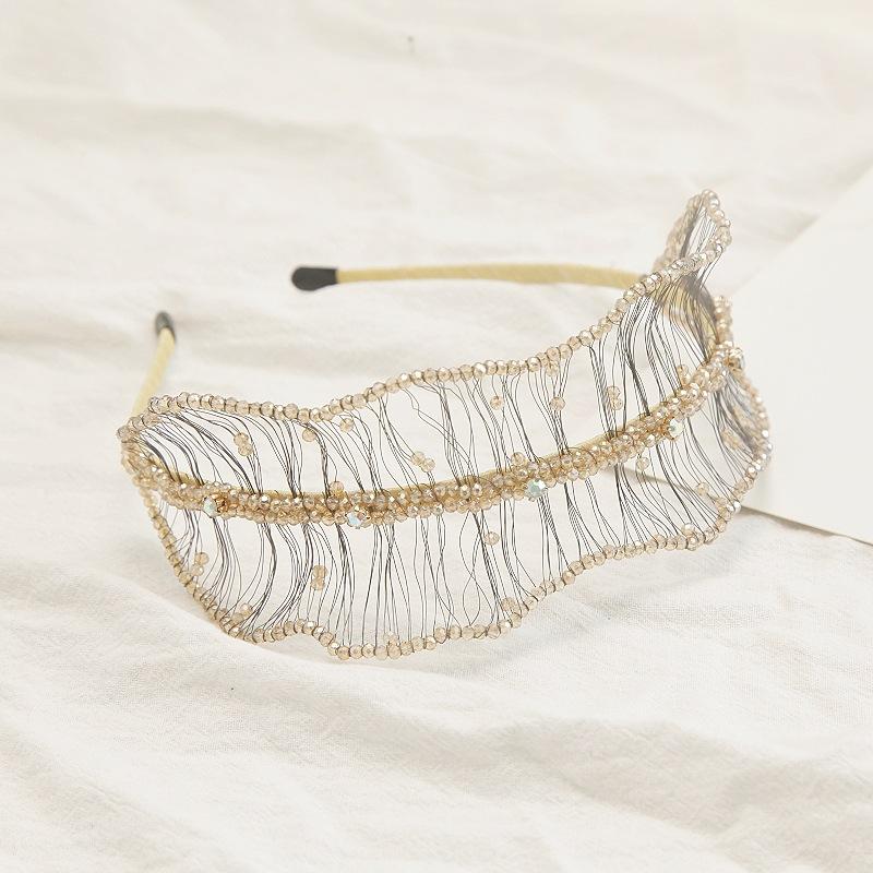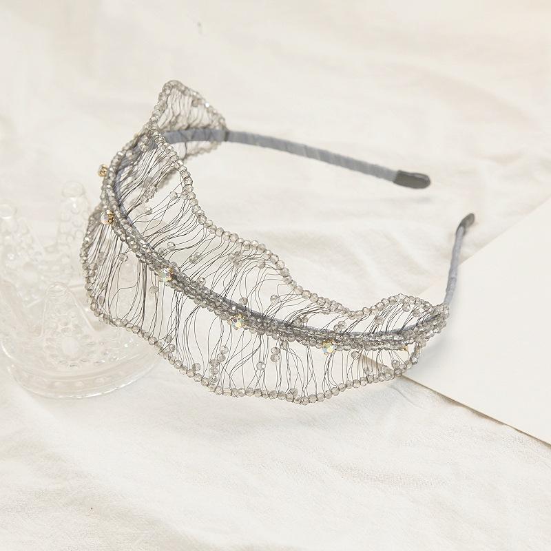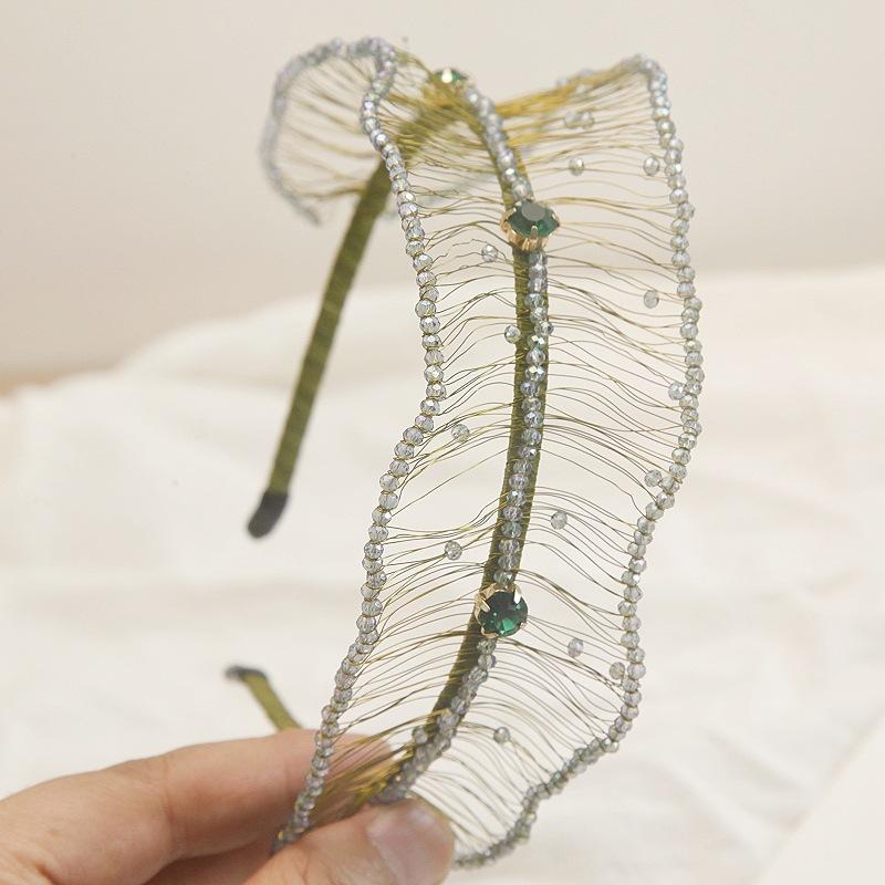 Diadema ligera de lujo con cuentas de cristal hechas a mano para uso industrial pesado, estilo coreano, elegante diseño de nicho, malla tejida con diamantes de imitación, accesorios para el cabello de celebridades de Internet