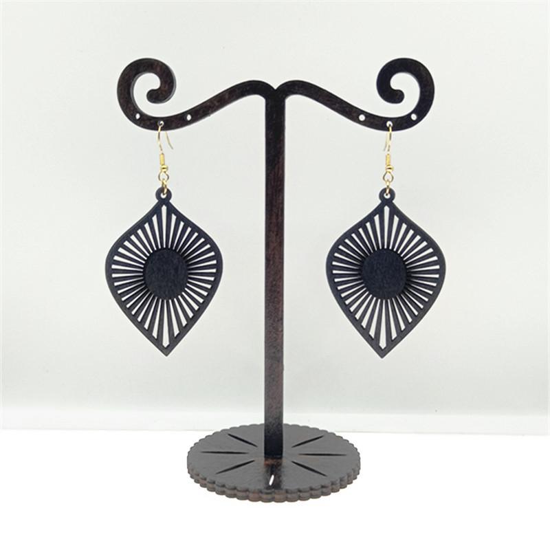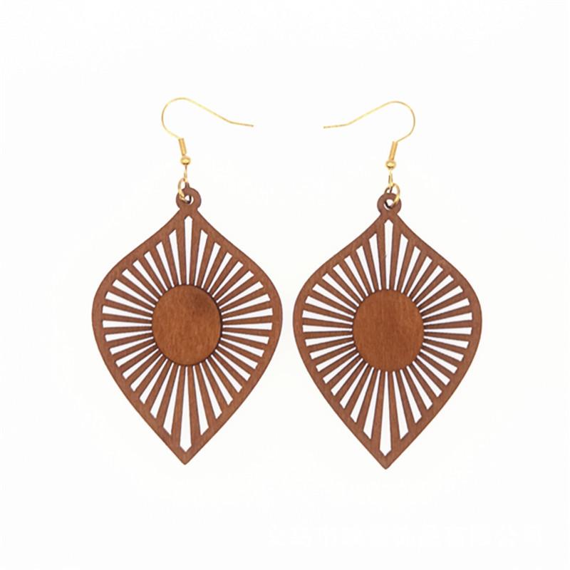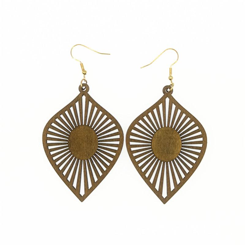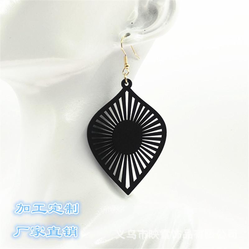 Pendientes sencillos de moda transfronteriza de Amazon, de estilo europeo y americano, con corte de madera, con temperamento hueco y gancho para la oreja.