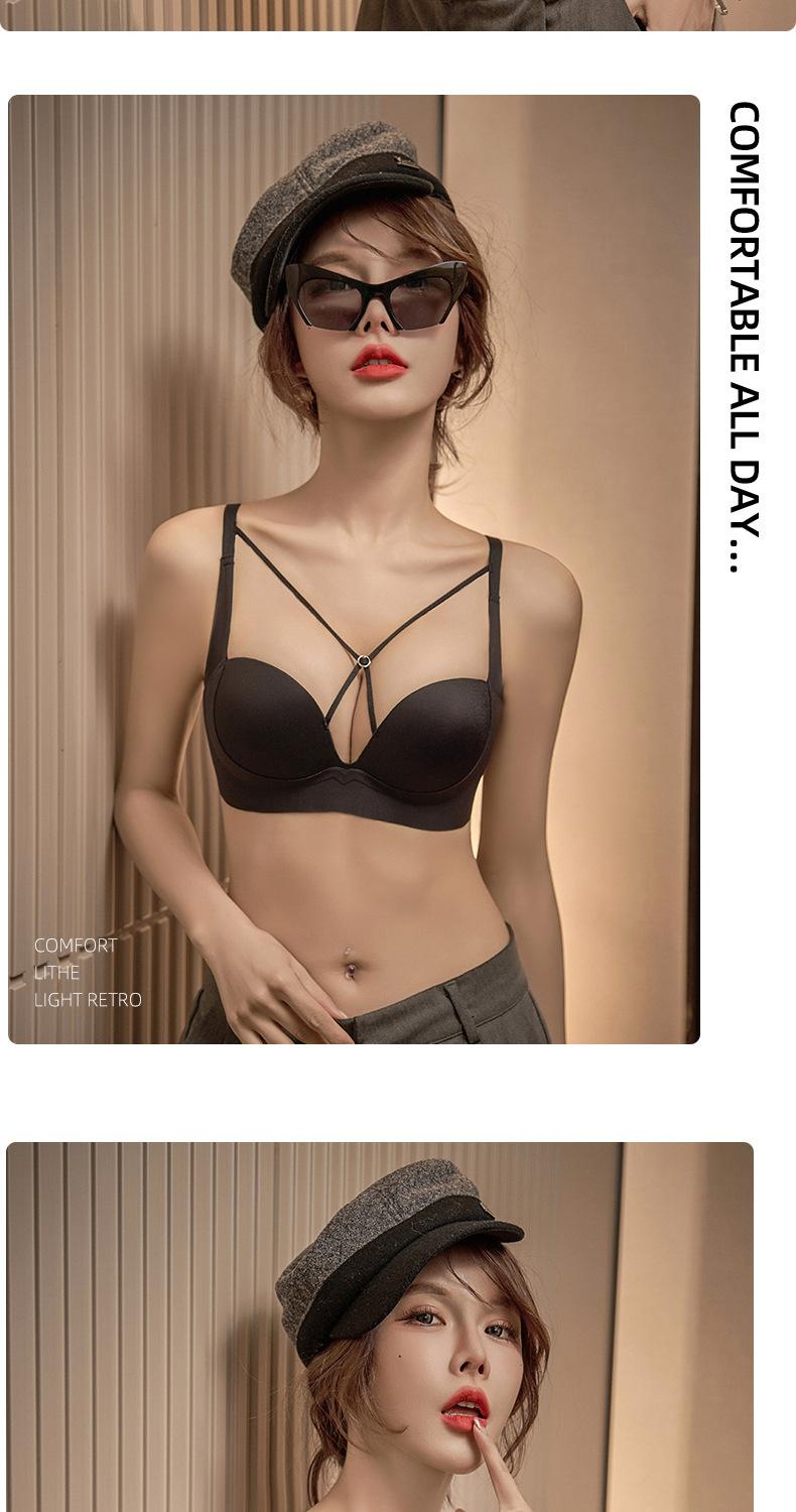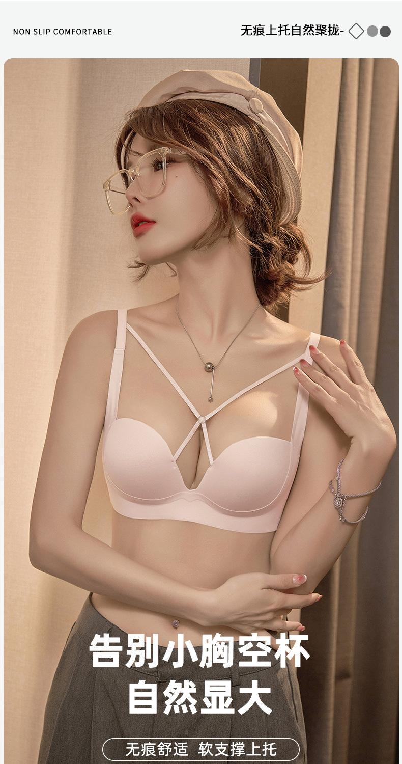 | Ropa interior de mujer con diseño de cómic que se expande hacia afuera, pechos pequeños que se ven grandes, cómoda y sin costuras, posavasos engrosado, transpirable, sin aros de acero, sujetador fruncido |
