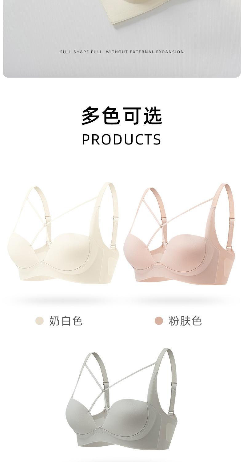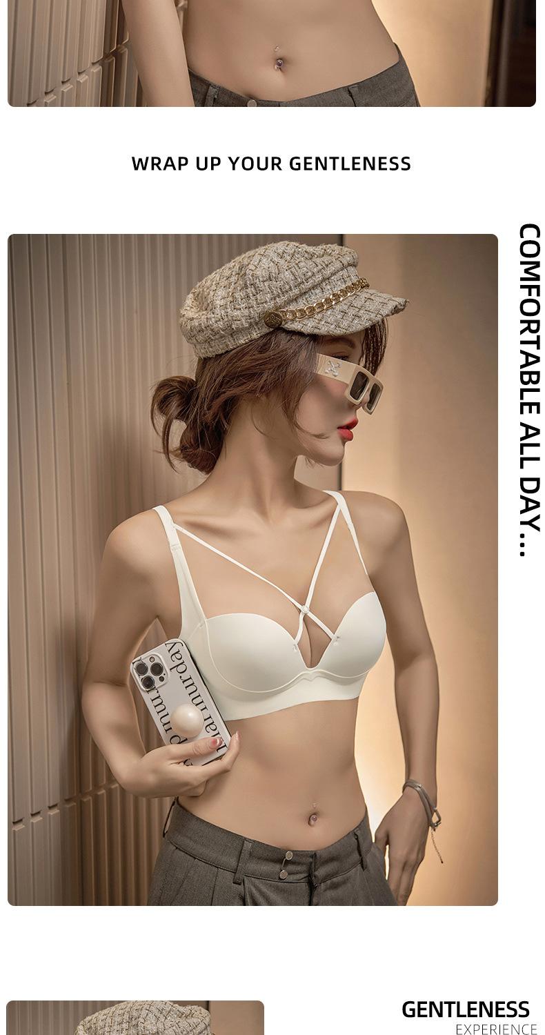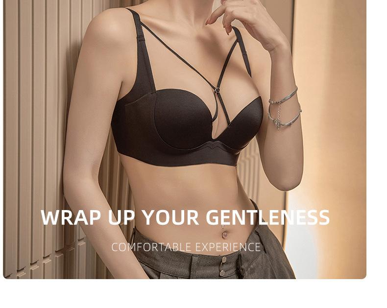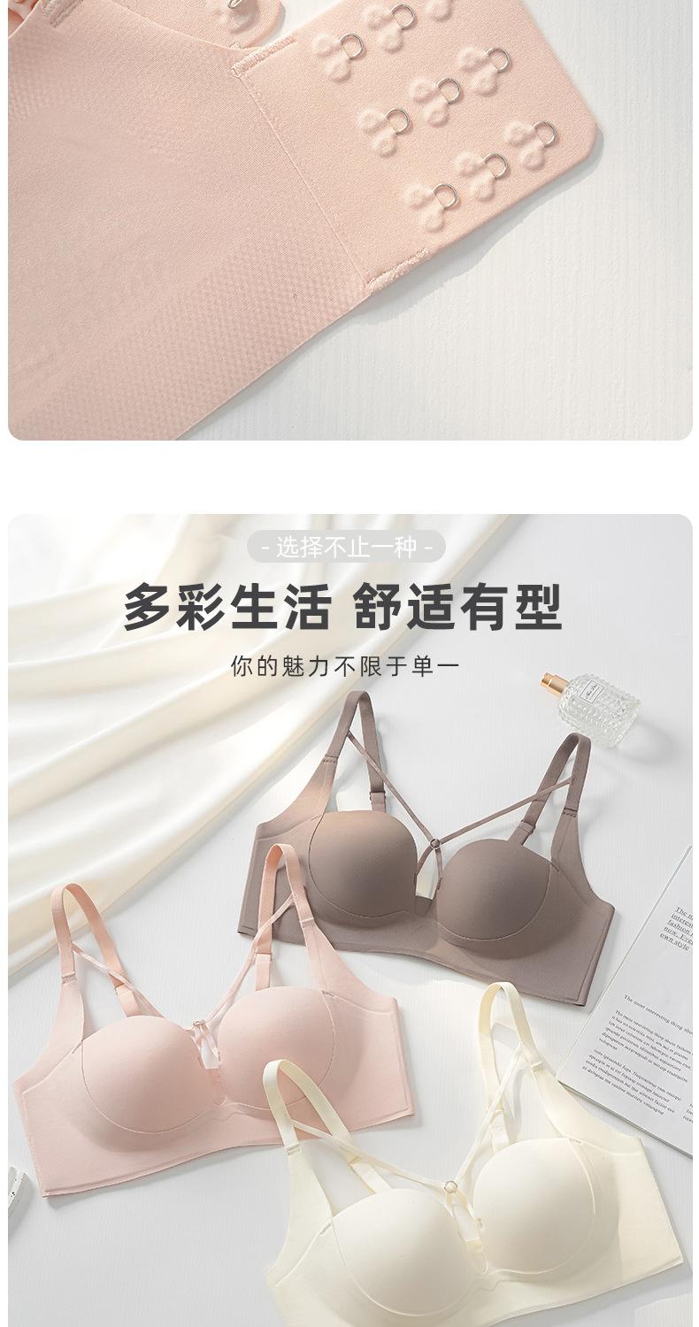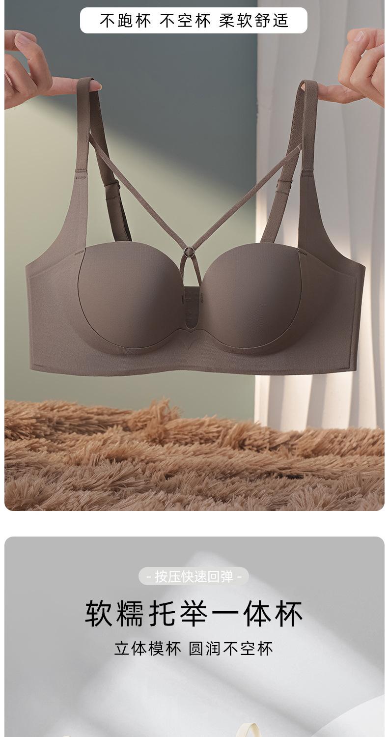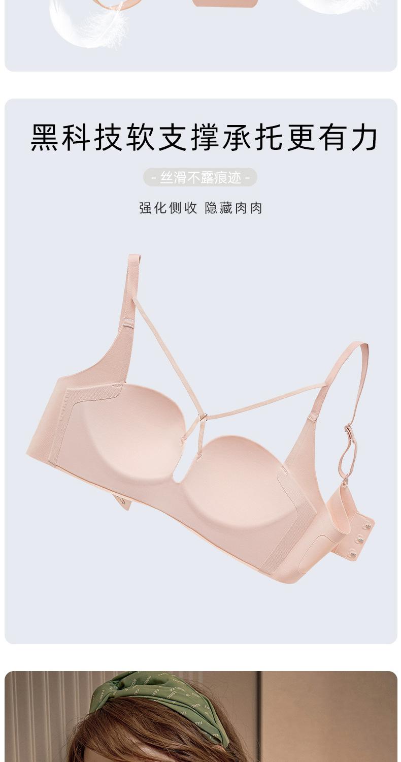 | Nueva y hermosa ropa interior trasera para mujer, fruncido sin costuras, cómodo sujetador con rosca sin aro de acero, almohadilla de copa mediana y larga con copa fija |