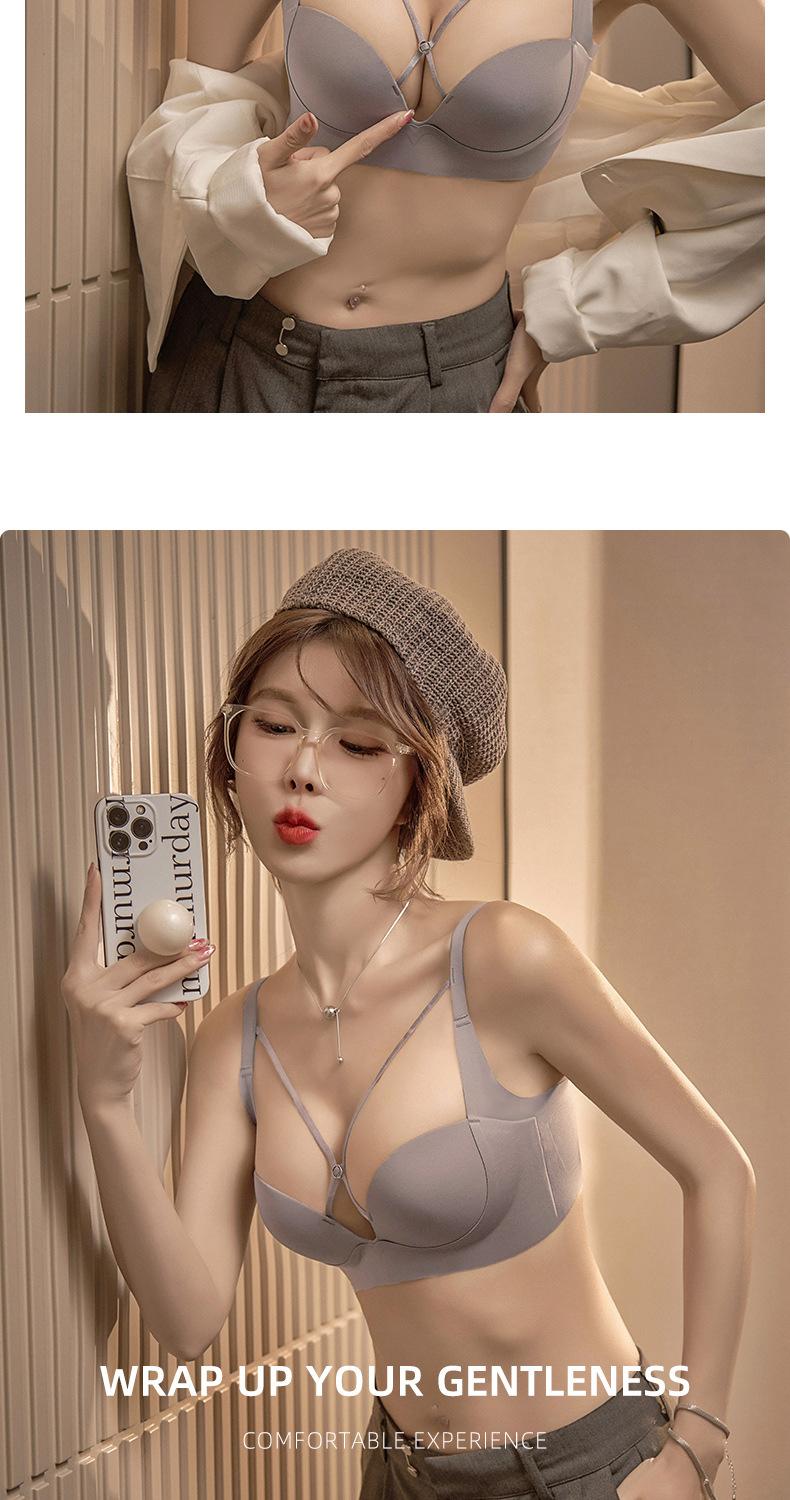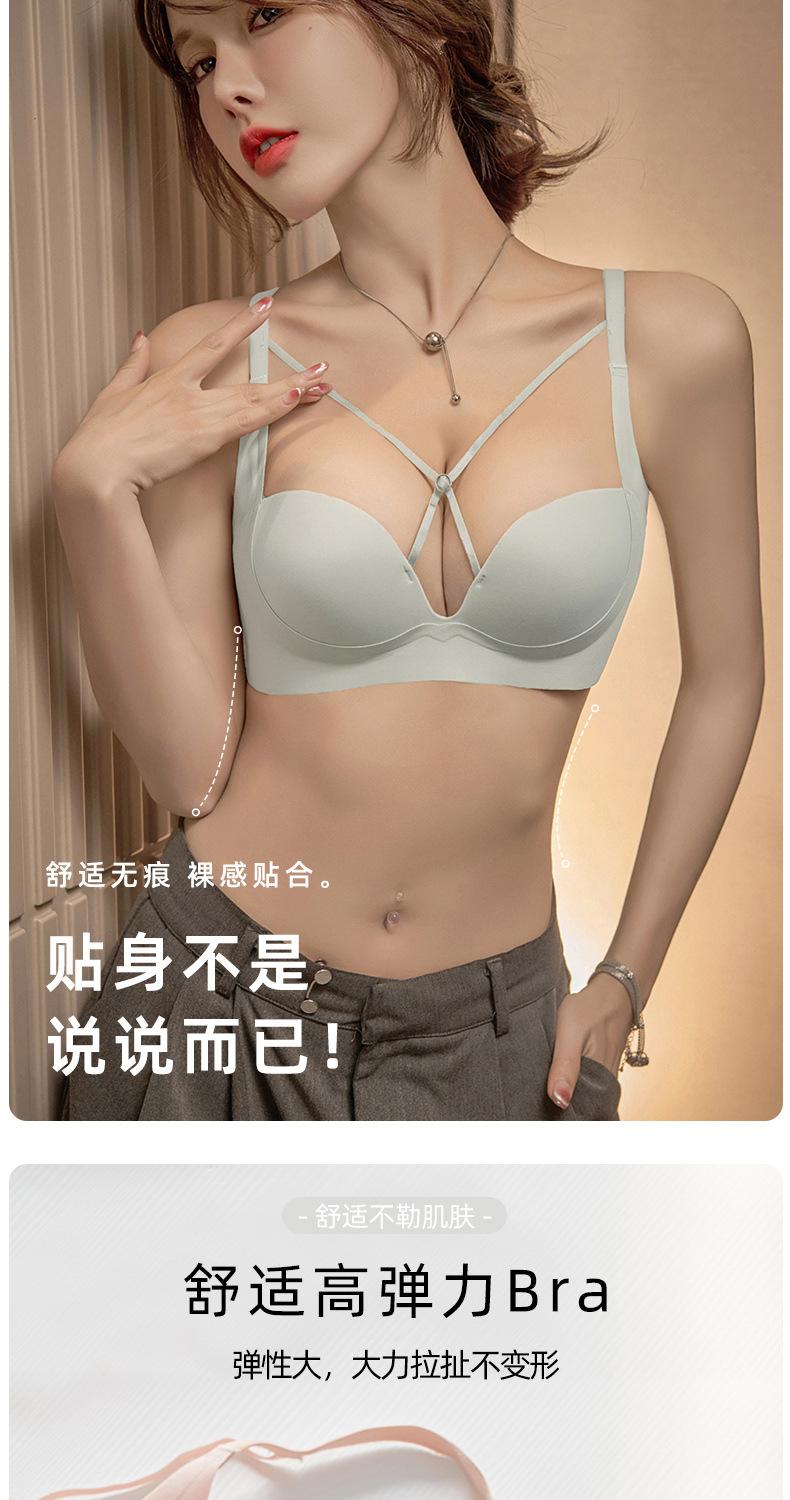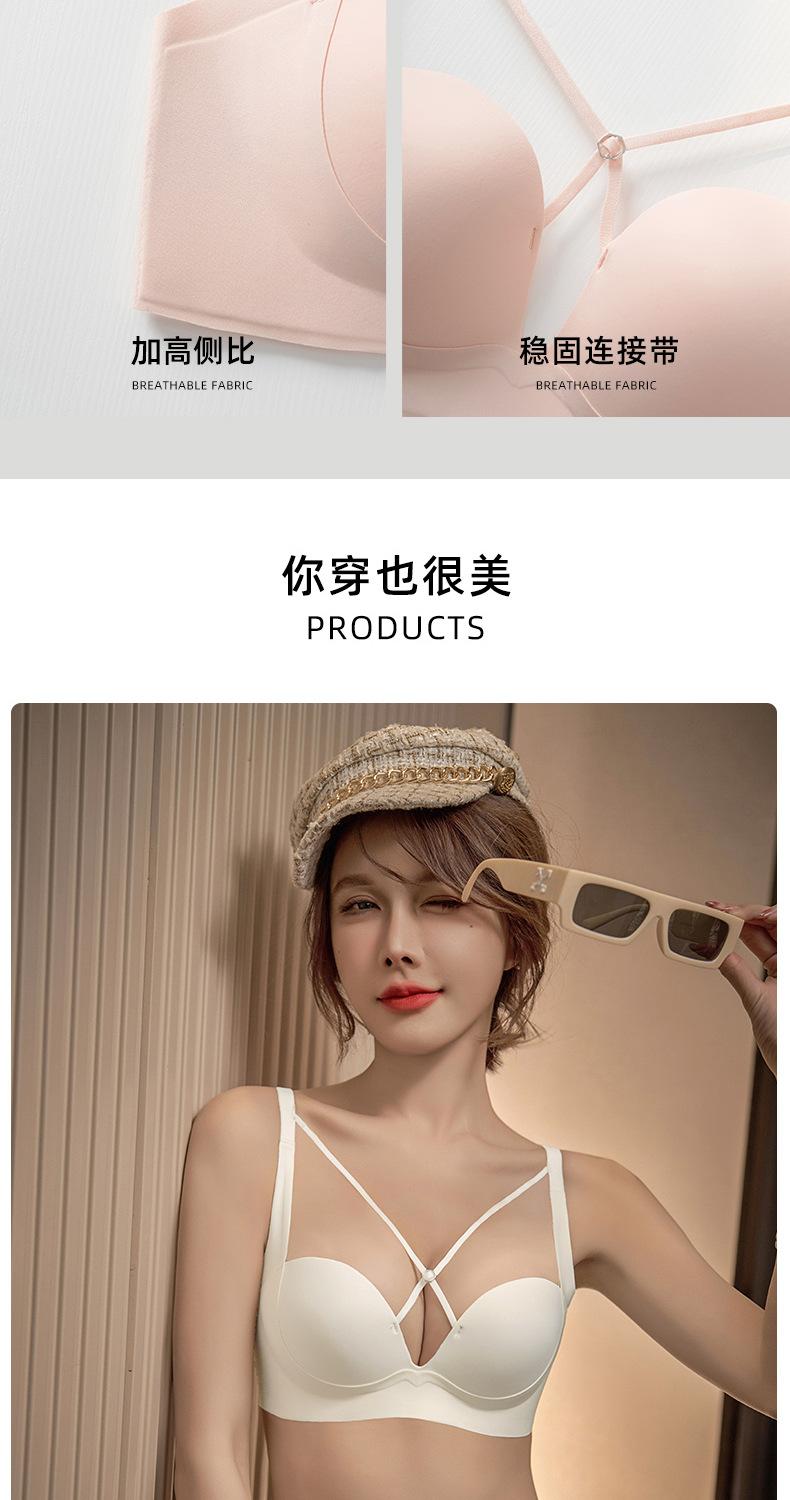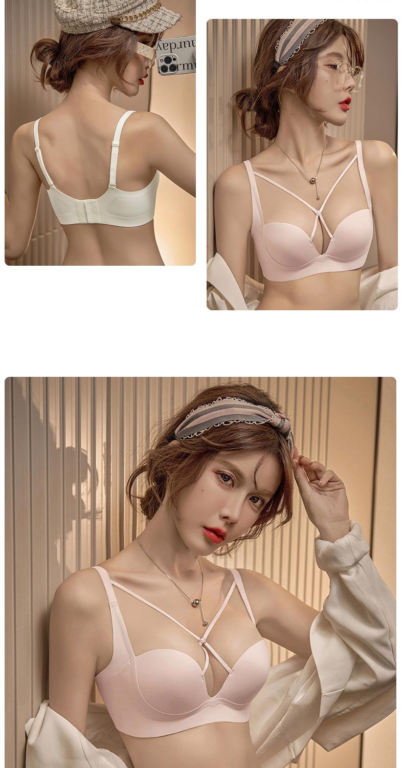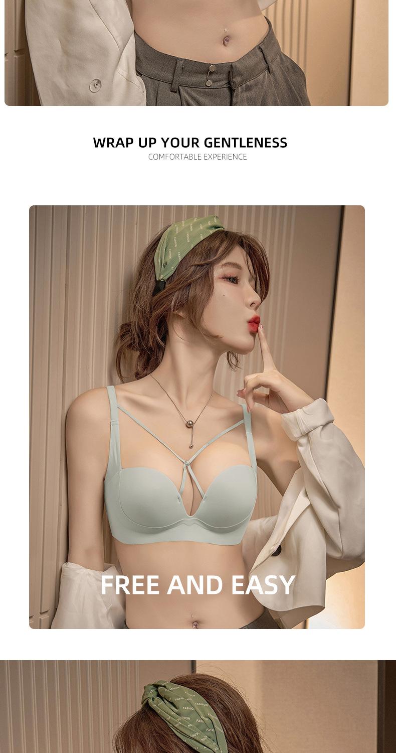 | Nueva y hermosa ropa interior trasera para mujer, fruncido sin costuras, cómodo sujetador con rosca sin aro de acero, almohadilla de copa mediana y larga con copa fija |