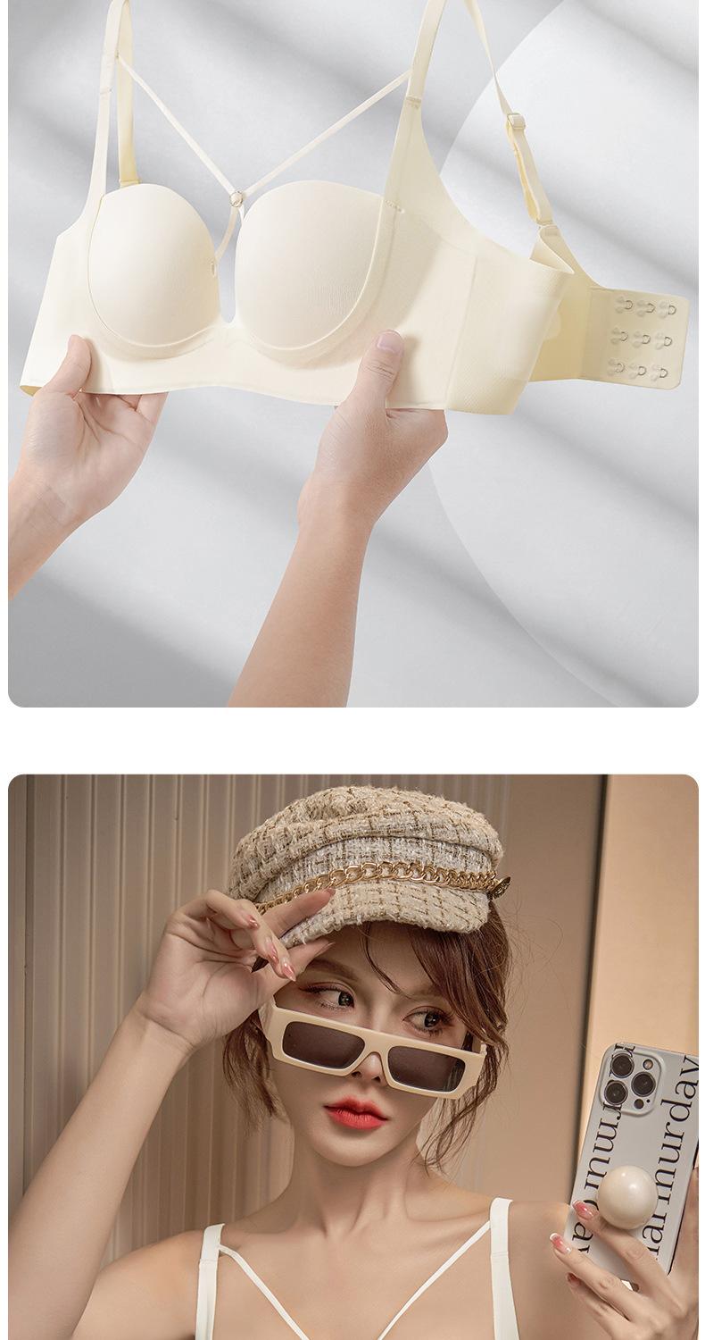 | Nuevo estilo de ropa interior de tubo sin tirantes con hebilla frontal para mujer con pequeño pecho fruncido, soporte superior con copa para los dedos, sujetador suave sin costuras para mujer |