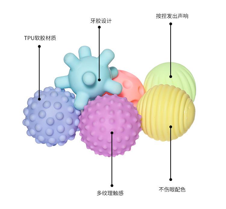 Juguetes para bebés, sonajero mordedor, pelota de agarre de mano, pelota táctil masticable hervida, pelota de agarre de mano Manhattan, pegamento suave al por mayor