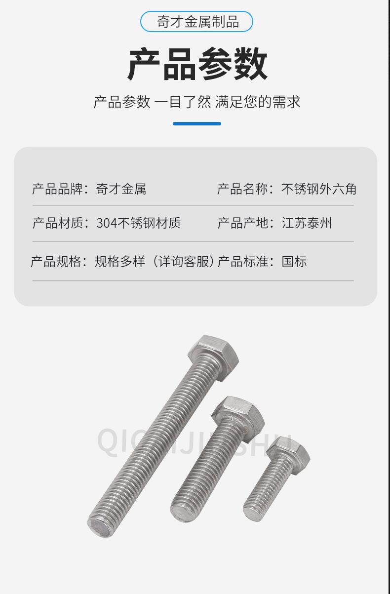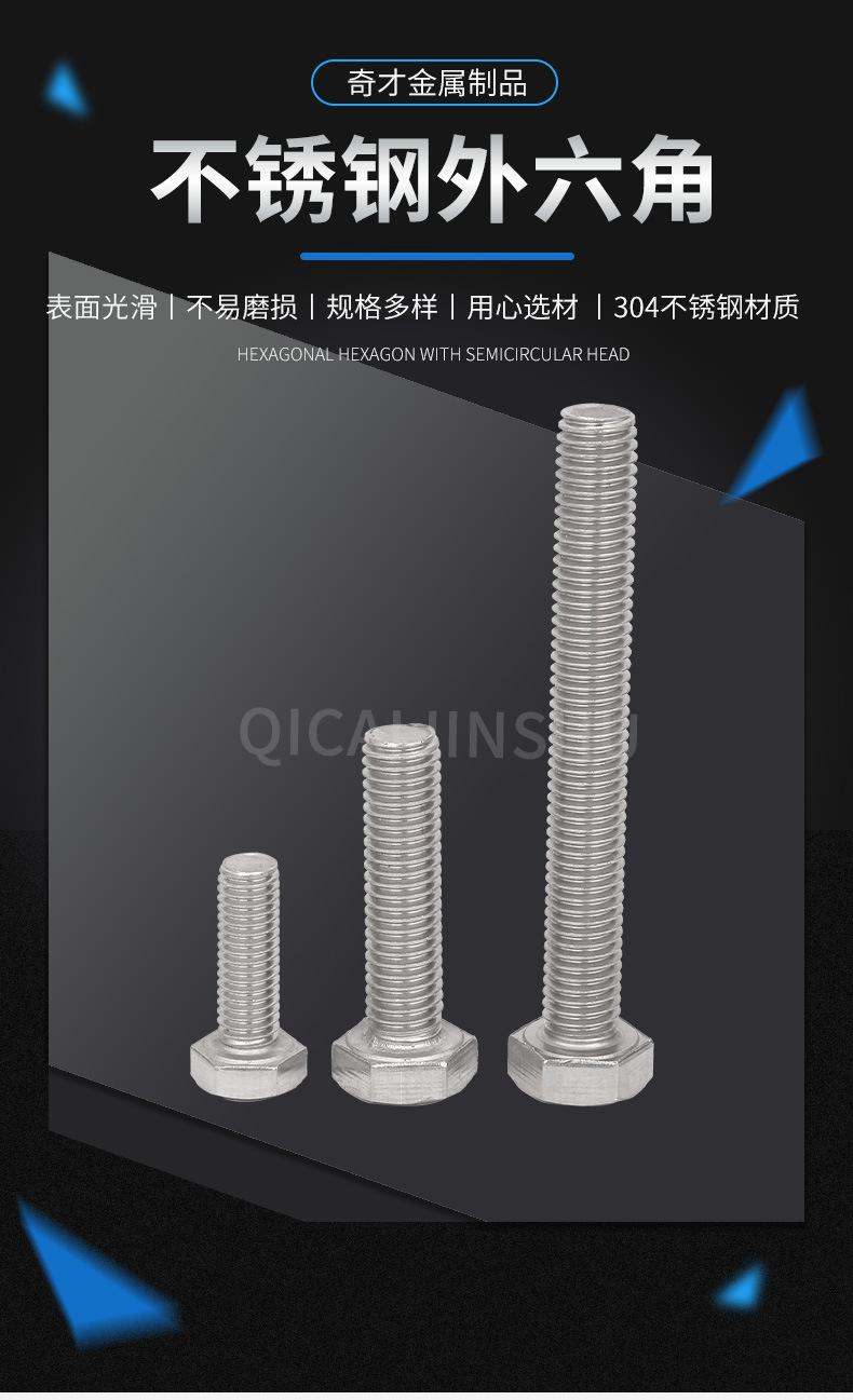 Tornillo hexagonal exterior de acero inoxidable 304, DIN933, perno de cabeza hexagonal, perno de cabeza simple, M6M8M10, venta al por mayor de fábrica