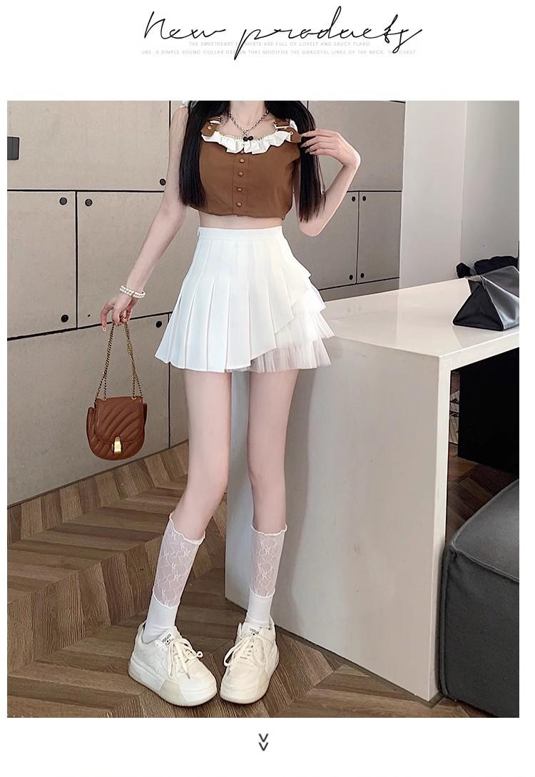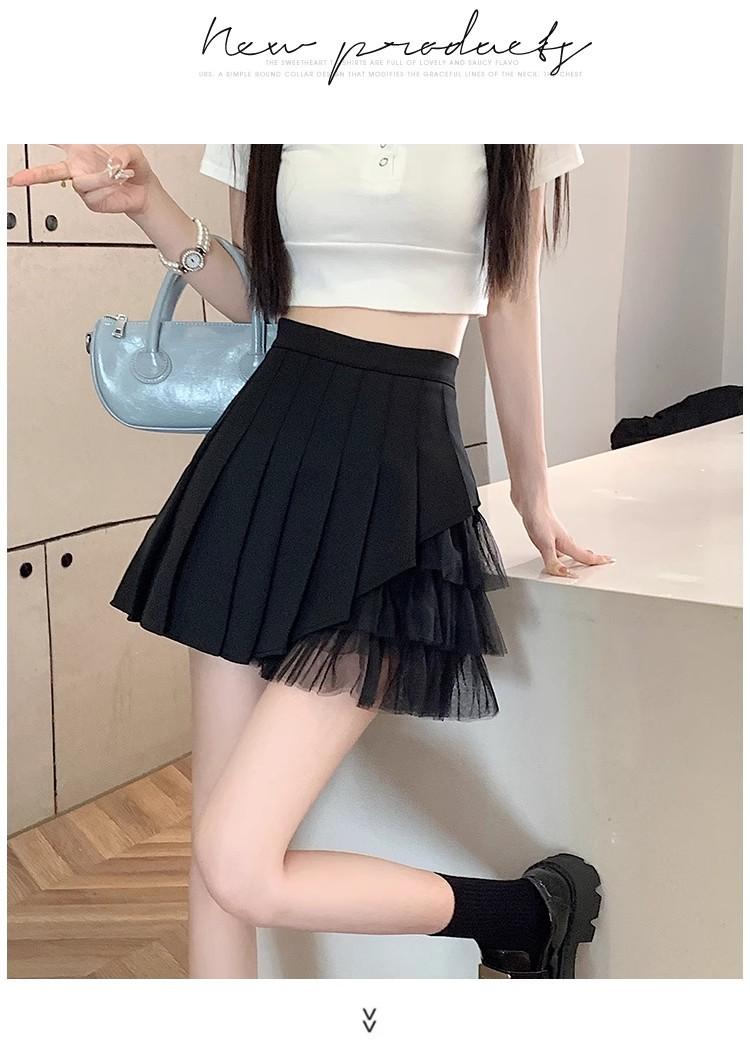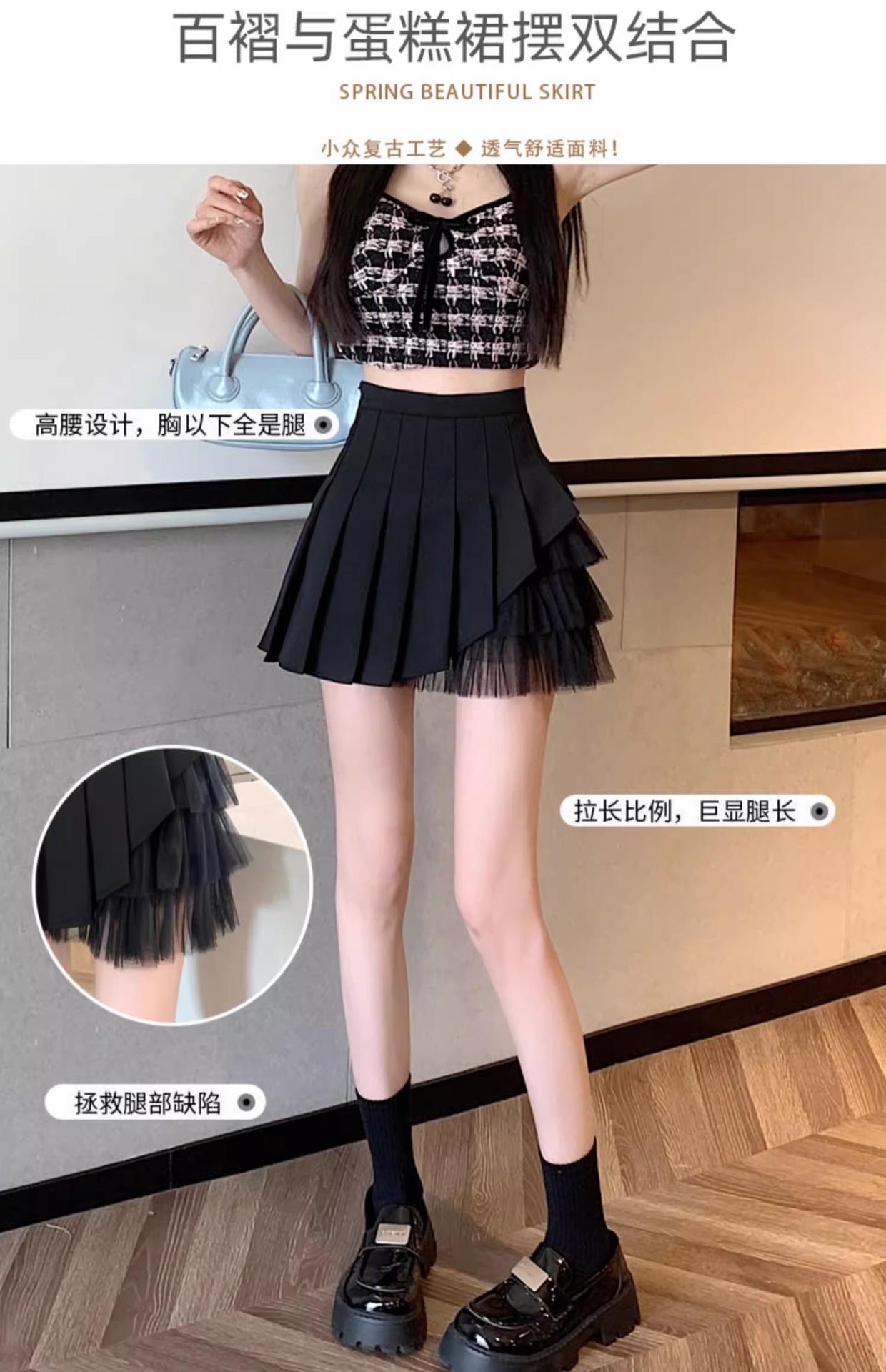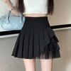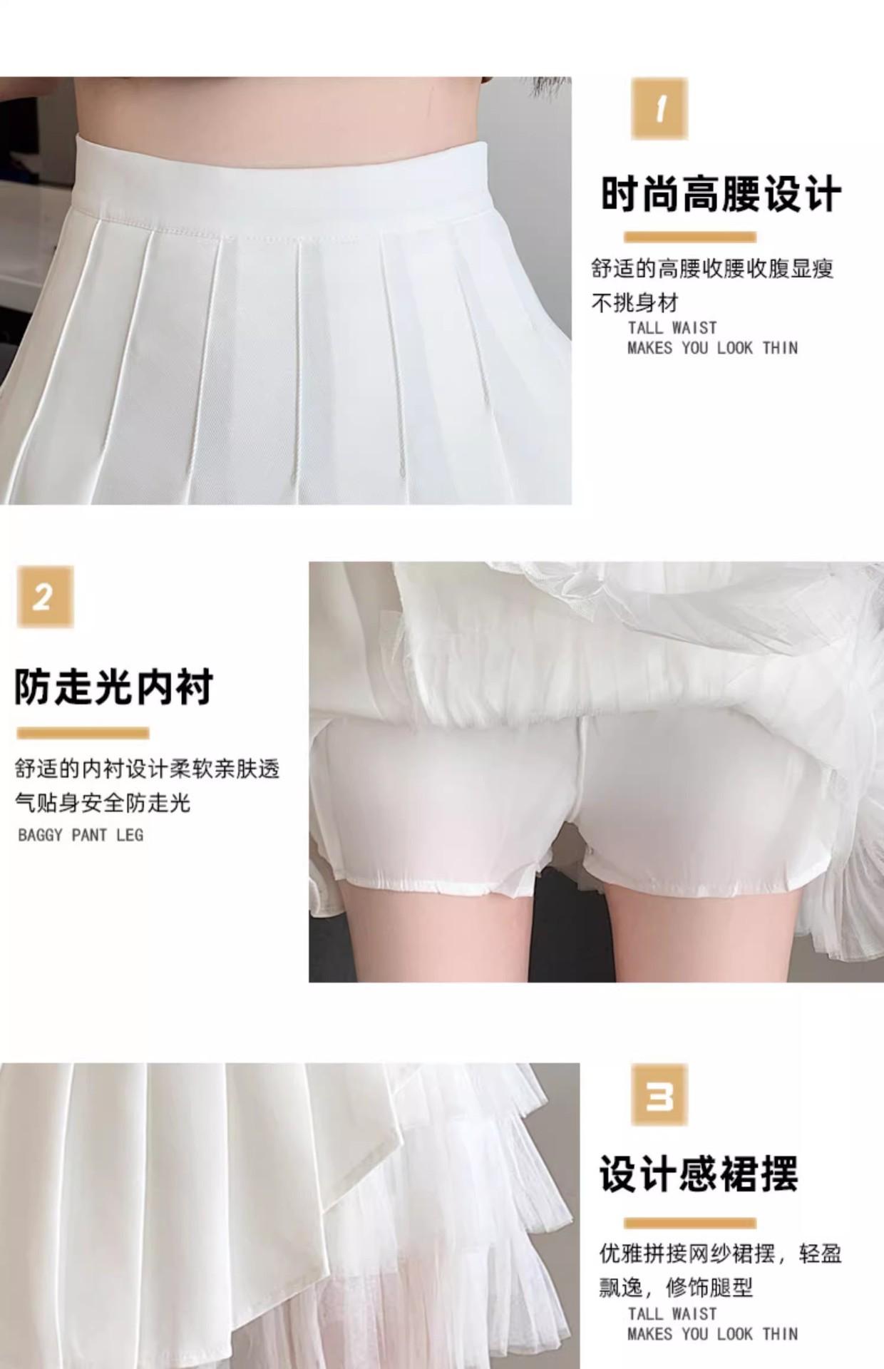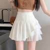 Falda corta para mujer, primavera y otoño, cintura alta, hilo de malla pequeña, elegante, línea A, plisada, blanca, verano, 2024