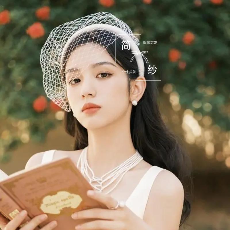 Velo jaula de pájaro de malla vintage grande transfronterizo europeo y americano para novia que cubre vestido diadema fiesta cena semana tocado