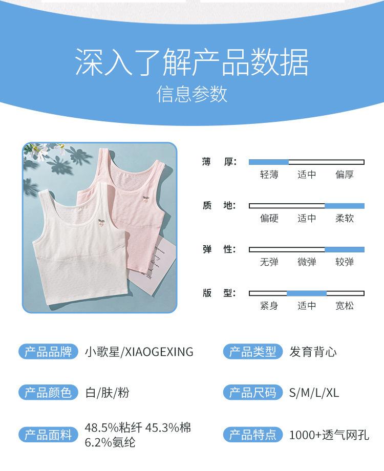 Selección estricta de ropa interior para niñas en etapa de desarrollo. Chaleco para niñas de primaria de 8 a 14 años. Chaleco de ropa interior para niñas de una etapa.