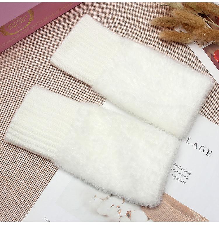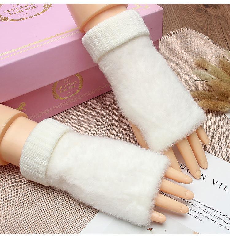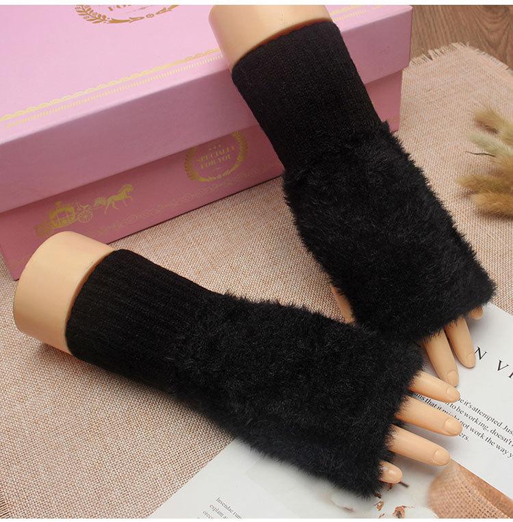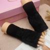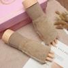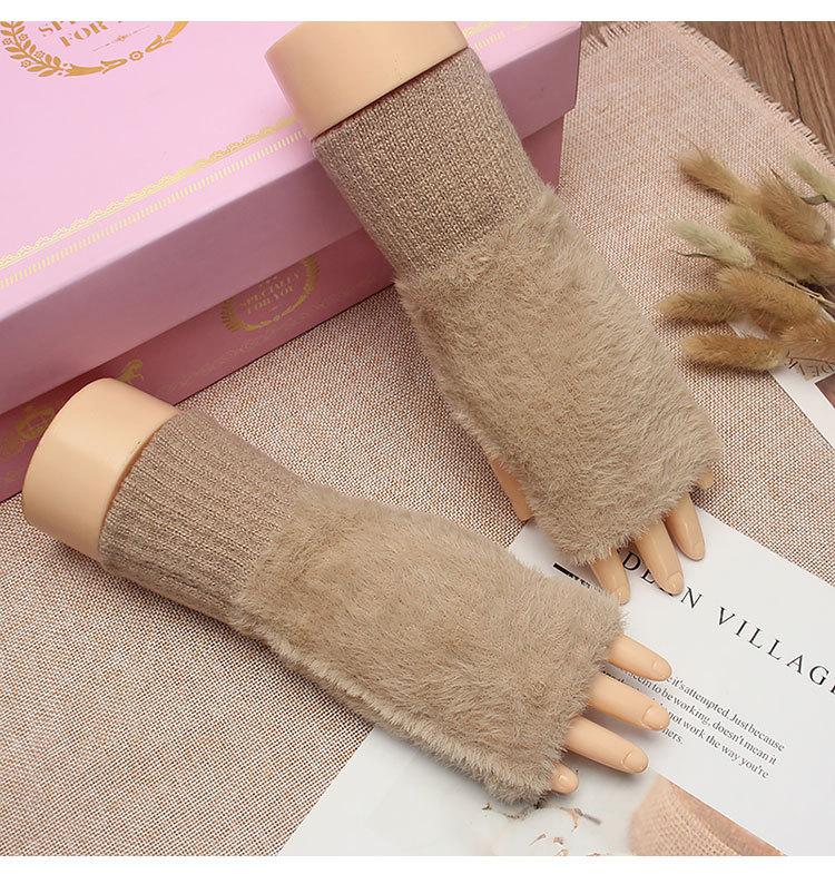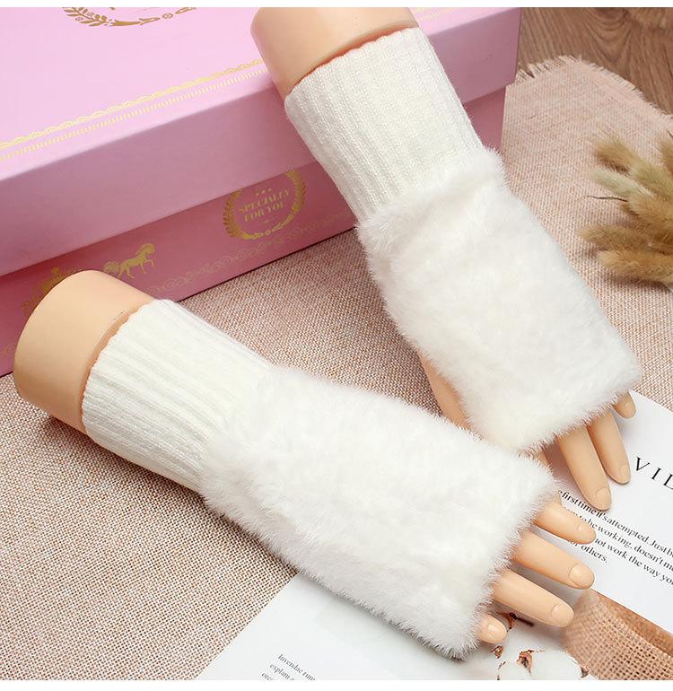 Guantes de medio dedo para mujer, de invierno, de felpa, cálidos, para estudiantes, para escribir, sin dedos, para otoño e invierno, tejidos, de medio dedo, para exhibir, largos, con muñequera.