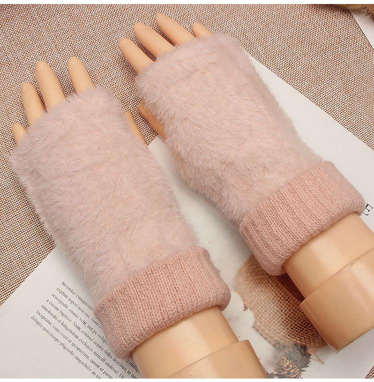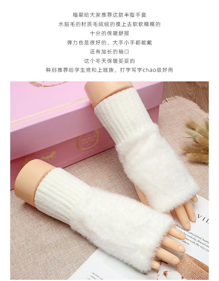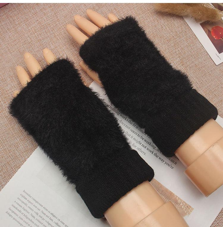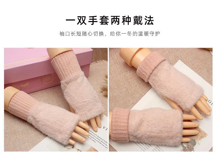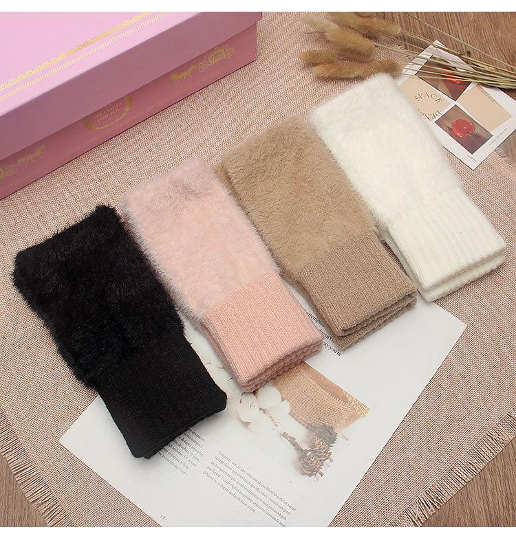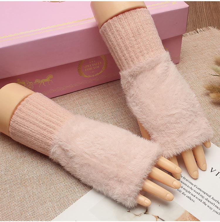 Guantes de medio dedo para mujer, de invierno, de felpa, cálidos, para estudiantes, para escribir, sin dedos, para otoño e invierno, tejidos, de medio dedo, para exhibir, largos, con muñequera.
