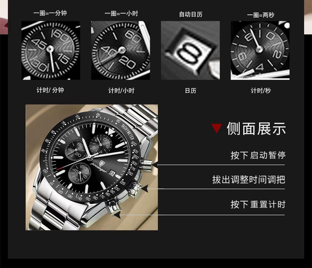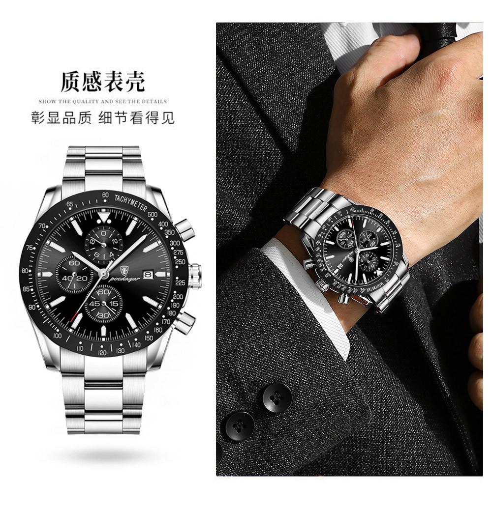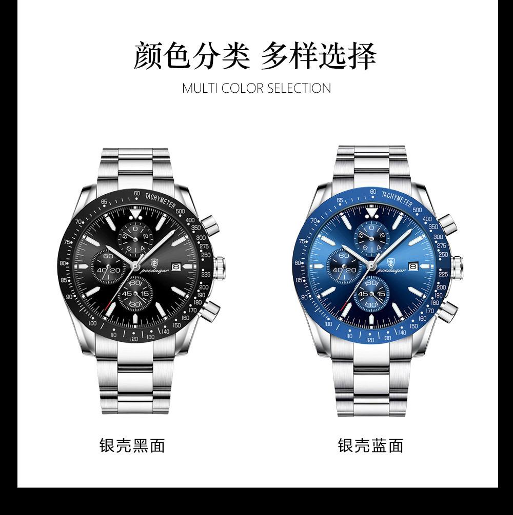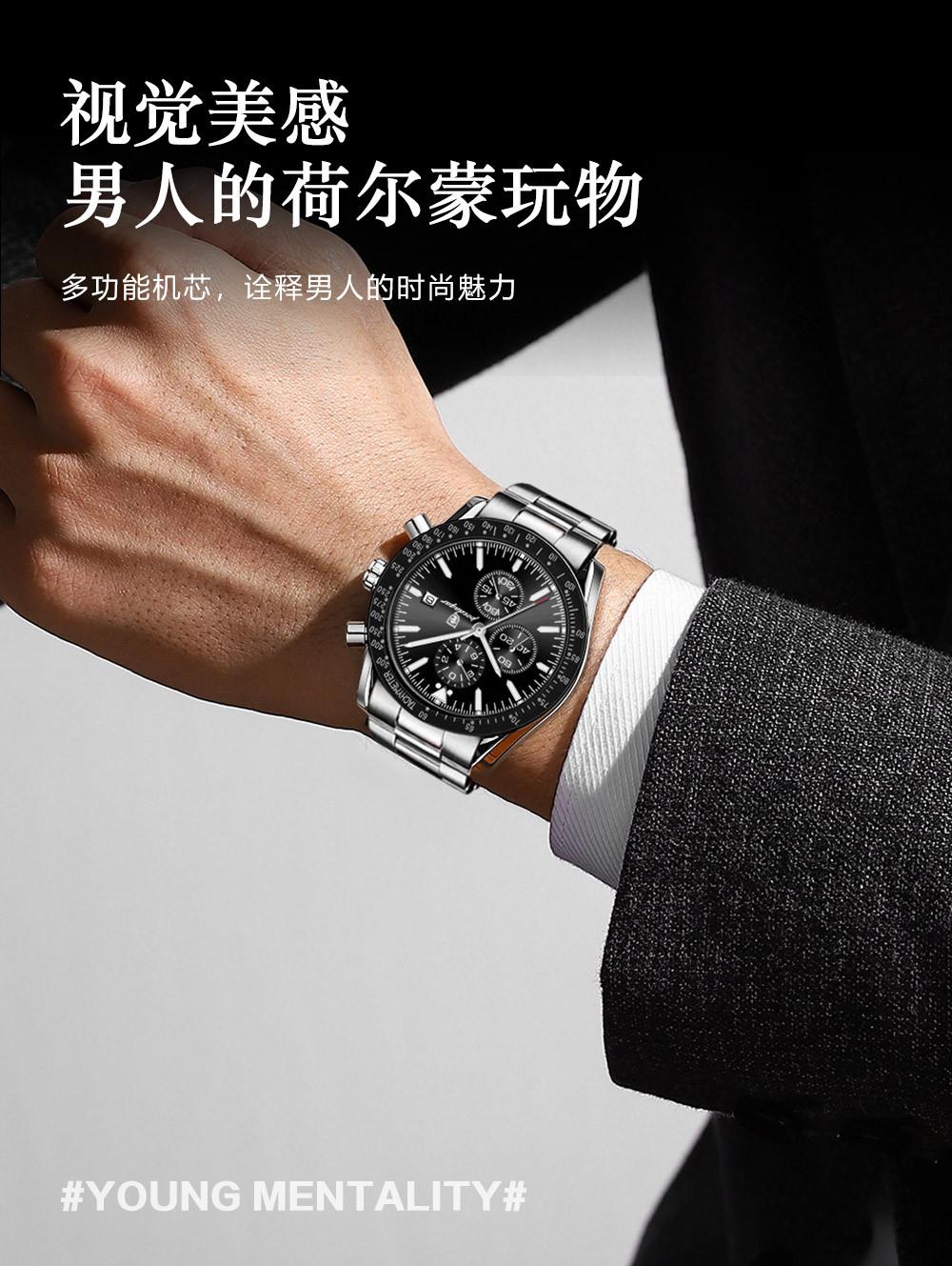 Reloj de hombre nuevo de marca suiza con correa de acero multifuncional, reloj de cuarzo, explosiones de comercio exterior en vivo, una generación de cabello