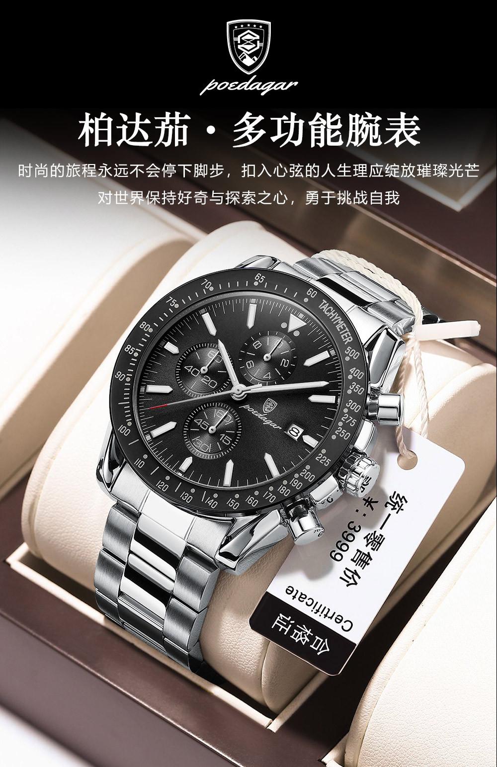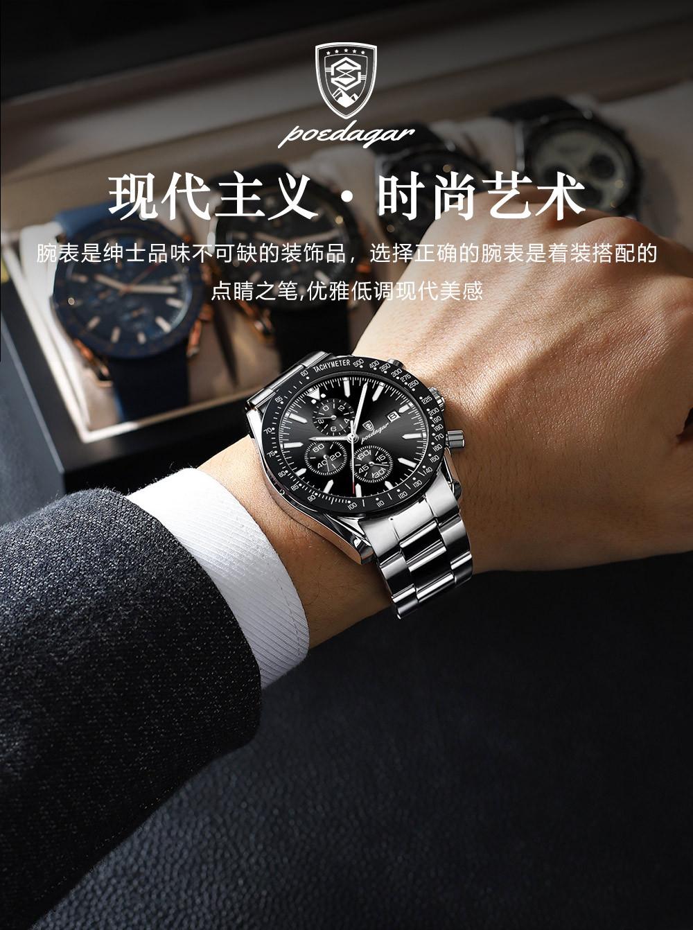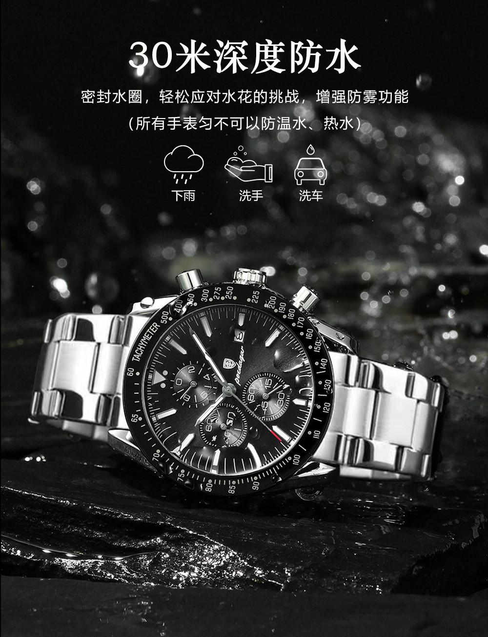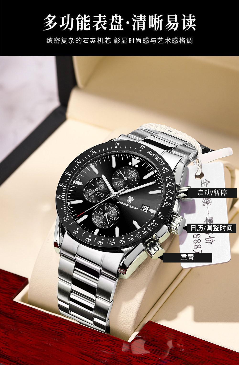 Reloj de hombre nuevo de marca suiza con correa de acero multifuncional, reloj de cuarzo, explosiones de comercio exterior en vivo, una generación de cabello