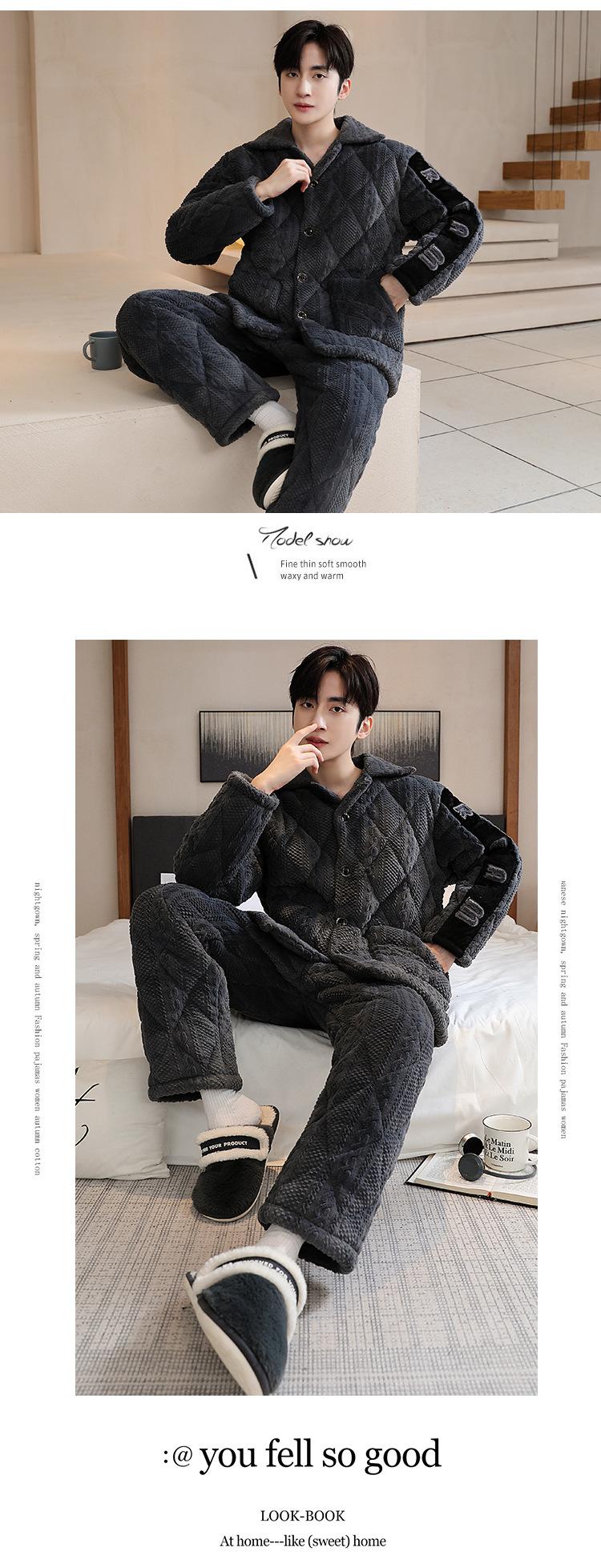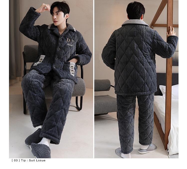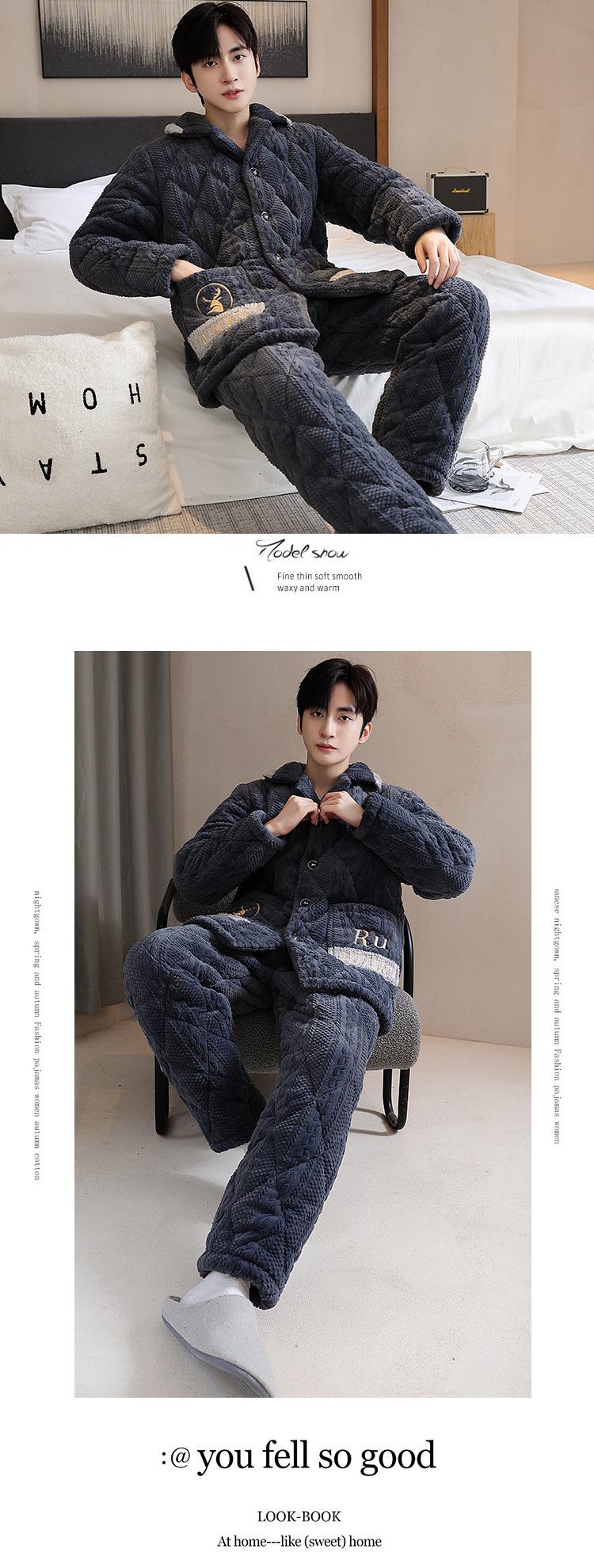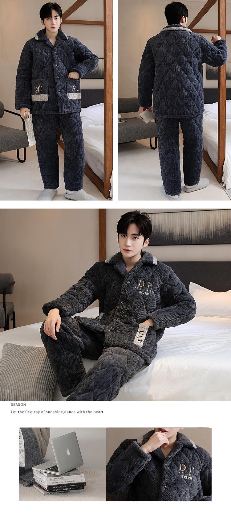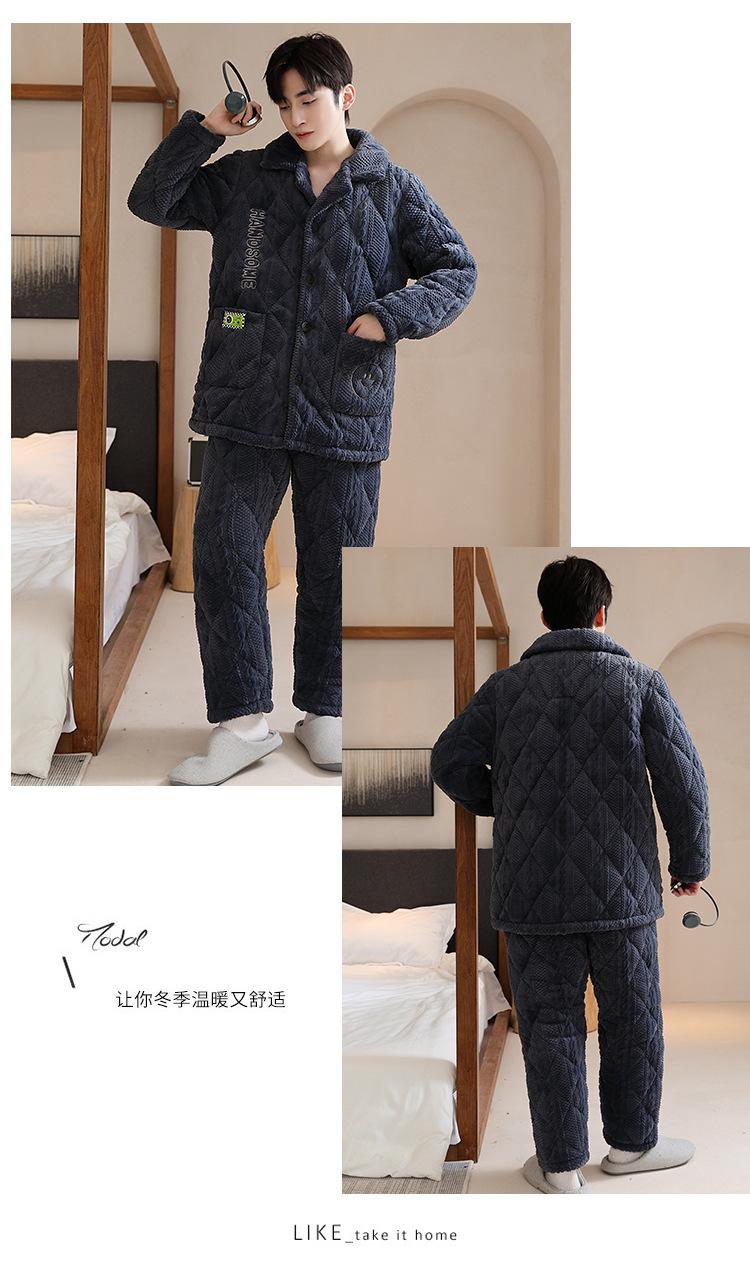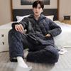 Pijama acolchado de otoño e invierno para hombre, cárdigan informal sencillo de talla grande, forro polar grueso, acolchado de tres capas, ropa cálida para el hogar