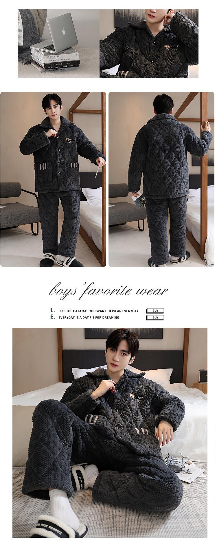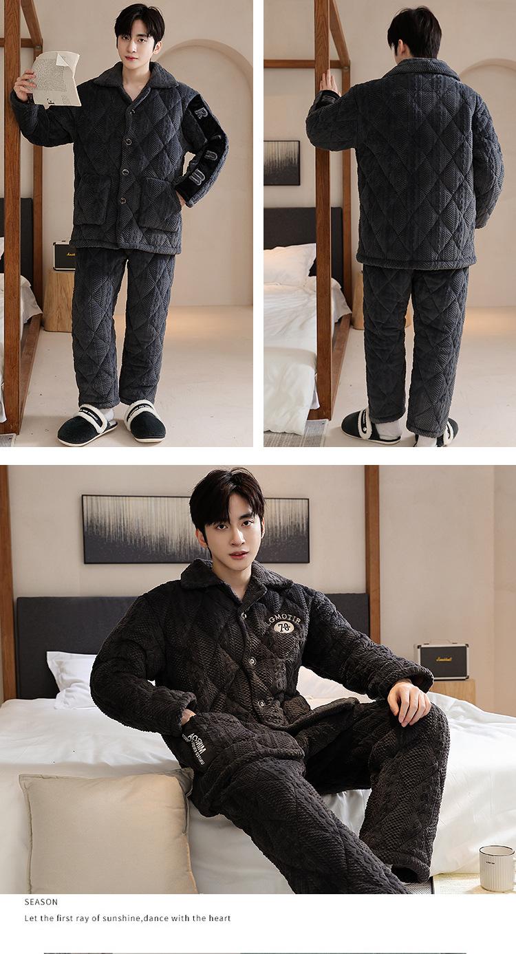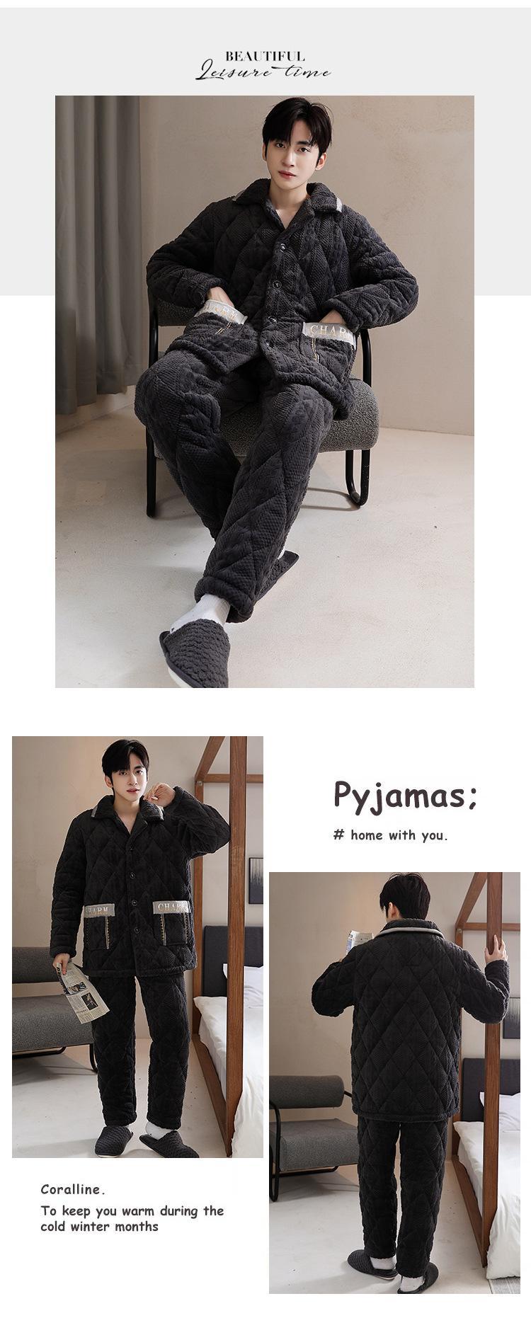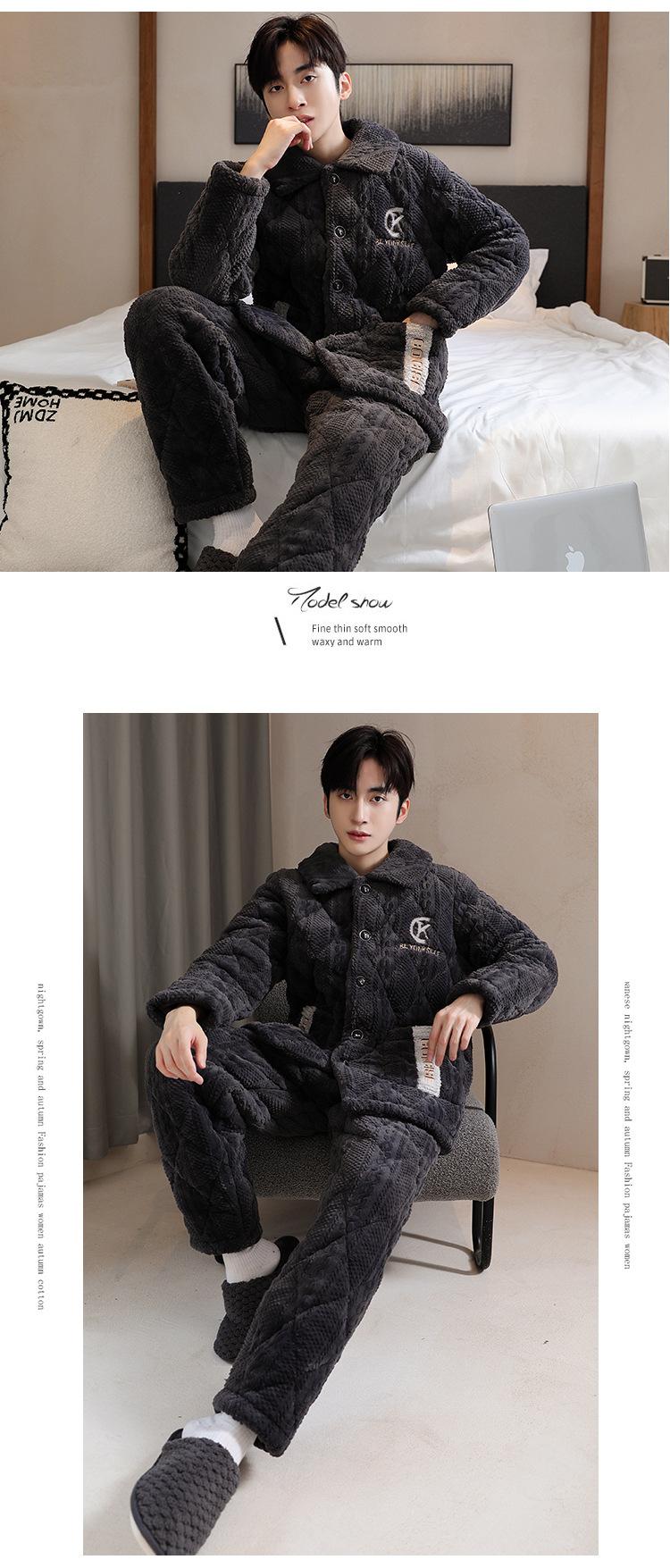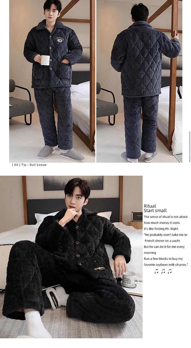 Pijama acolchado de otoño e invierno para hombre, cárdigan informal sencillo de talla grande, forro polar grueso, acolchado de tres capas, ropa cálida para el hogar