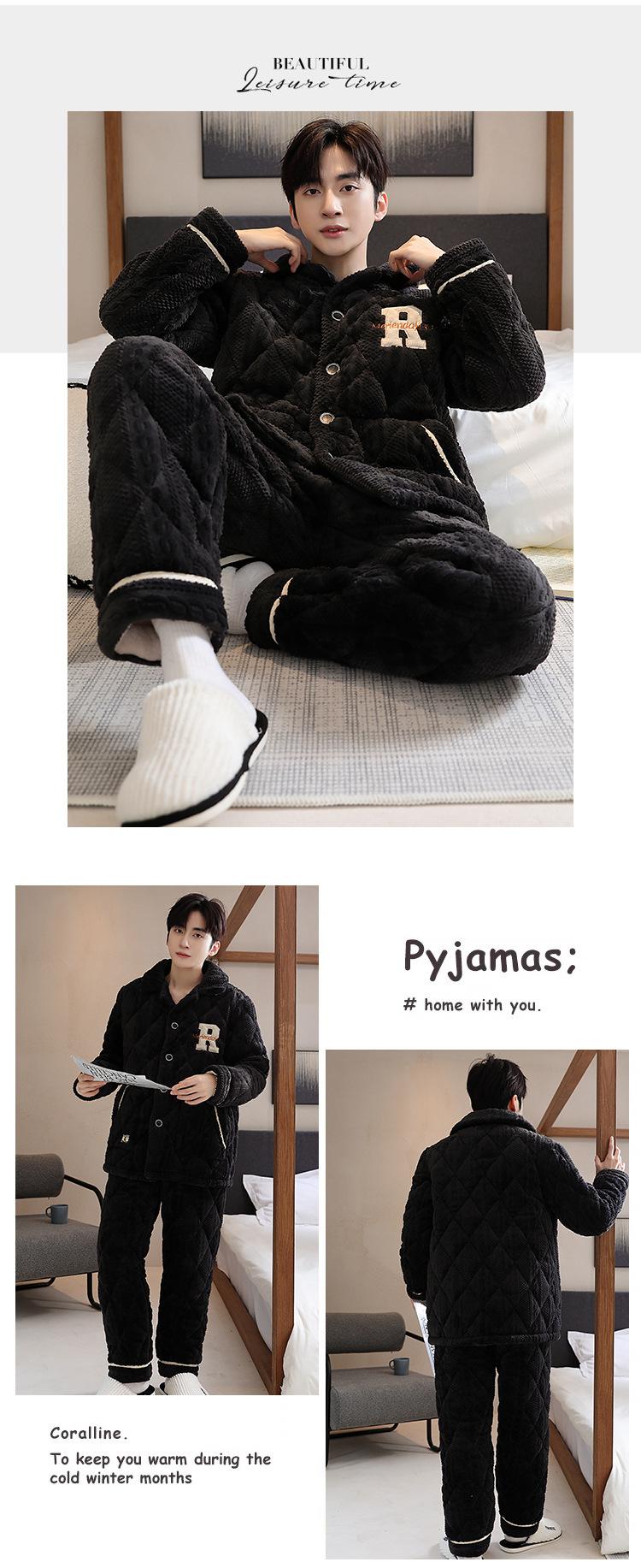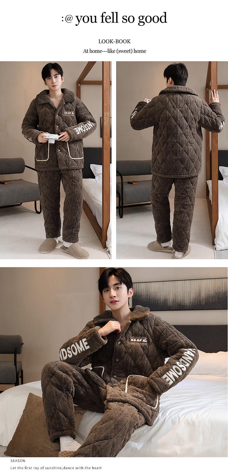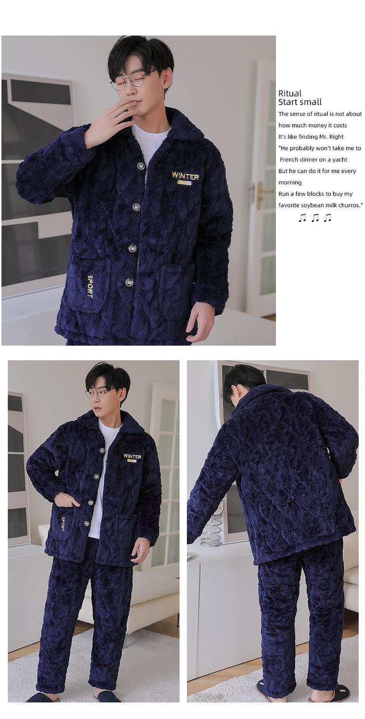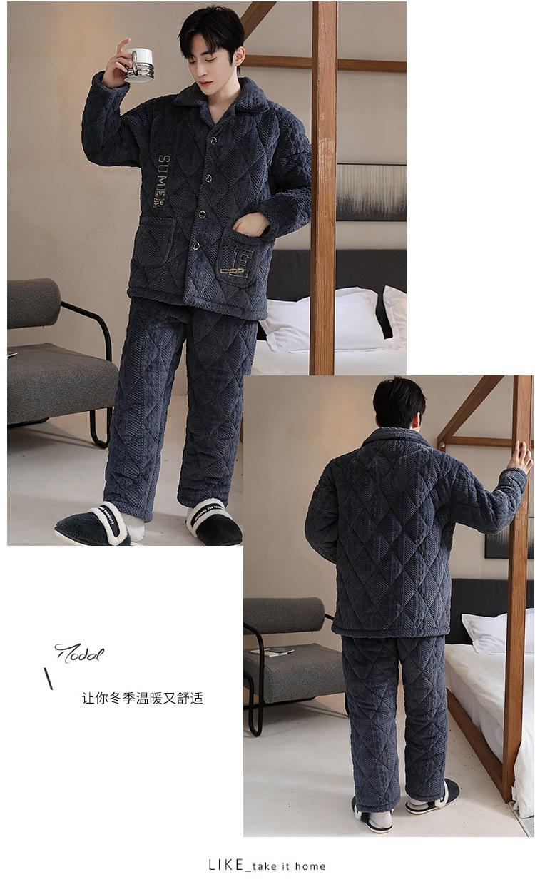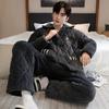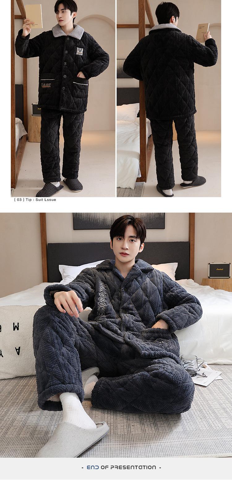 Pijama acolchado de otoño e invierno para hombre, cárdigan informal sencillo de talla grande, forro polar grueso, acolchado de tres capas, ropa cálida para el hogar
