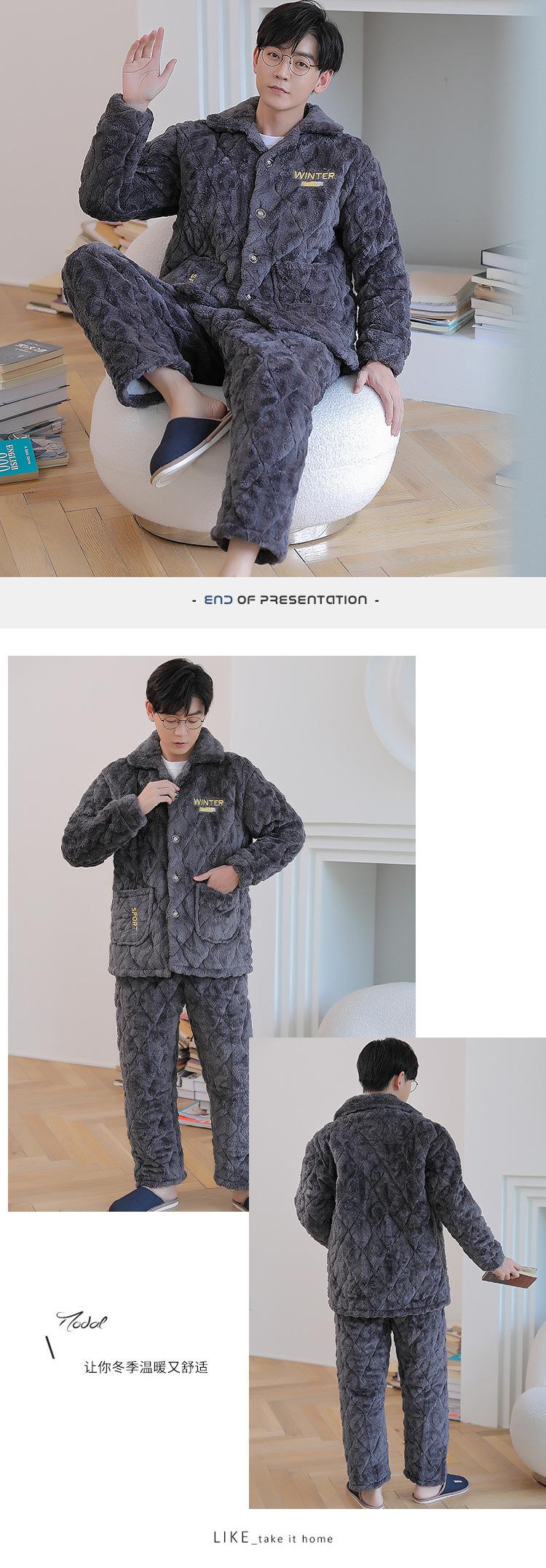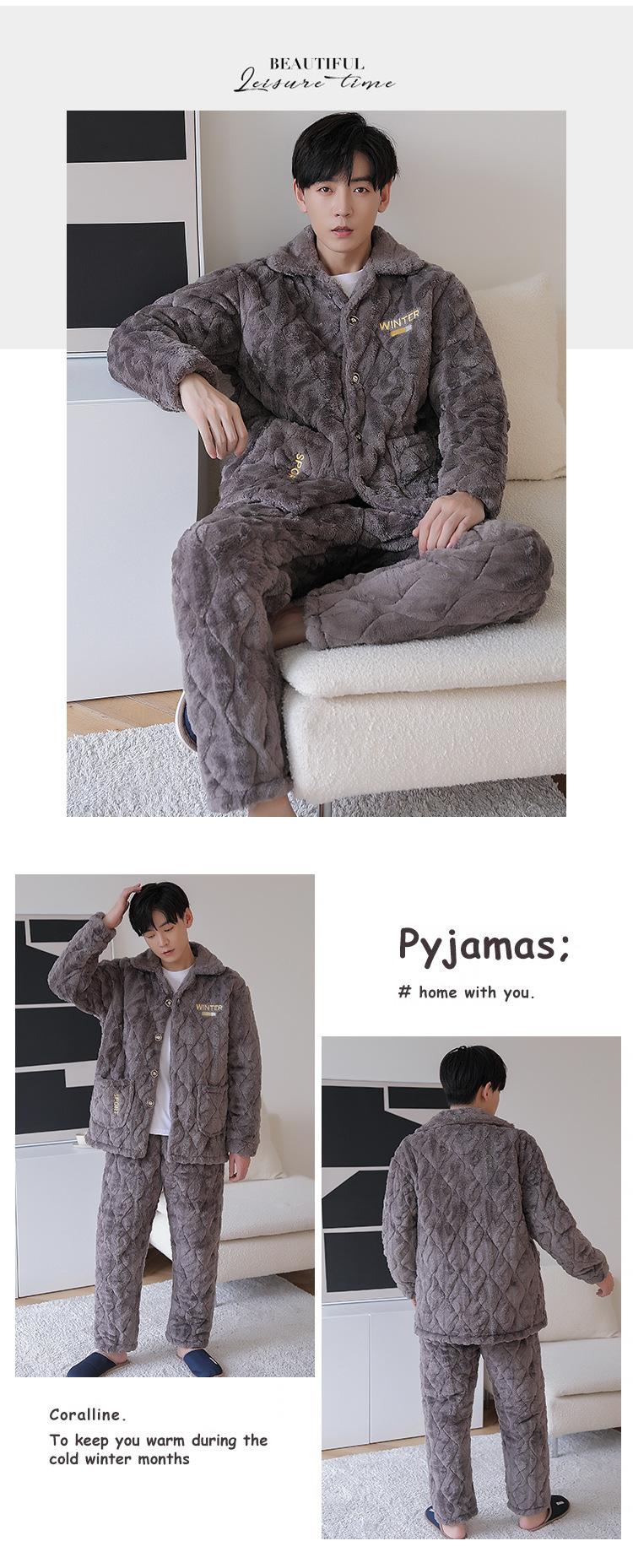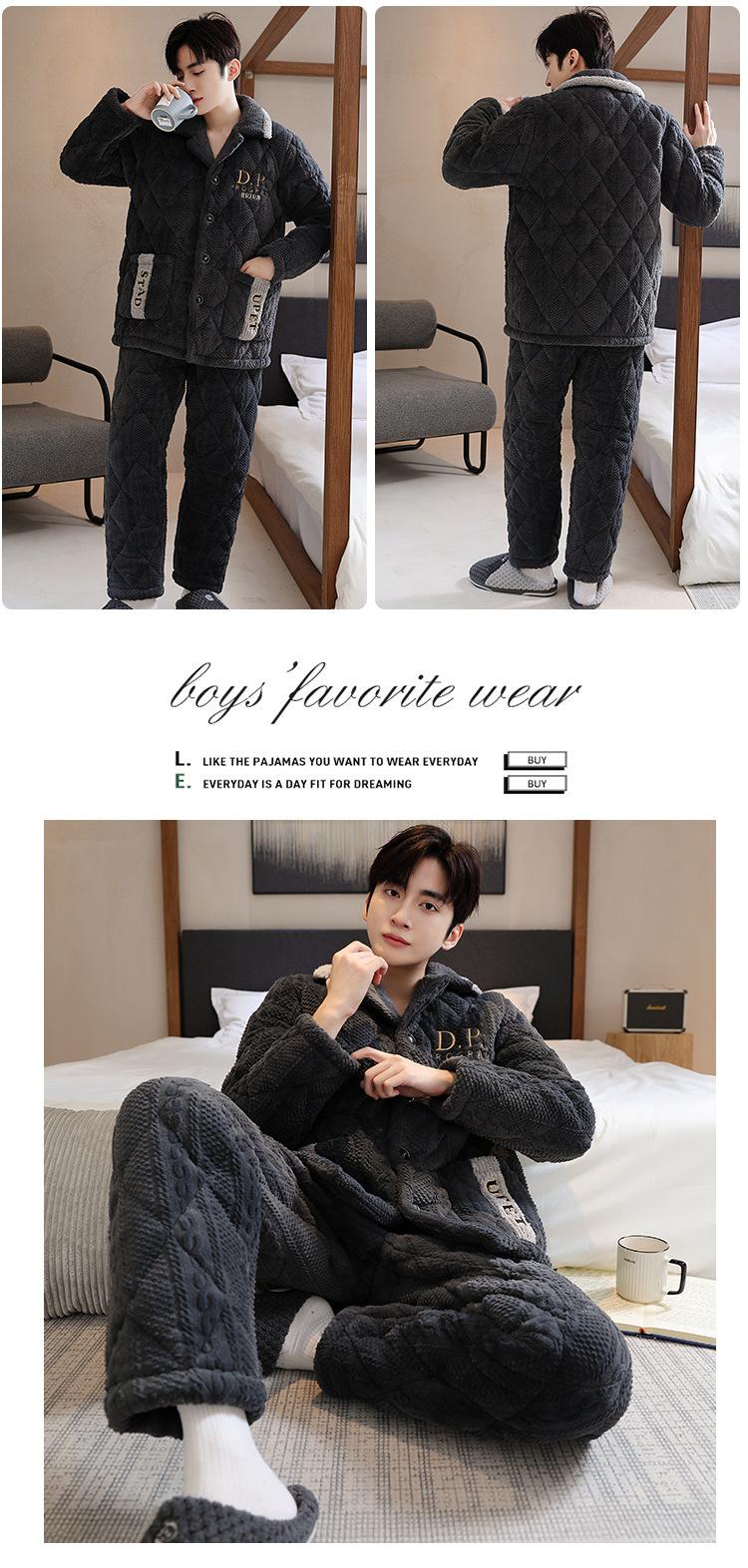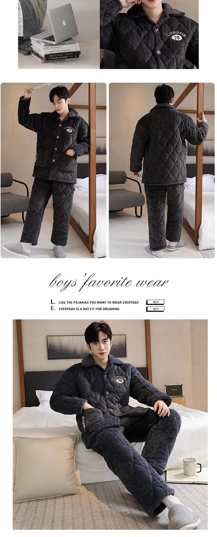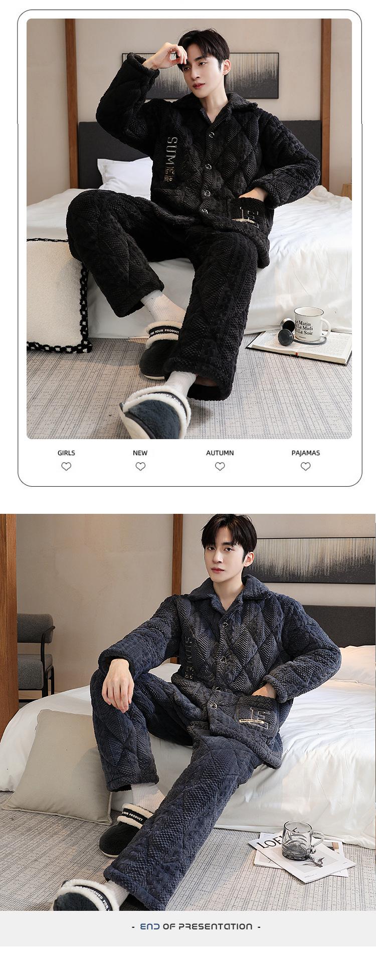 Pijama acolchado de otoño e invierno para hombre, cárdigan informal sencillo de talla grande, forro polar grueso, acolchado de tres capas, ropa cálida para el hogar