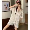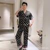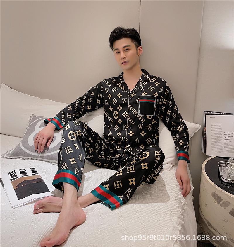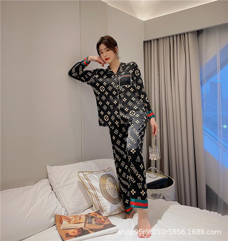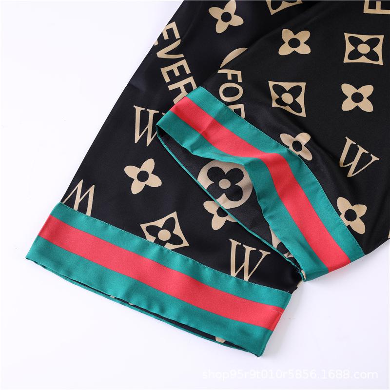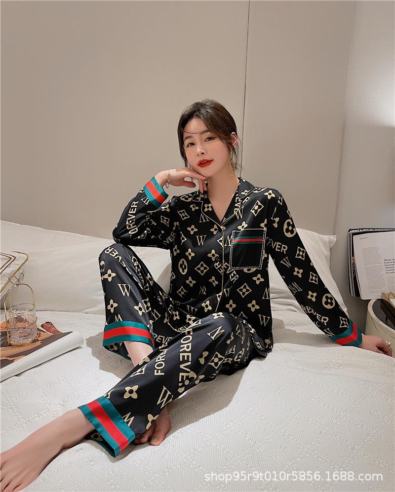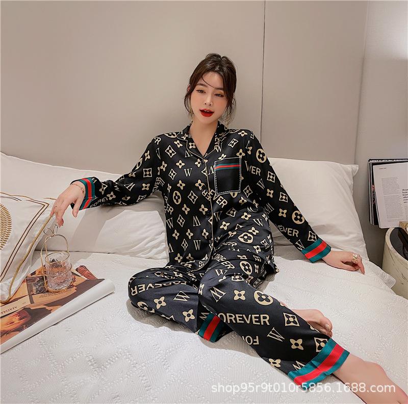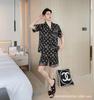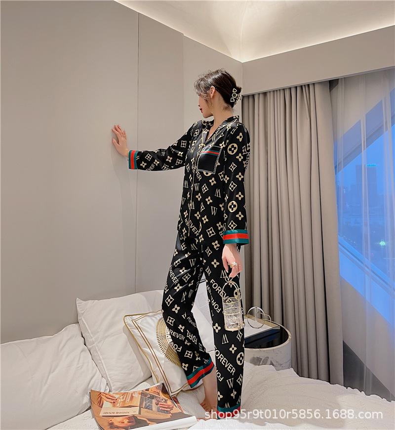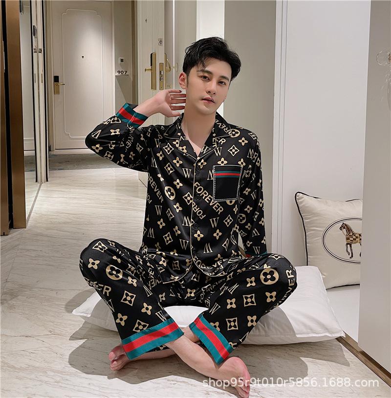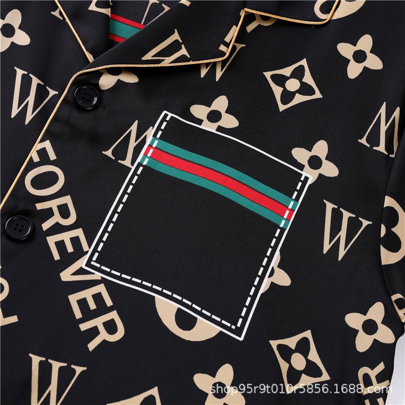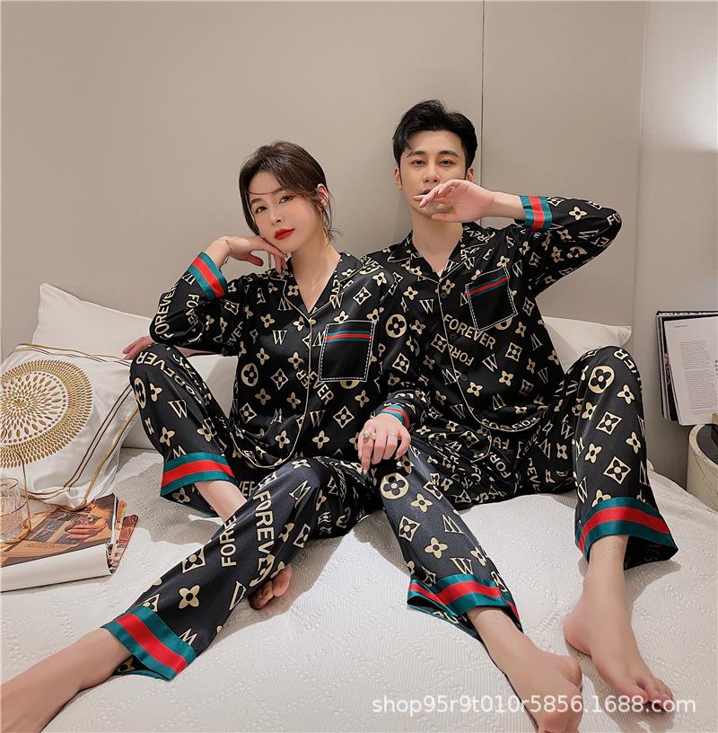 Ropa de Casa para Pareja Negro Dorado Verano Seda de Hielo Manga Corta Pantalones Casual Moda Pijama Traje para Usar
