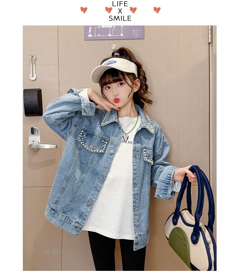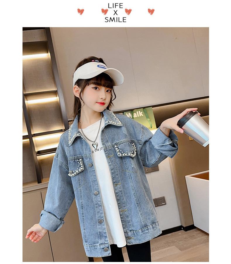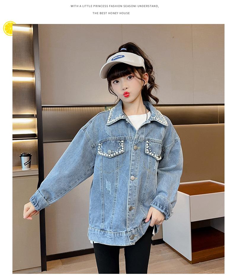 Abrigo de mezclilla para niña Otoño 2025 Nuevo Primavera y Otoño Estilo occidental Ropa infantil para niña grande Chaqueta infantil Primavera y Otoño