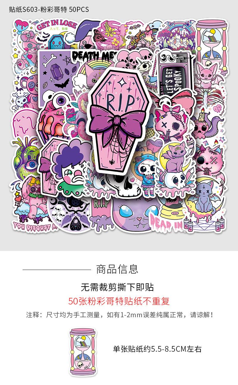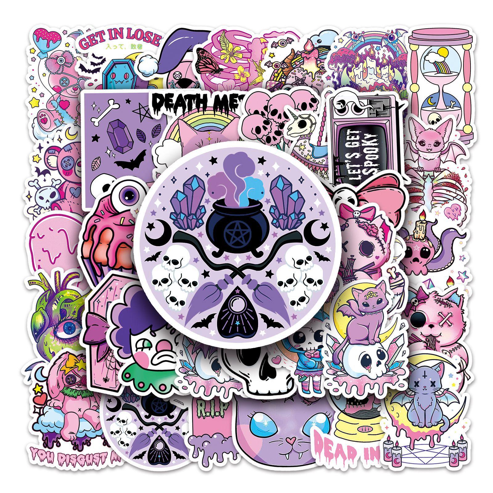 50 pegatinas de grafiti gótico pastel con dibujos animados transfronterizos, pegatinas para patineta, funda de teléfono, maleta, pegatinas impermeables