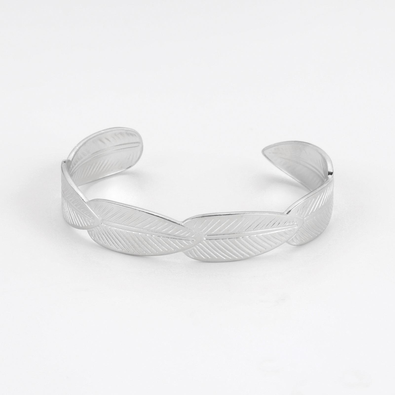 Pulsera de Acero Inoxidable para Mujer con Diseño de Ciclo de Hojas de Apertura, Temperamento de Alta Gama, Moda de Venta Caliente Transfronteriza, Pulsera Natural que Combina con Todo